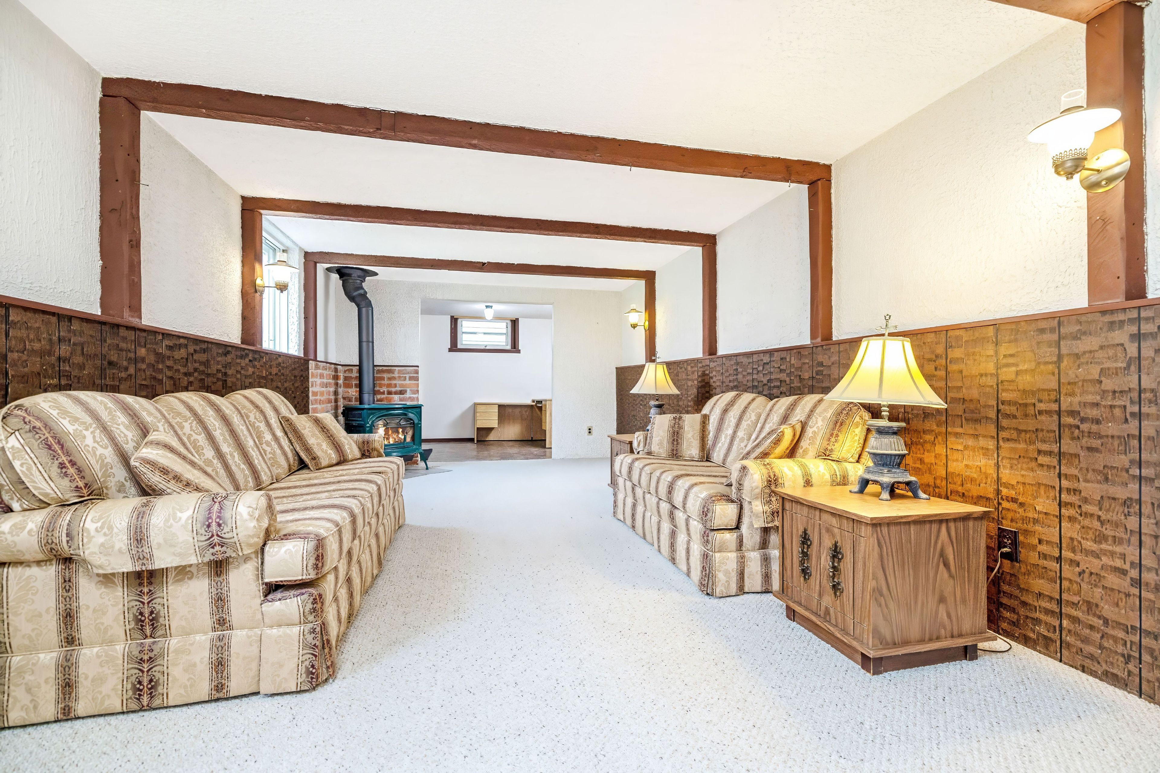 • Finished rec room with gas fireplace and above grade windows.