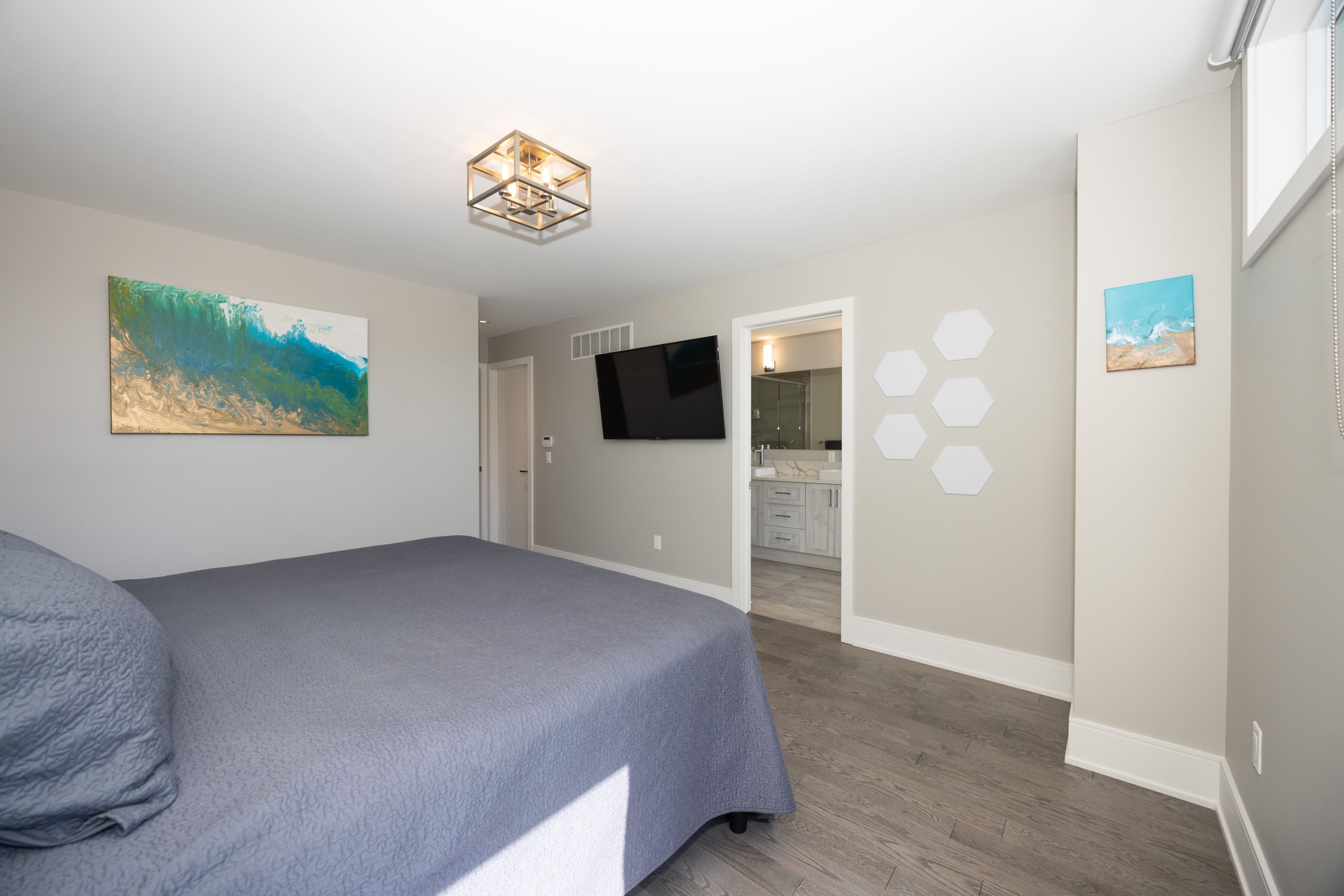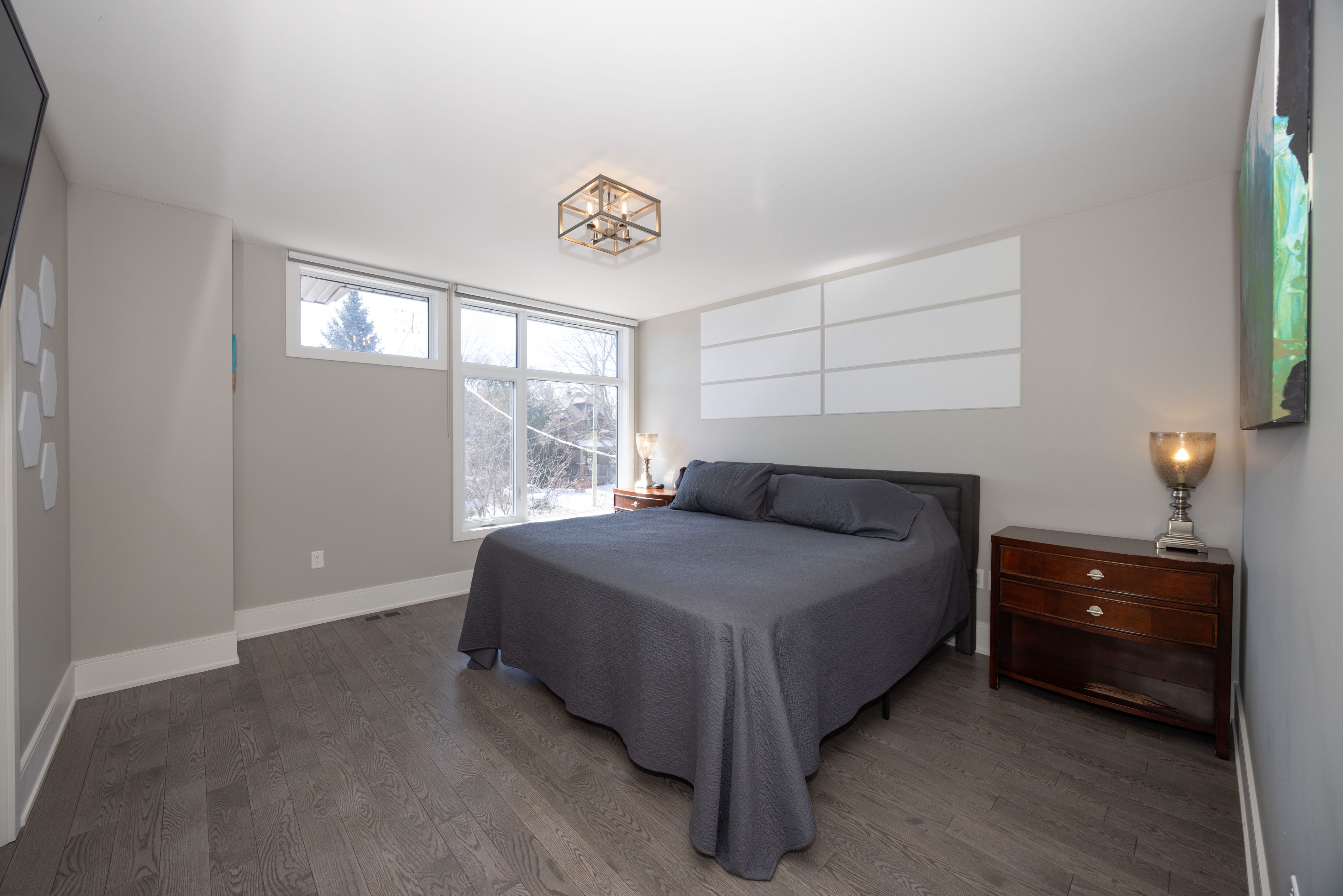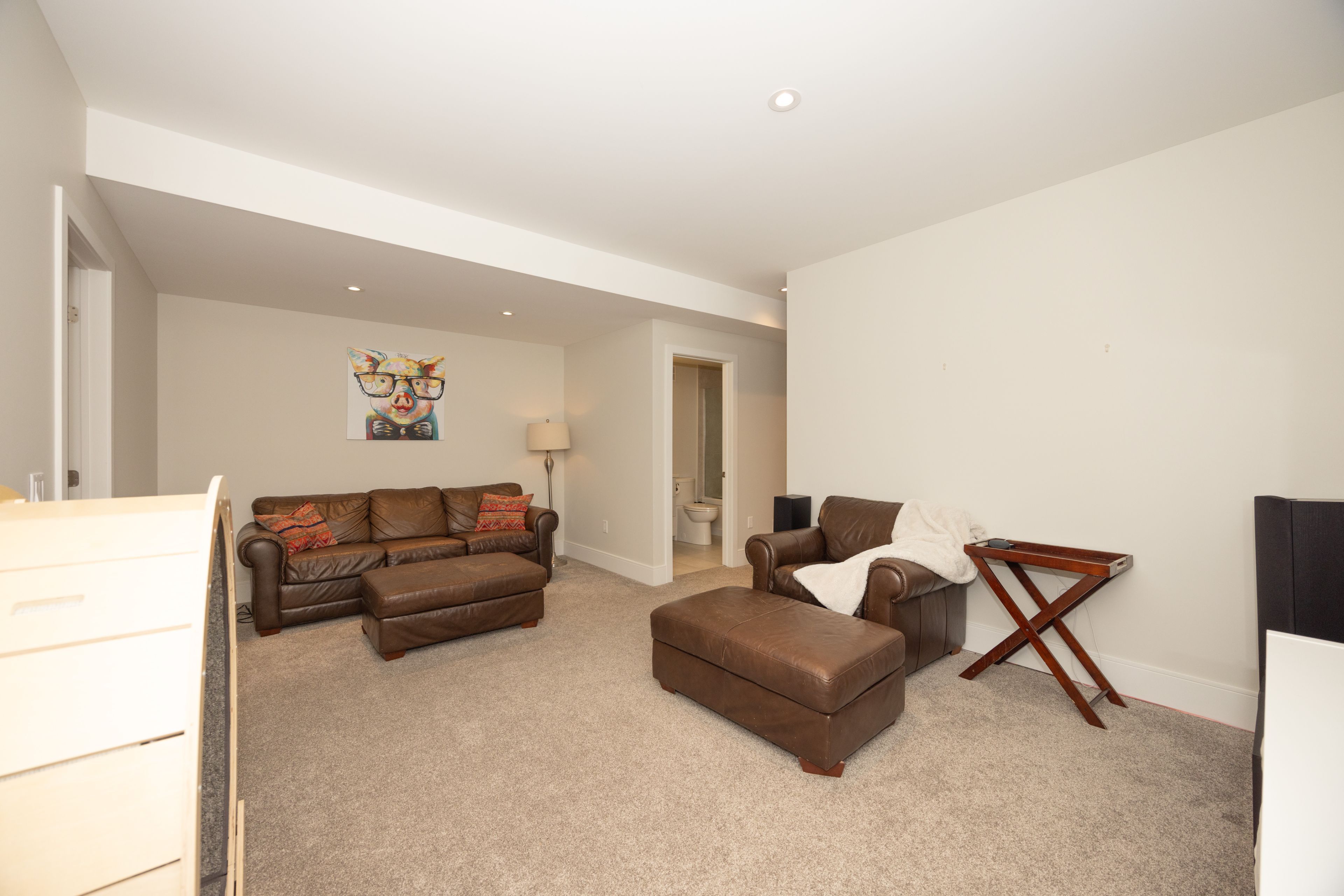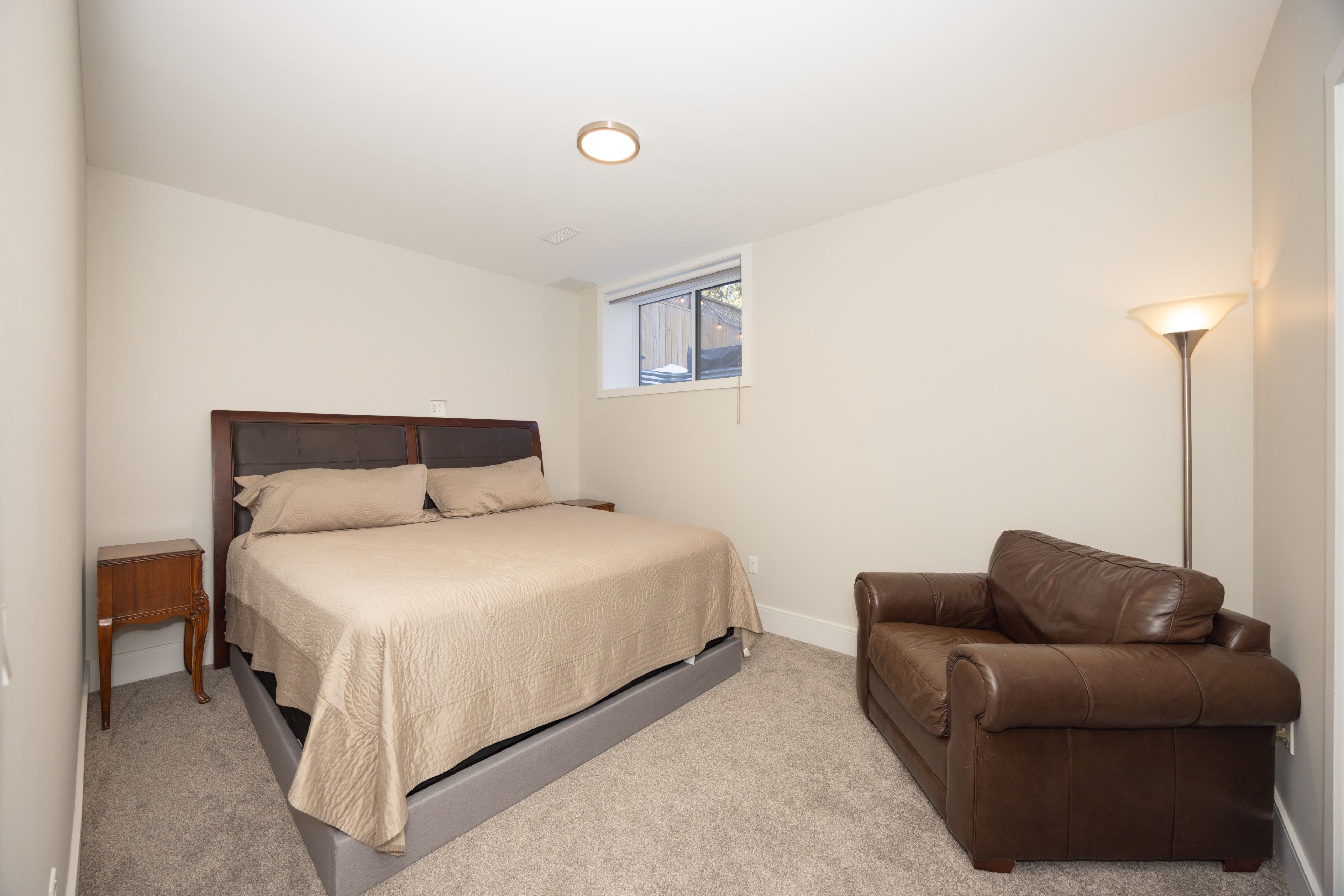• Finished lower level featuring high ceilings, extra bedroom, and family room.