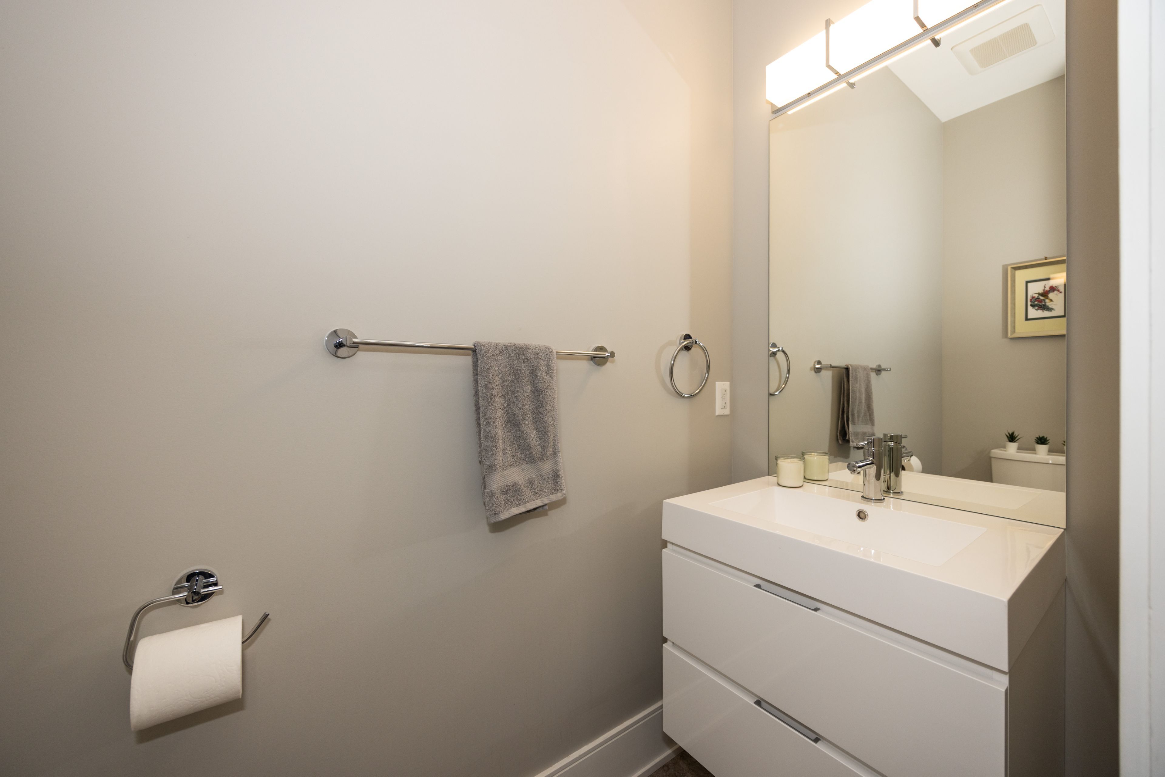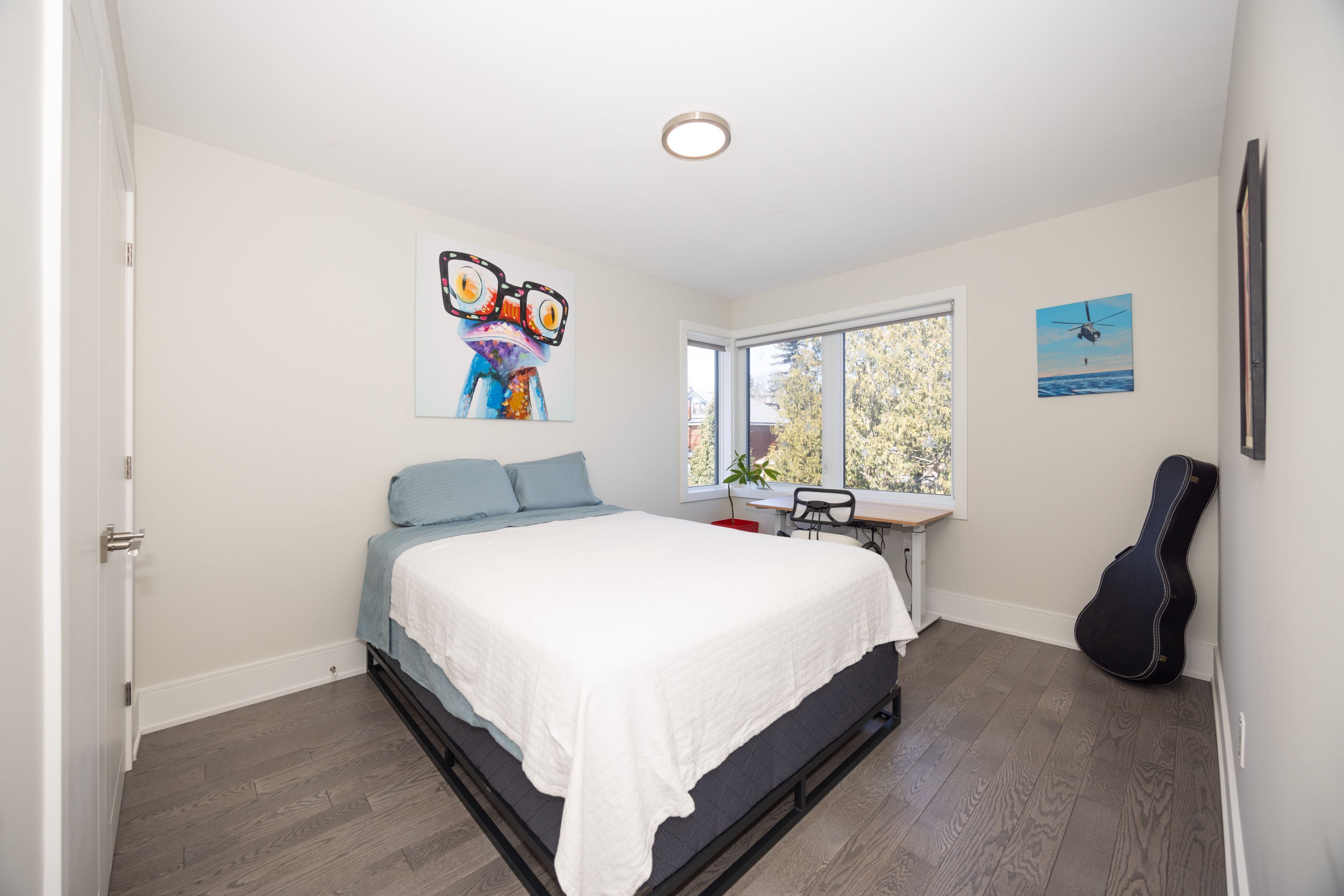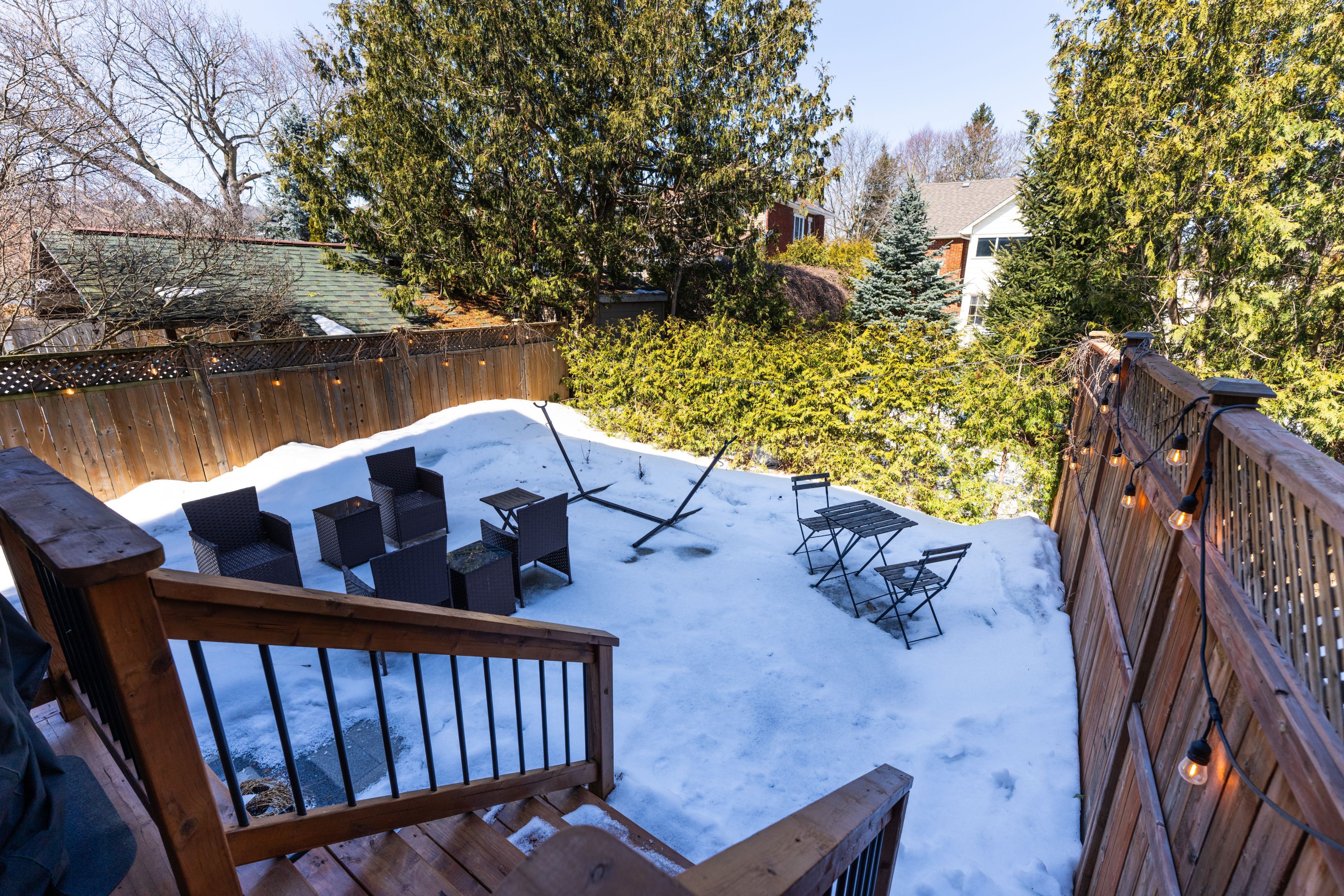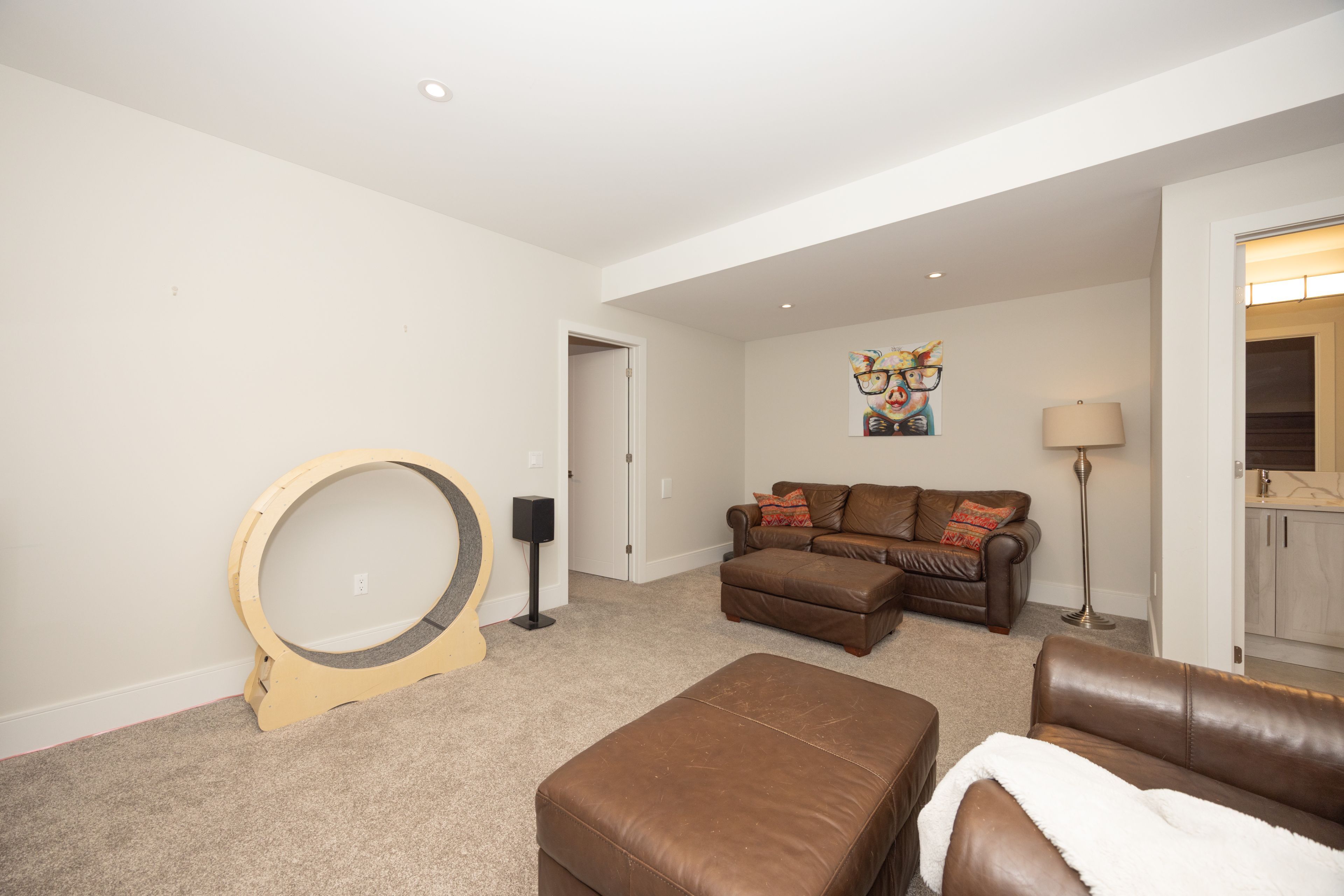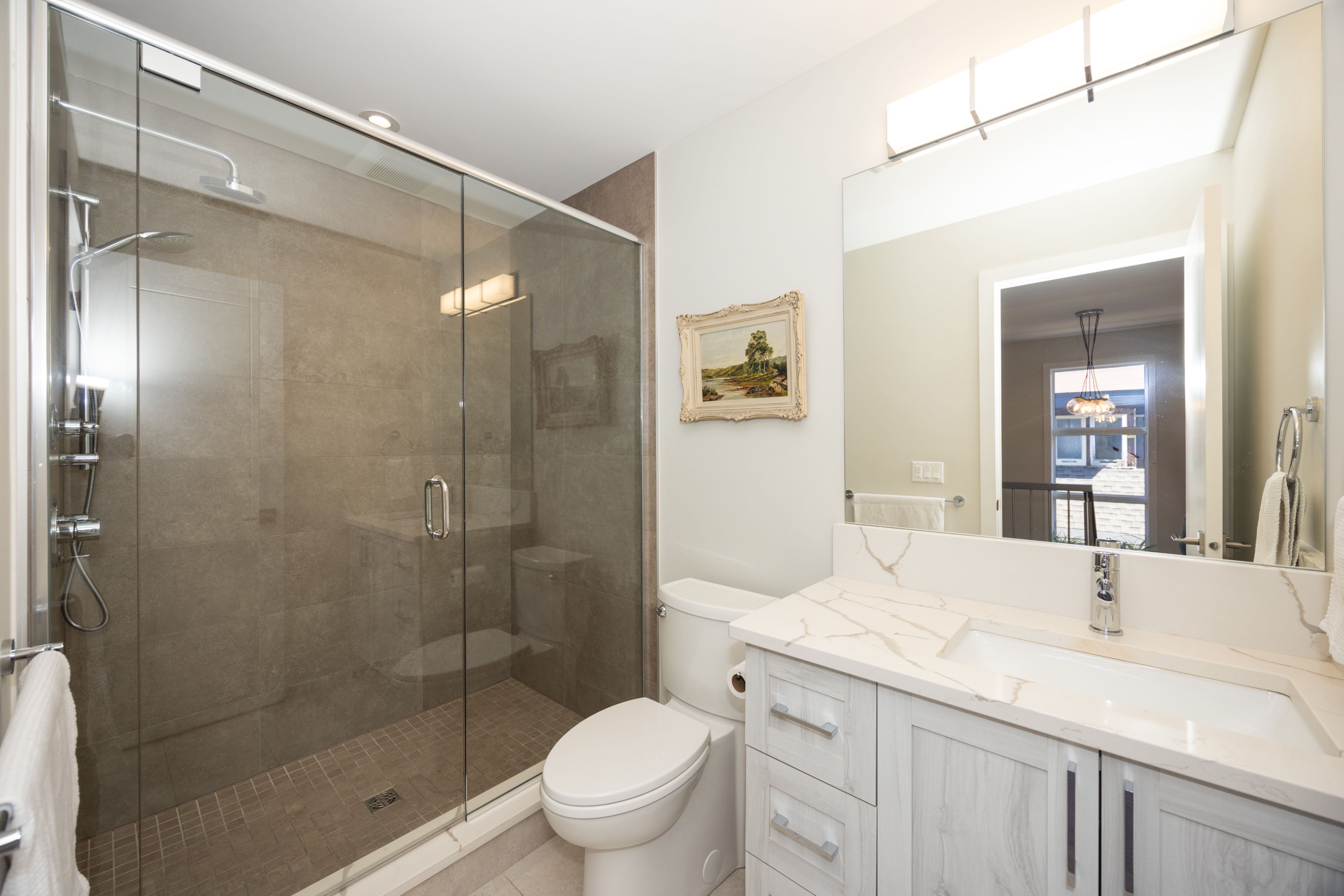 • Finished lower level featuring high ceilings, extra bedroom, and family room.