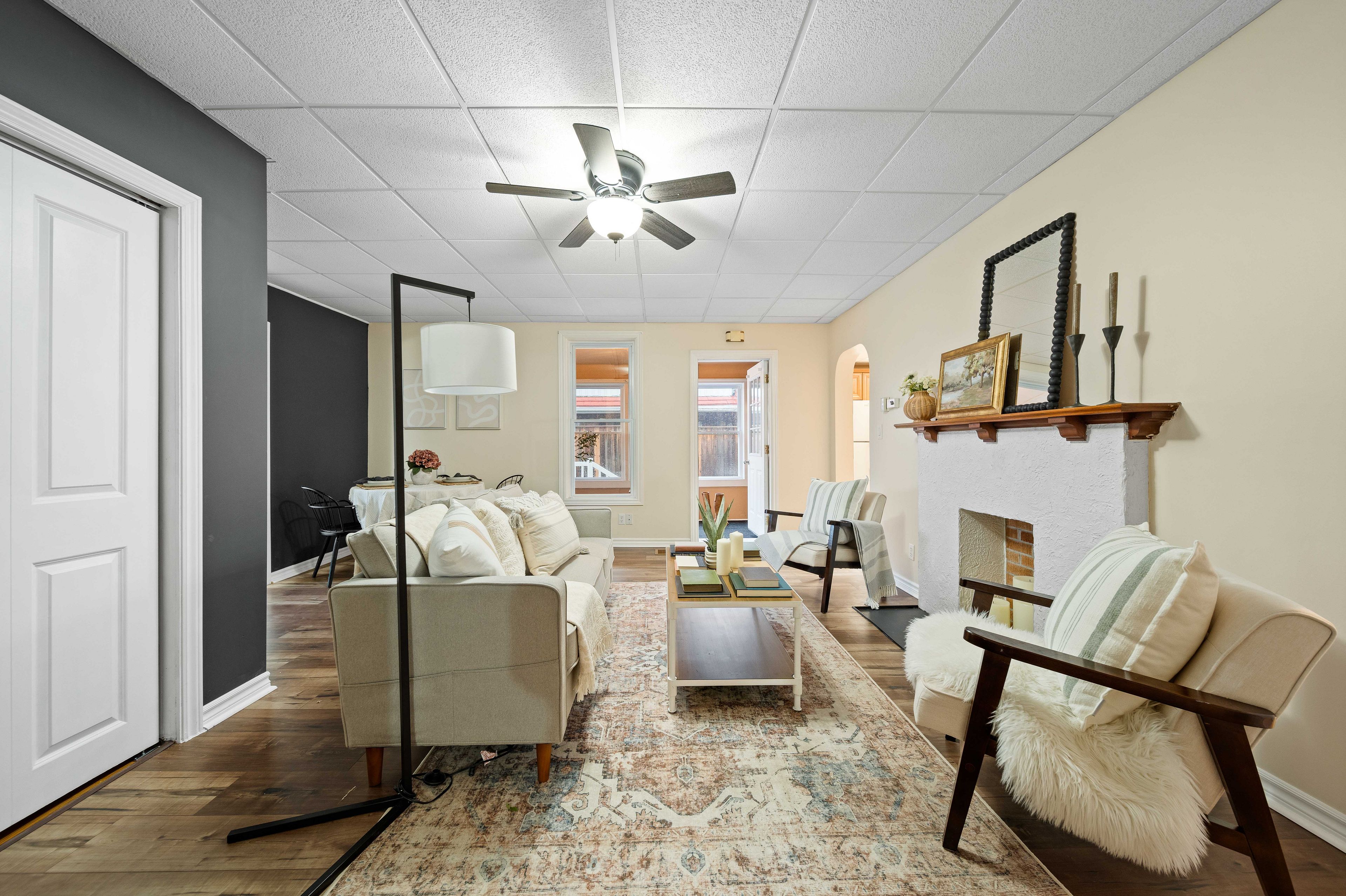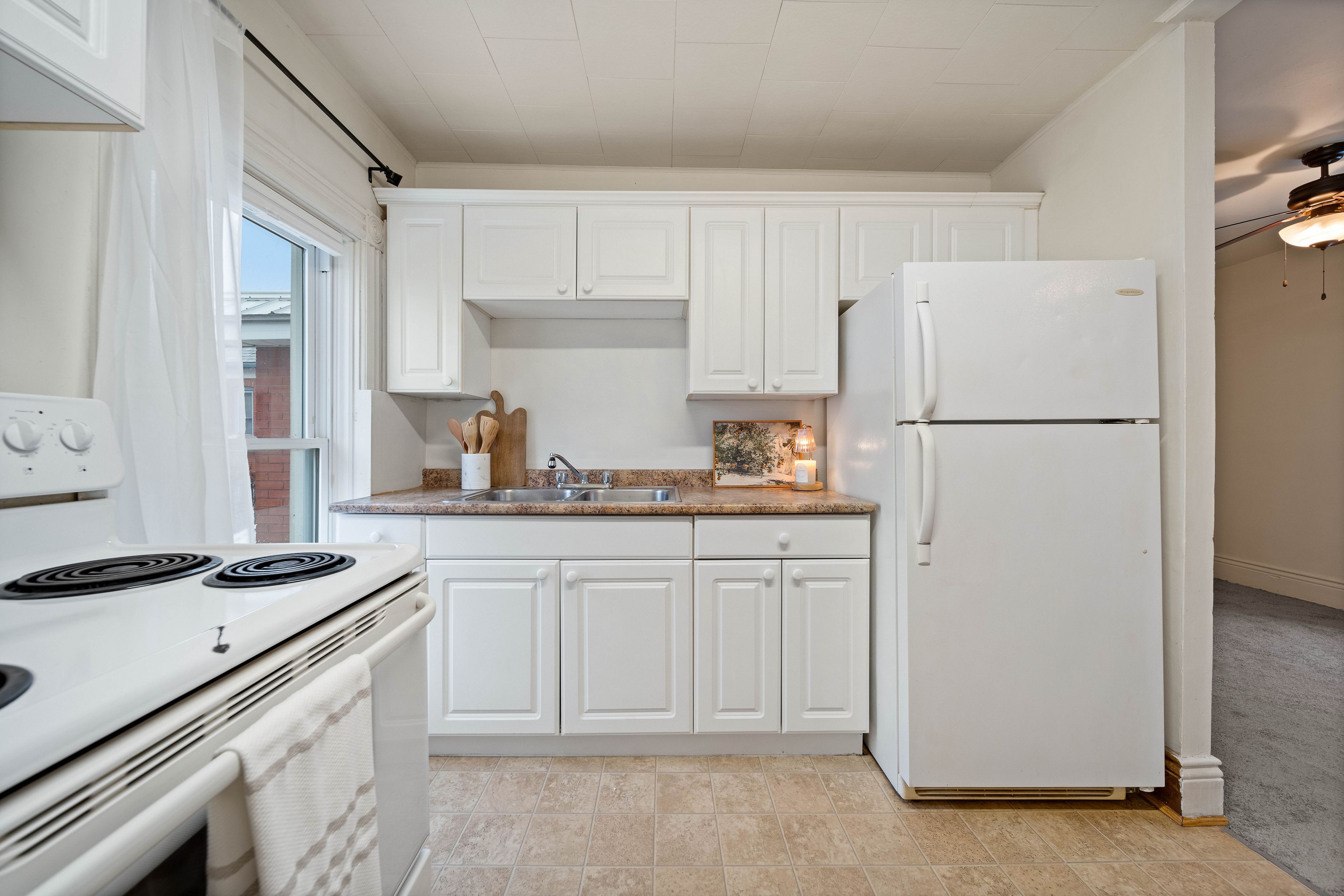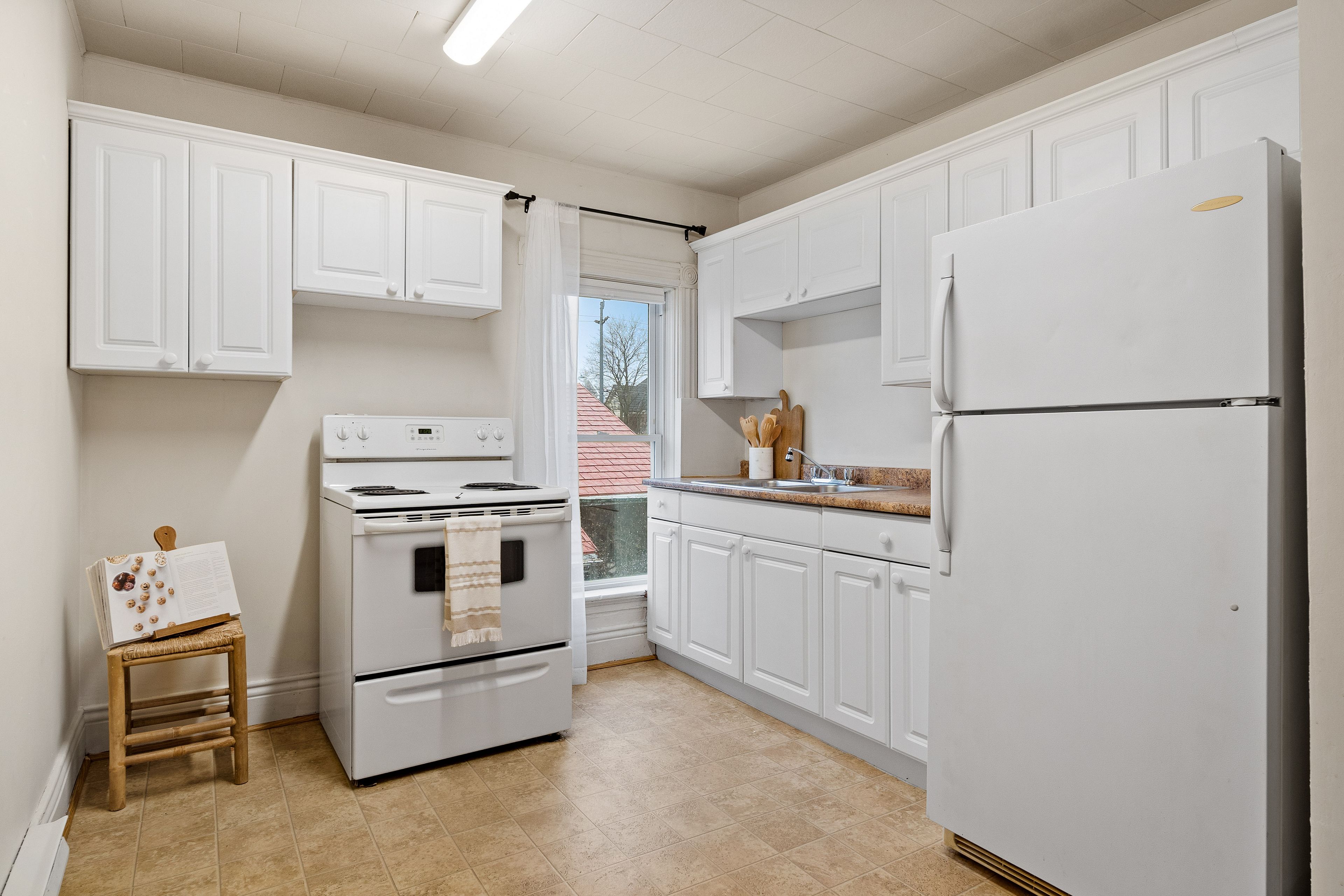 • Main floor unit has updated 2-bed, 1-bath layout with private laundry.