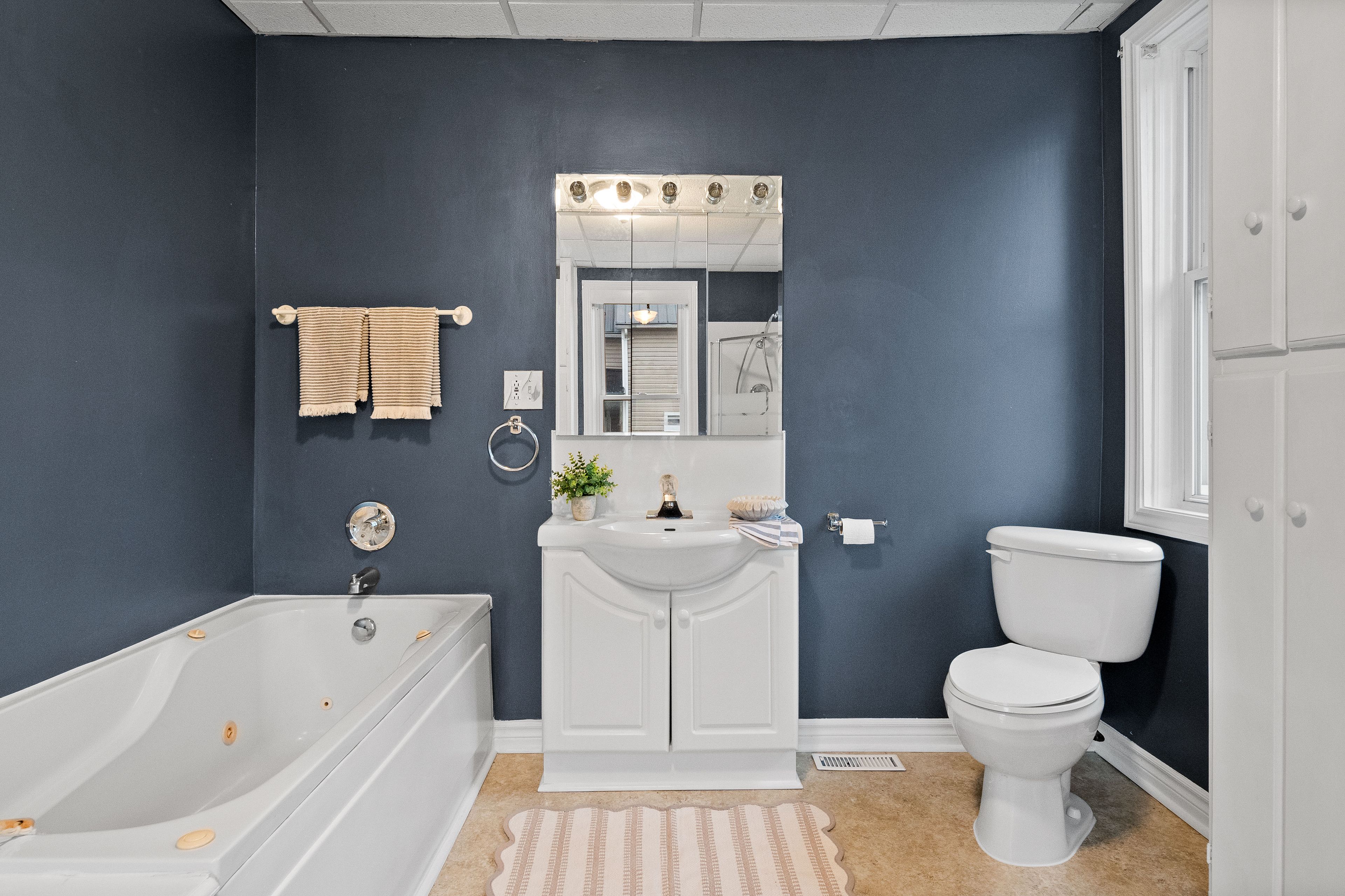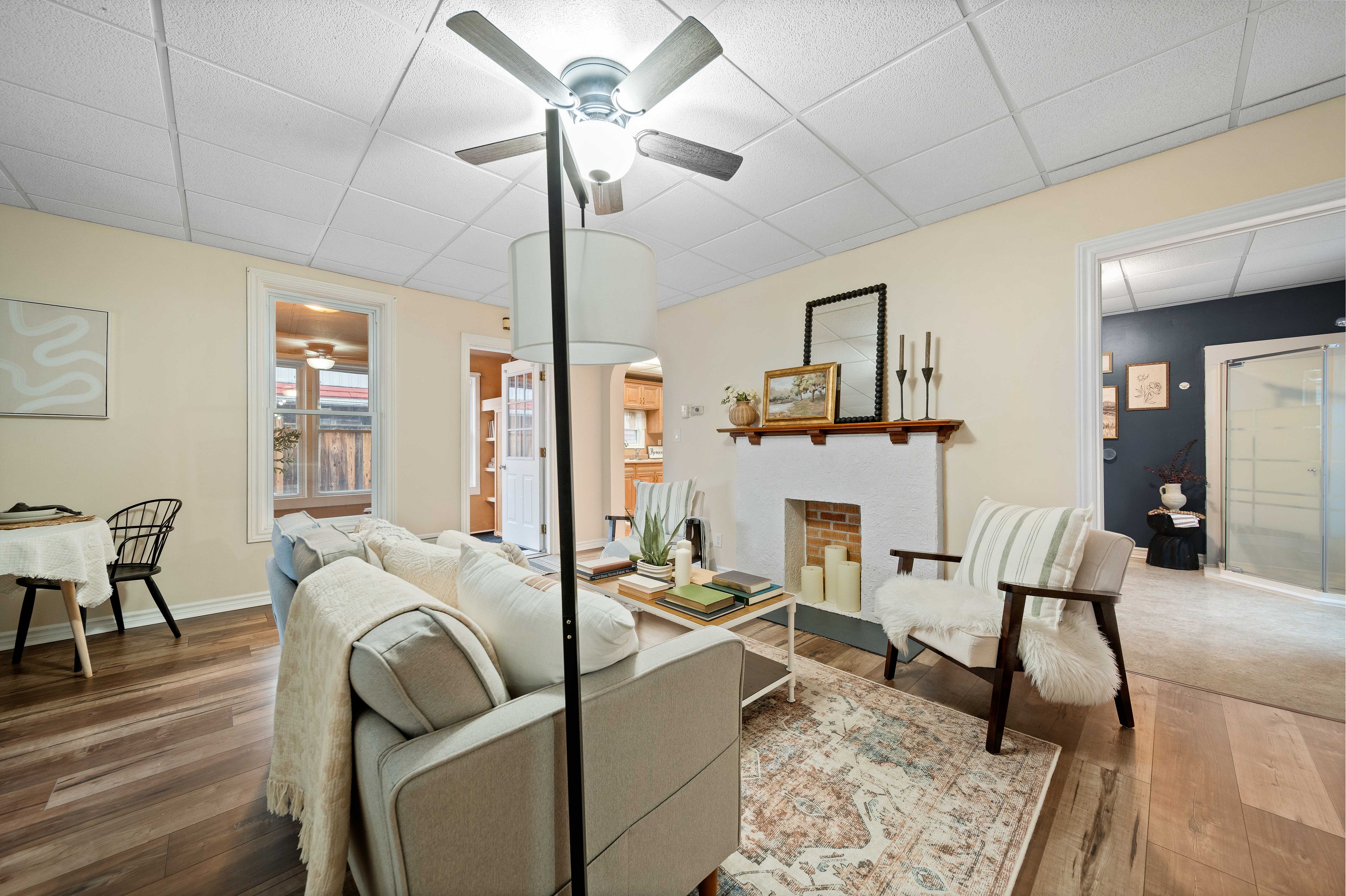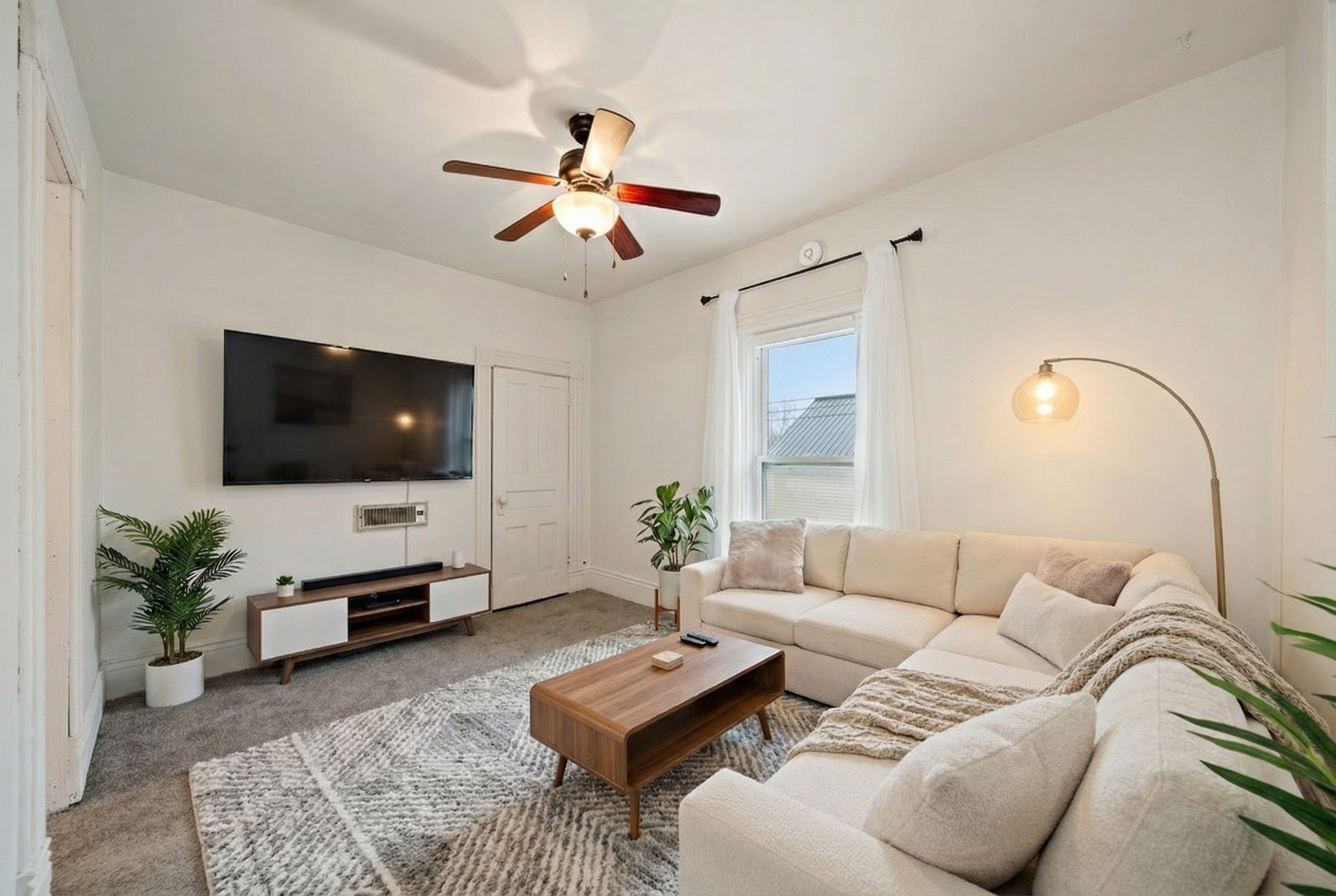 • Main floor unit has updated 2-bed, 1-bath layout with private laundry.