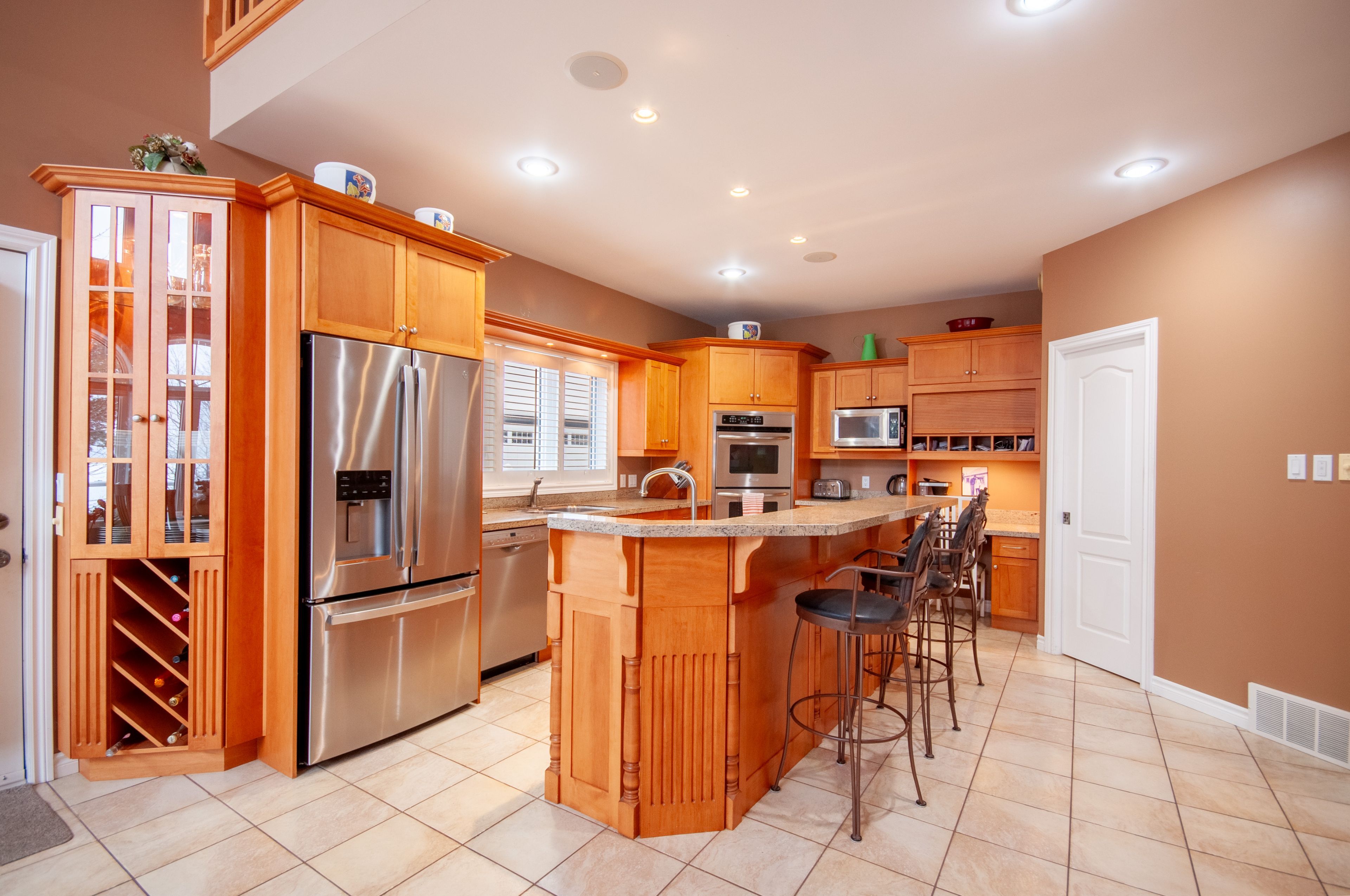 • Large kitchen with granite counters and direct access to a south-facing deck.