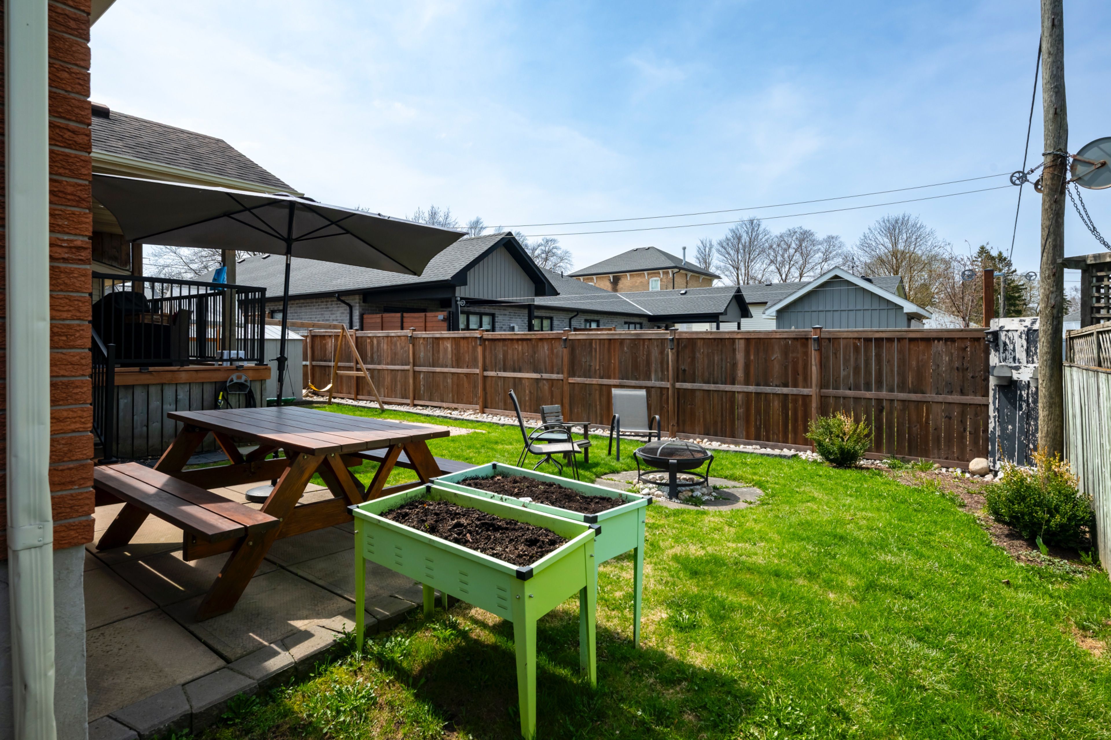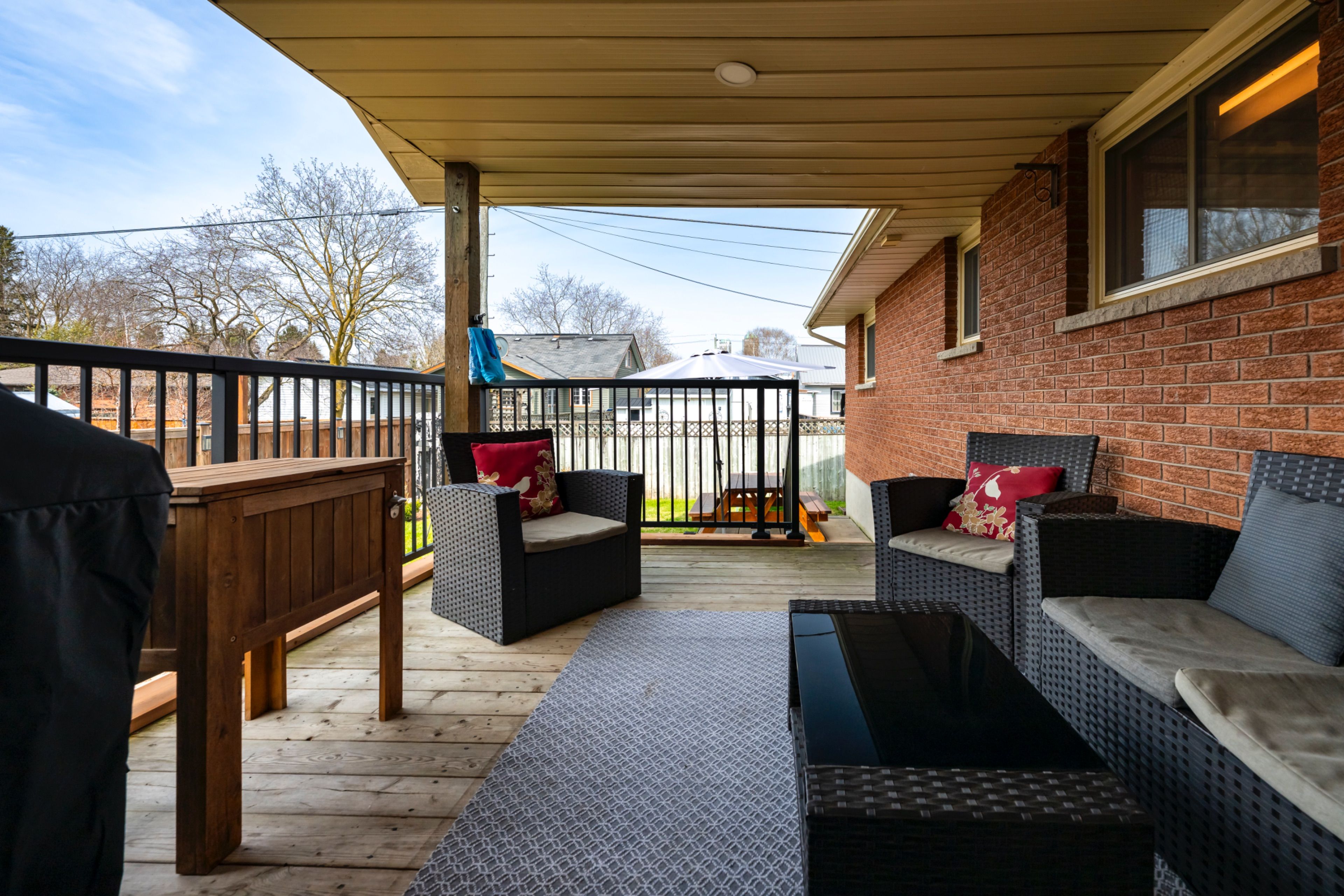 • Ample outdoor space with a fenced yard and covered deck for entertaining.
