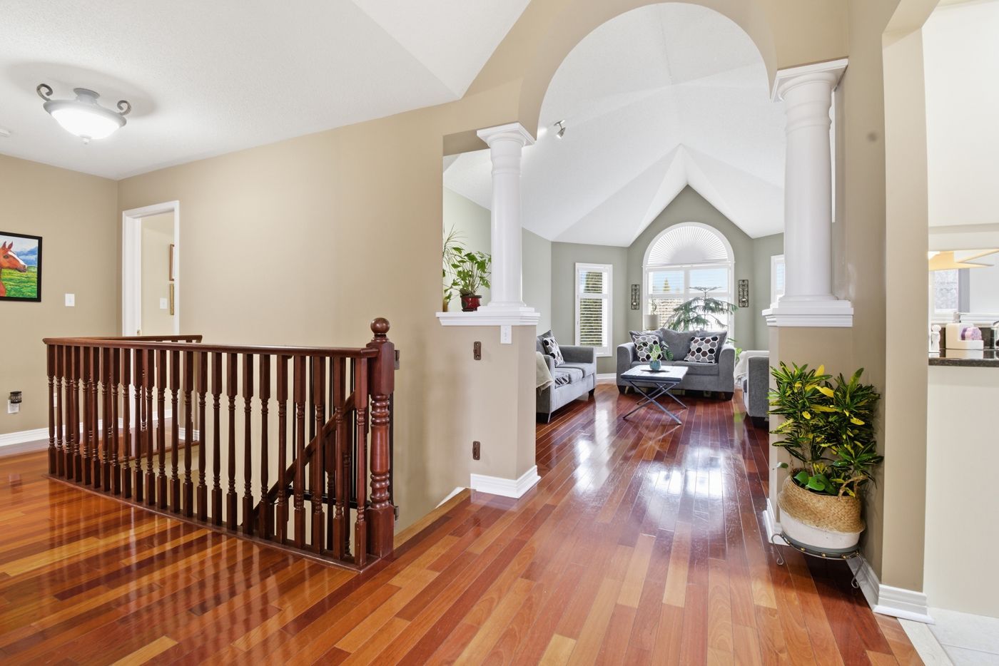 Stunning all-brick bungalow with double garage offering over 3,000 sq ft of finished living space in the sought-after vansickle area. This executive home features 5 bedrooms plus a gym/office and 3 full bathrooms, and impresses from the moment you arrive with its beautiful curb appeal and grand entrance. Inside, you'll find a bright, open layout with a welcoming foyer, hardwood flooring, cathedral ceilings, and decorative pillars throughout the main floor. The formal dining room connects to the well-appointed kitchen through a convenient butler door, while the kitchen itself offers granite countertops, a skylight, and overlooks the dinette with garden doors leading to a large tiered deck, perfect for entertaining. The spacious great room features a gas fireplace and california shutters, and the main-level laundry offers direct garage access. The primary bedroom retreat includes a walk-in closet and 5-piece ensuite, while another main-floor bedroom enjoys ensuite privilege. The finished lower level provides two additional bedrooms, a full bathroom, a large rec/games area, storage, and a bonus gym or office space. Additional features include a sprinkler system, bbq gas line, and (per previous listing) sound-insulated interior walls and rg6 wiring. Located on a quiet street in a fantastic family neighbourhood close to parks, schools, and everyday amenities, and just a short drive to smartcentres st. Catharines (fourth ave) and the pen centre. Move-in ready in one of the west end's most desirable pockets. Freestanding home gym/power rack system is negotiable separately from the sale of the home (weights excluded).