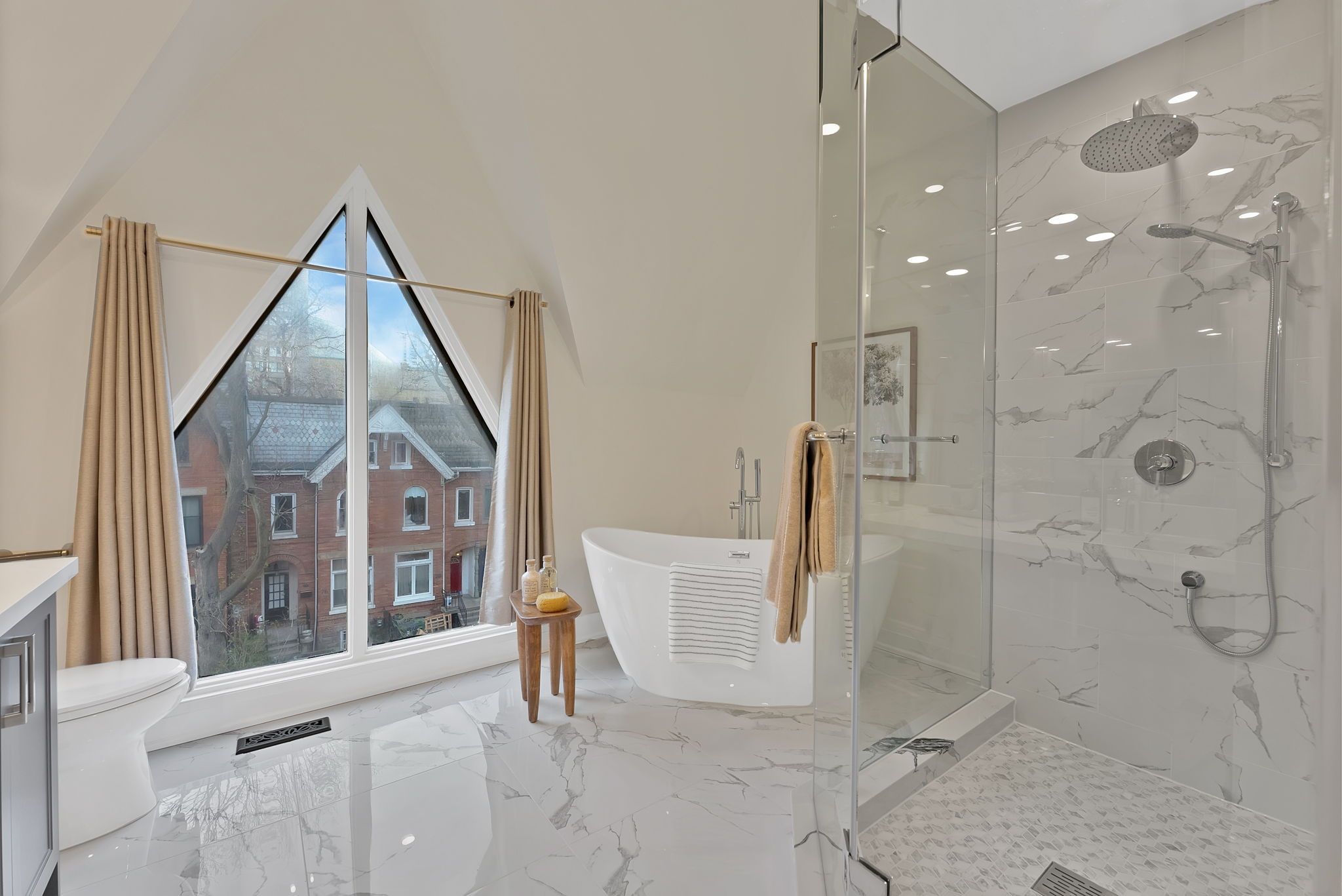 Discover a one-of-a-kind rare gem! Welcome to this nyc-style brownstone townhome tucked into the vibrant heart of downtown toronto. This freehold character home oozes effortlessly cool living. Where soaring 16. 5-foot ceilings flood the open-concept space with natural light, and original exposed brick walls, wood burning fireplace and refinished hardwood floors infuse every level with authentic charm. Tastefully renovated throughout with a modern designer kitchen and spa-like bathrooms, it seamlessly blends historic appeal with modern comfort. A vintage, original spiral staircase winds its way to a stunning private rooftop oasis, an unexpected escape above the city, while a walk-out backyard provides even more serene outdoor space. Spacious bedrooms, including one bathed in natural light from a skylight, complete this one-of-a-kind sanctuary. Quietly nestled in a peaceful community yet just steps from yonge street, college park and tmu subway stations and everything downtown has to offer. This unique home is made for those who crave character, cool vibes, and effortless city living at its very best!
