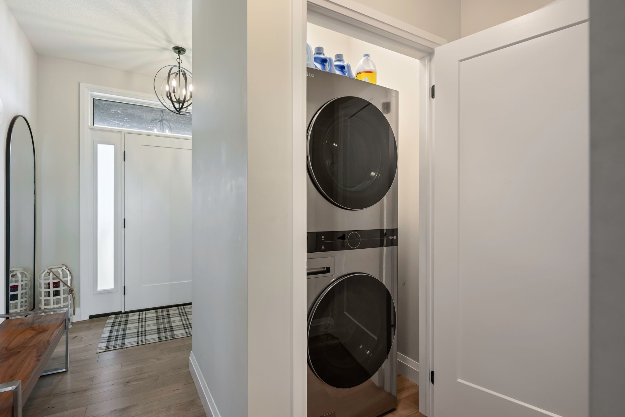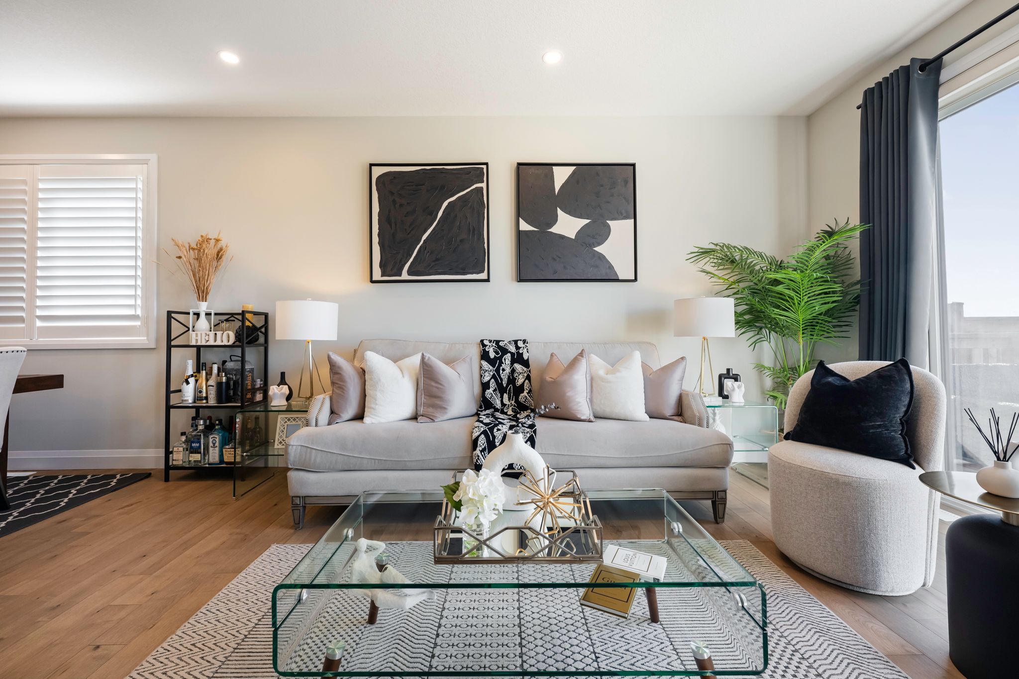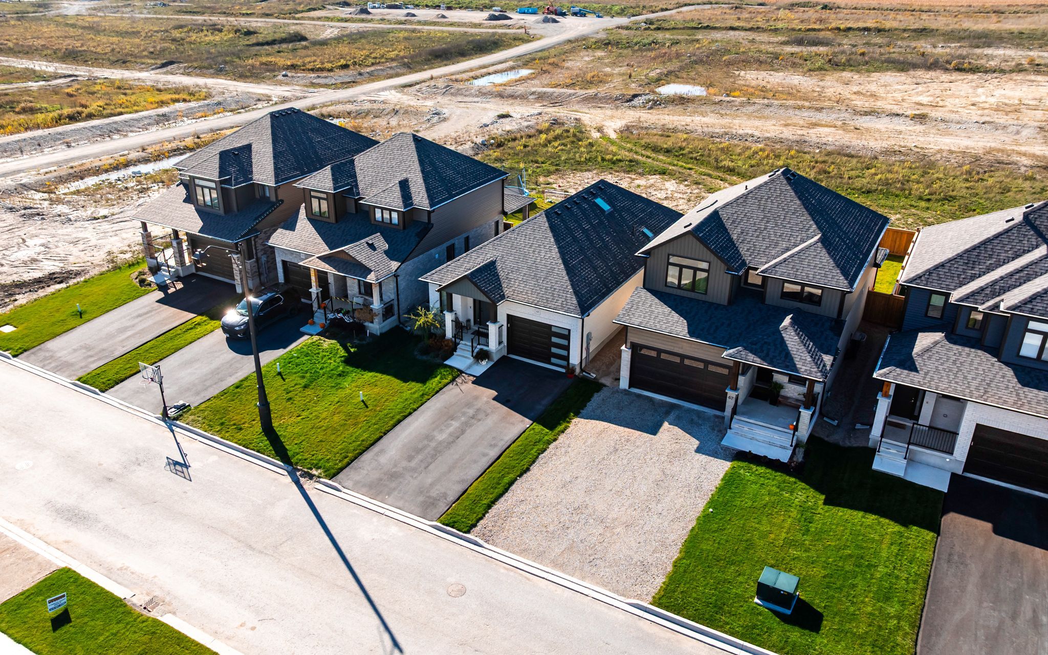 Welcome to mayberry hill, one of grand valley's most welcoming communities by thomasfield homes. This recently built paisley model bungalow sits on a 38-foot lot and blends clean, classic style with a layout that simply works. Inside, the home feels open and bright thanks to large windows and a smart floor plan that makes the most of every inch. The kitchen is a standout-crisp white cabinetry, a contrasting island, under-cabinet lighting, and a pantry for everyday storage. Matte white ge café appliances with brushed gold accents, including a 30-inch gas range with double oven, counter-depth french-door refrigerator, and ultra-quiet dishwasher, tie everything together with a premium finish. Timeless white quartz counters and soft lighting add to the clean, inviting feel. The main living area flows naturally to the backyard deck-perfect for morning coffee or quiet evenings outdoors. Both bedrooms are spacious, with the primary offering a walk-in closet and private ensuite featuring double vanities and upgraded tile. The main floor laundry with lg washtower keeps chores simple and efficient. Engineered hardwood and ceramic floors, upgraded fixtures, quartz counters, and thoughtful lighting bring an elevated touch throughout. The large, open basement with big windows is ready for your ideas-whether you need more living space, a gym, or a guest suite. With its welcoming front porch, bright interiors, and functional design, this home delivers easy living in one of grand valley's most loved neighbourhoods. Perfect for first-time buyers or those looking to downsize without compromise.