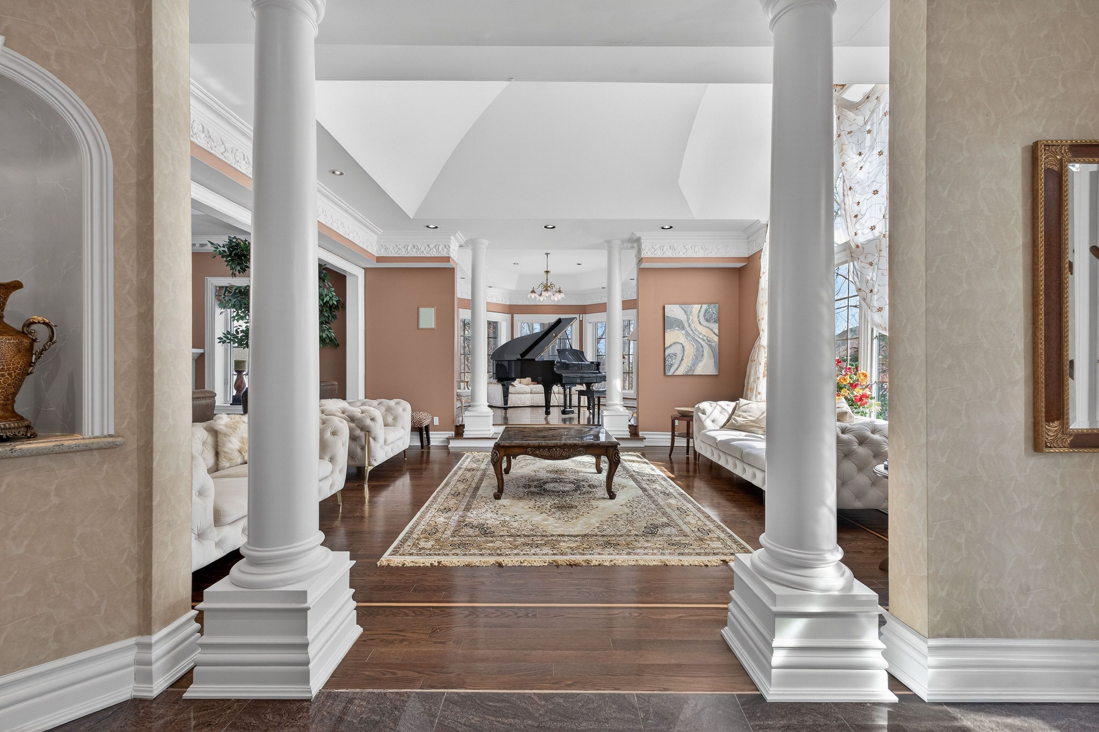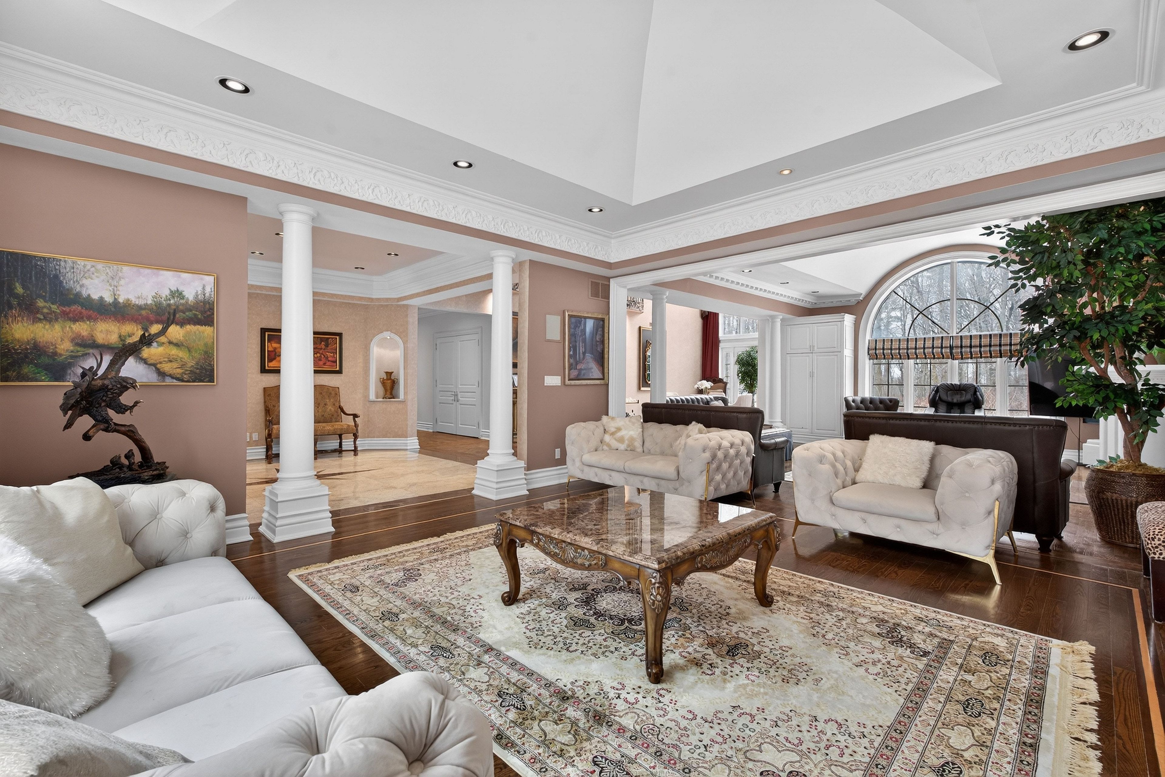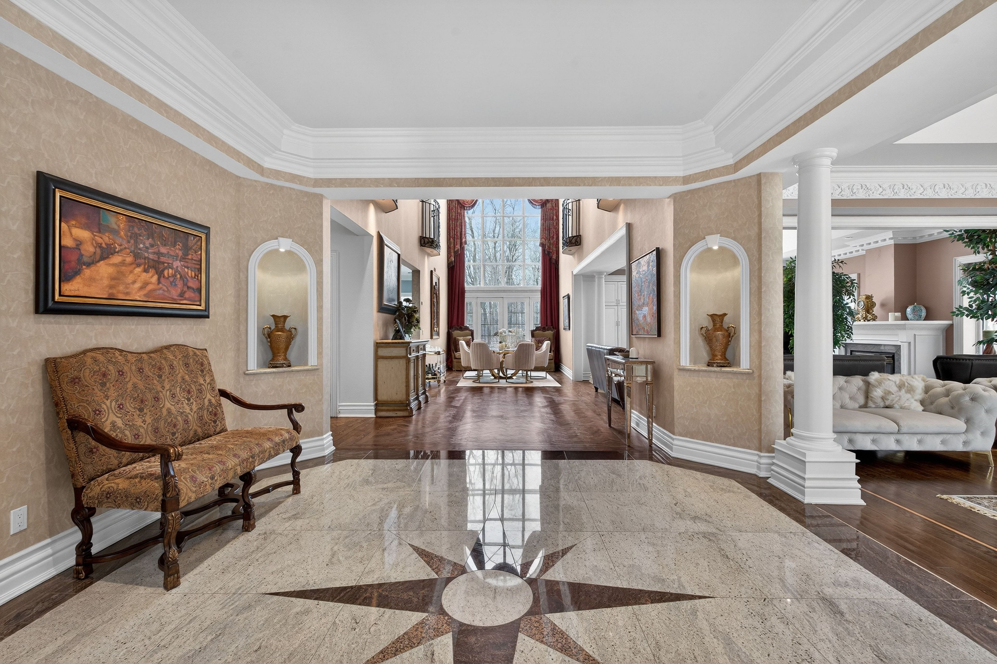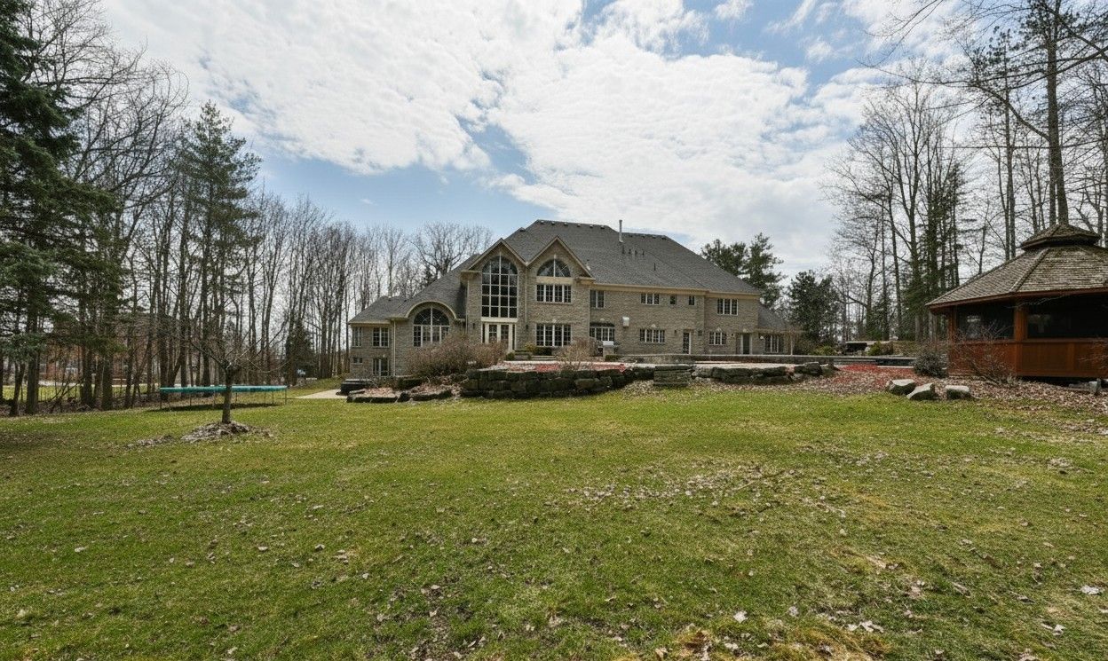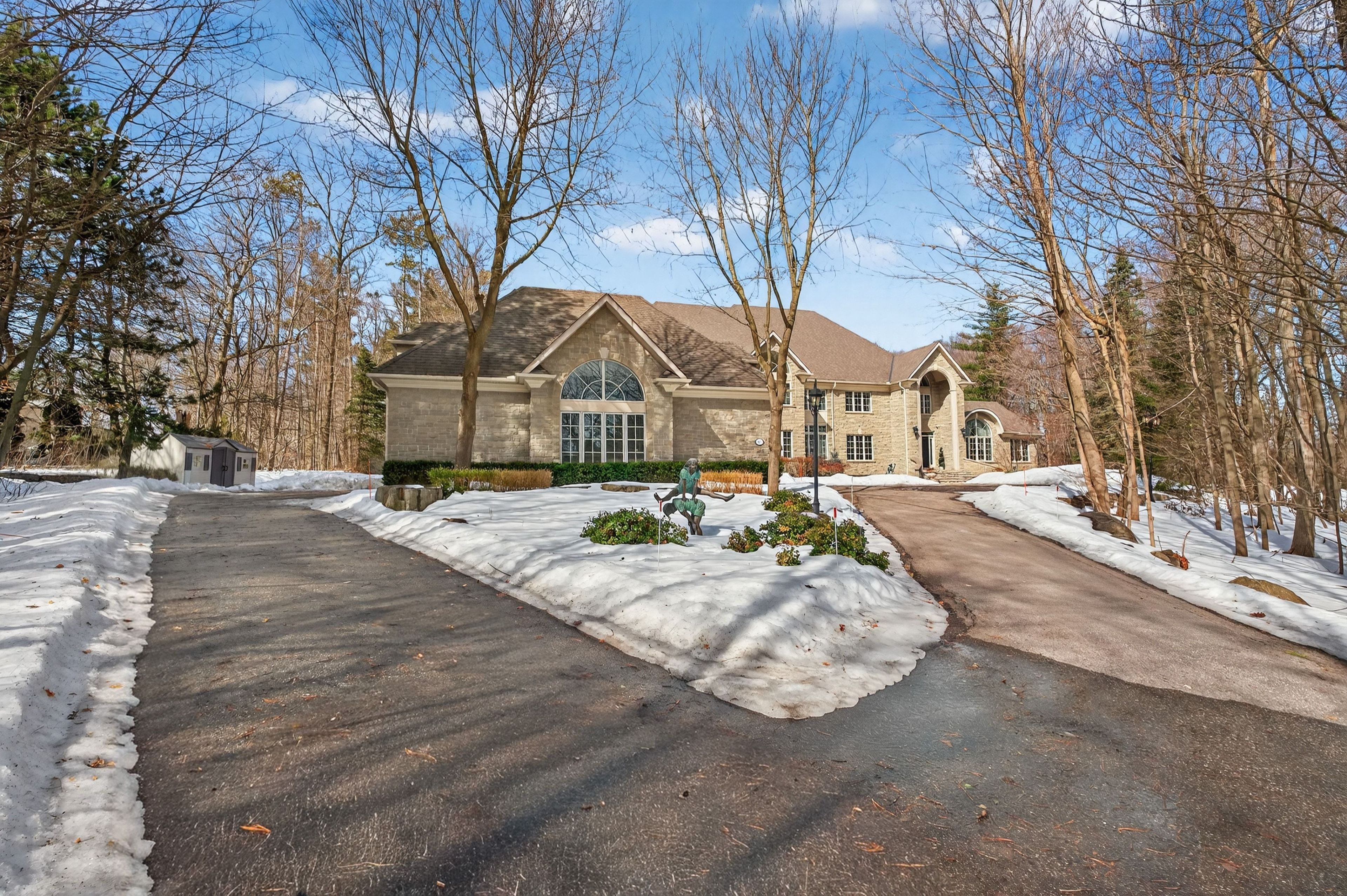 15,000 sq. F. T ' stone estate on private 2 acres in luxurious resort-like setting!~(9600 sq. Ft.+5700) sq. Ft. Fin. Walk-out lower!~ 7+ car garage+ height for lifts!~ high elevation!~ cathedral center great hall w/ 30+ feet ceilings!~ vaulted ceilings! + 10 ft ceilings~ *** main floor in-law suite with liv rm./ bedroom/ washroom/ sep. Entrance!~ entertainer's delight lower w/ replica " cheers " show wet-bar/ wine cellar/ lounge!~ private backyard oasis w/ interlocked in-ground swimiming pool/ waterfall & gazebo.