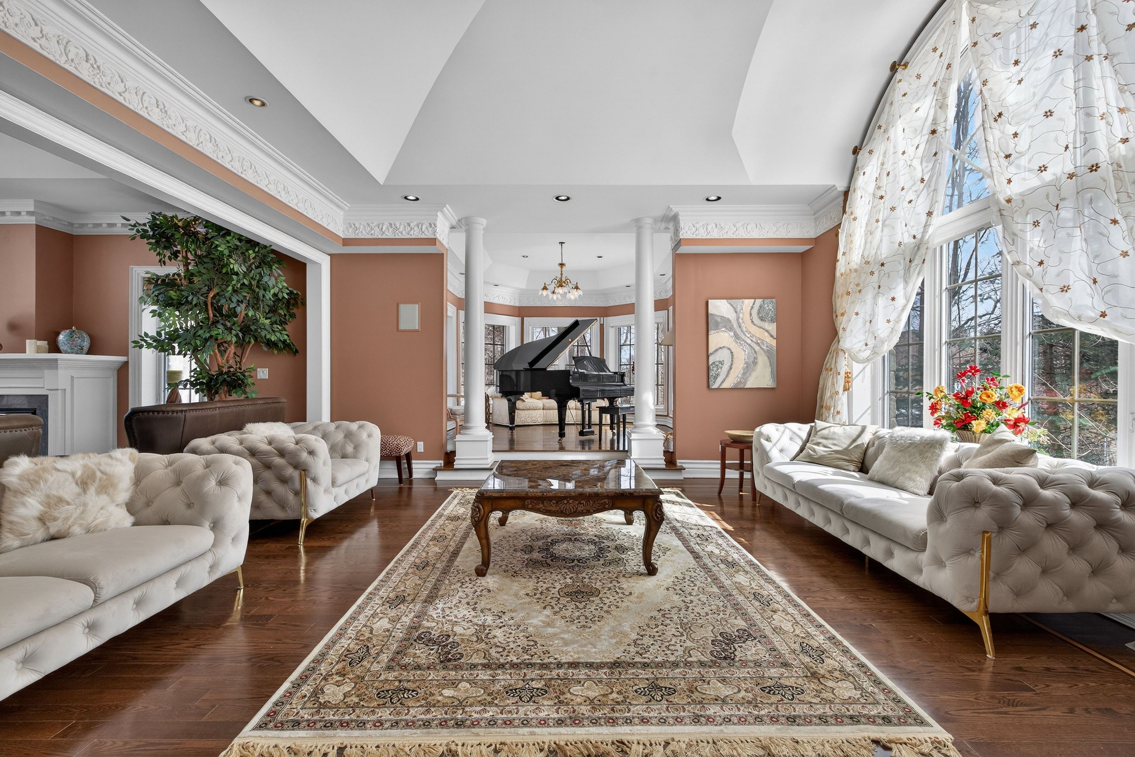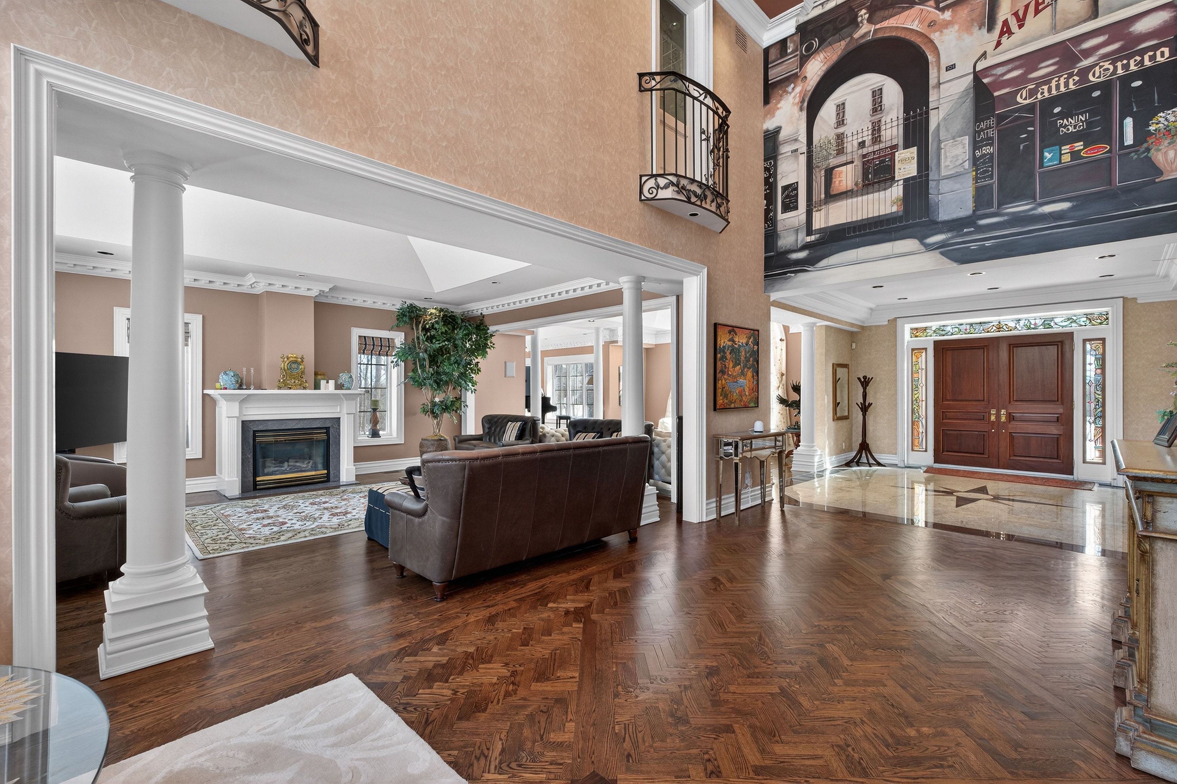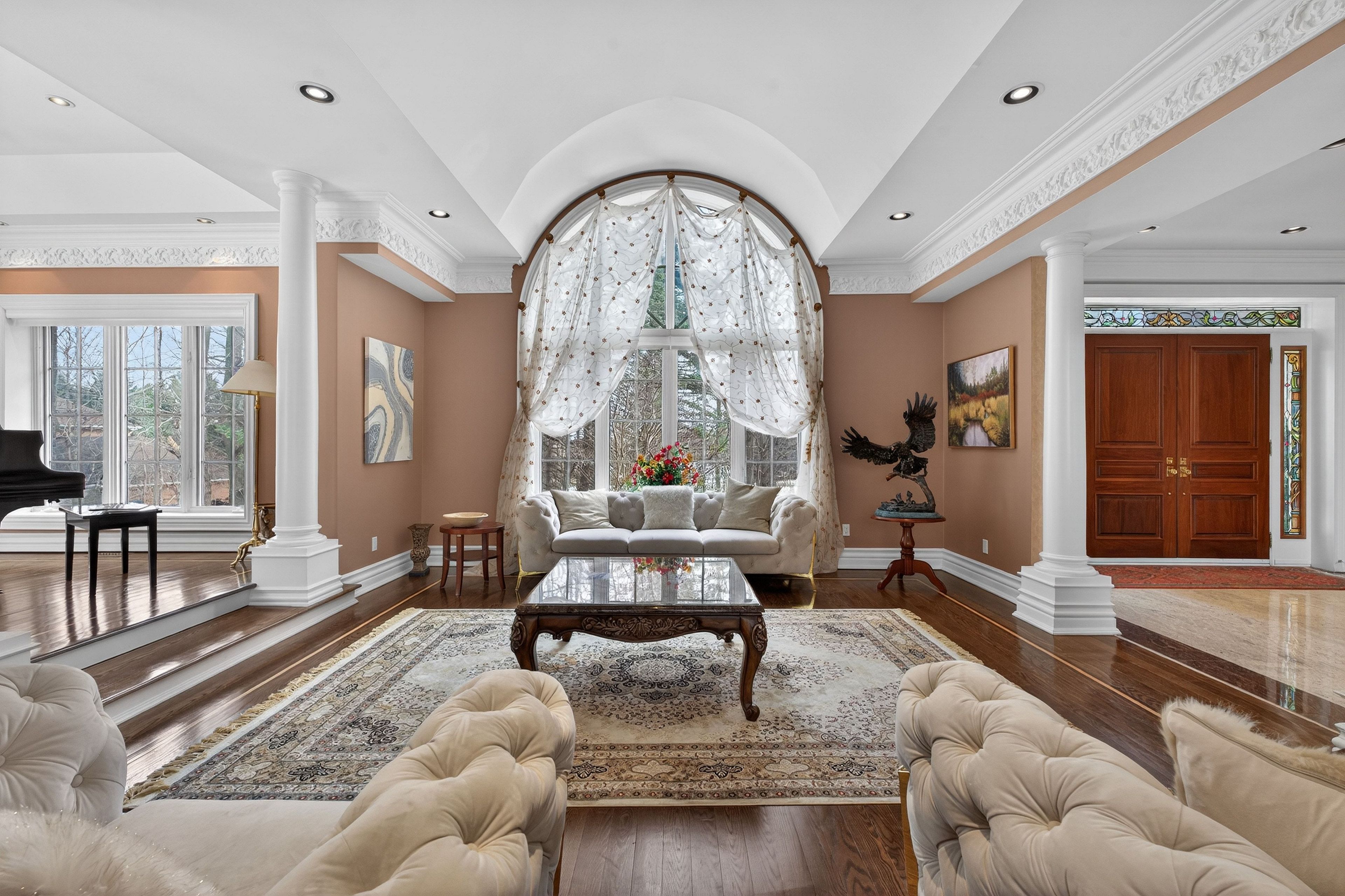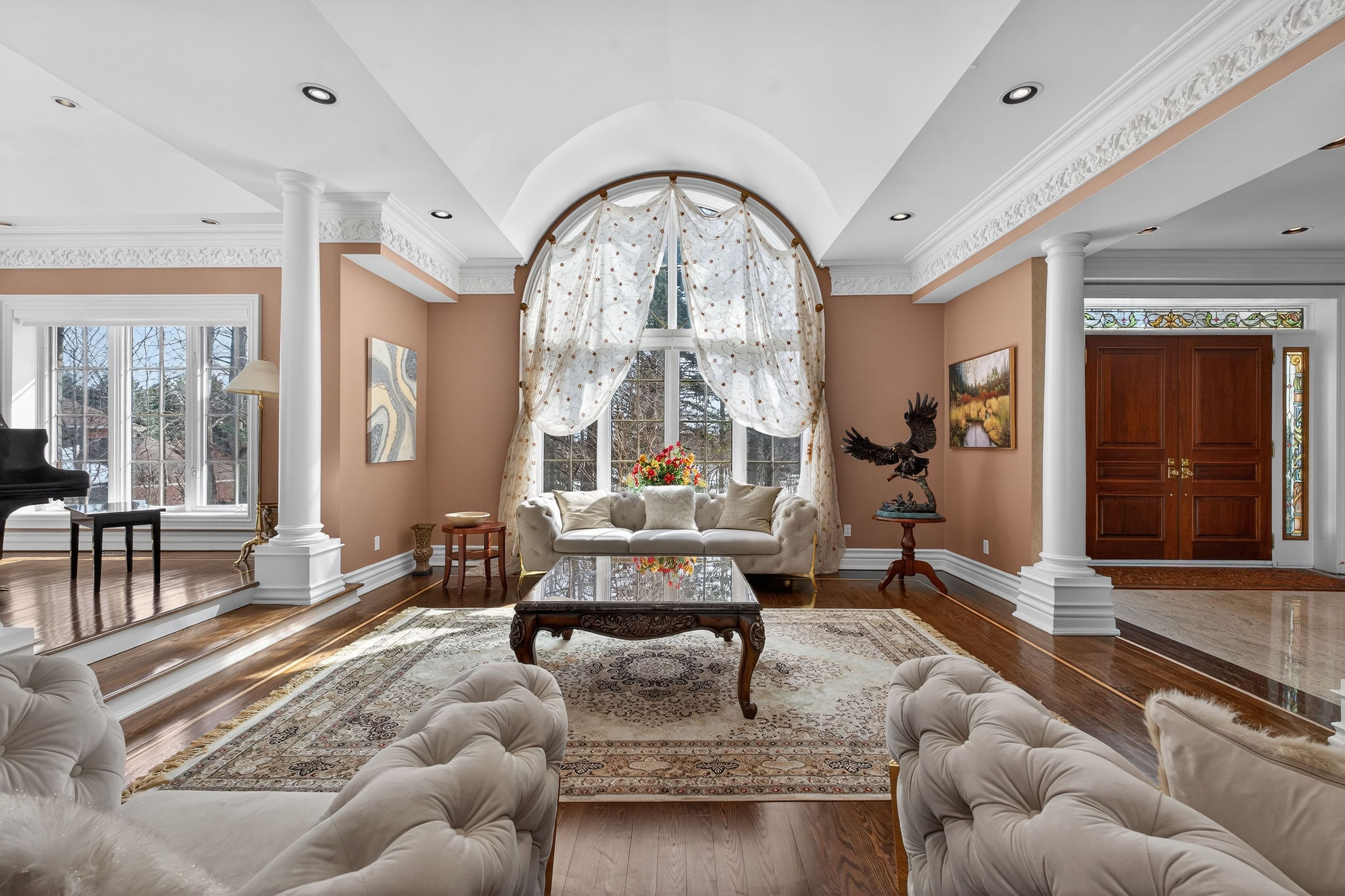 15,000 sq. F. T ' stone estate on private 2 acres in luxurious resort-like setting!~(9600 sq. Ft.+5700) sq. Ft. Fin. Walk-out lower!~ 7+ car garage+ height for lifts!~ high elevation!~ cathedral center great hall w/ 30+ feet ceilings!~ vaulted ceilings! + 10 ft ceilings~ *** main floor in-law suite with liv rm./ bedroom/ washroom/ sep. Entrance!~ entertainer's delight lower w/ replica " cheers " show wet-bar/ wine cellar/ lounge!~ private backyard oasis w/ interlocked in-ground swimiming pool/ waterfall & gazebo.