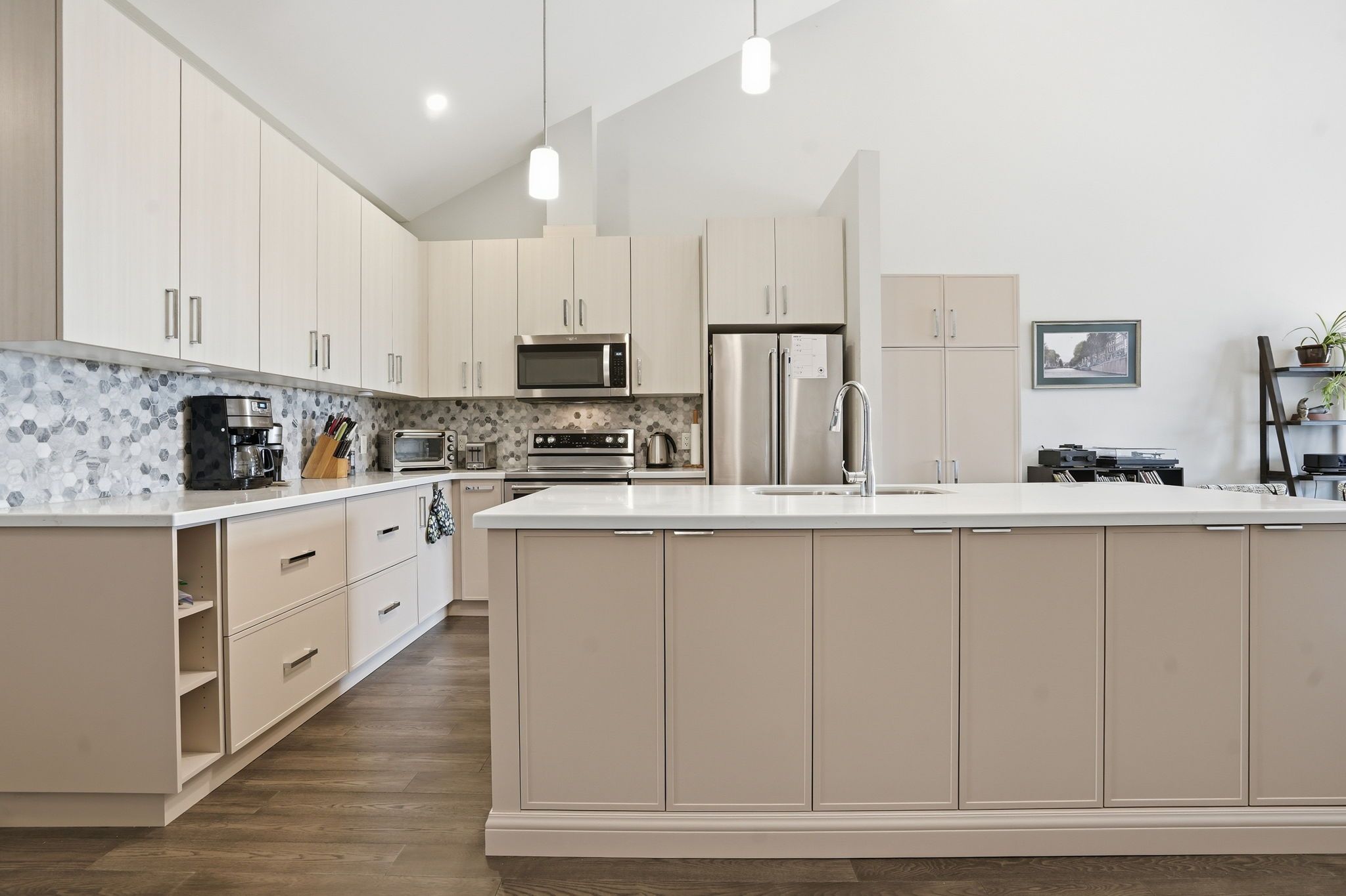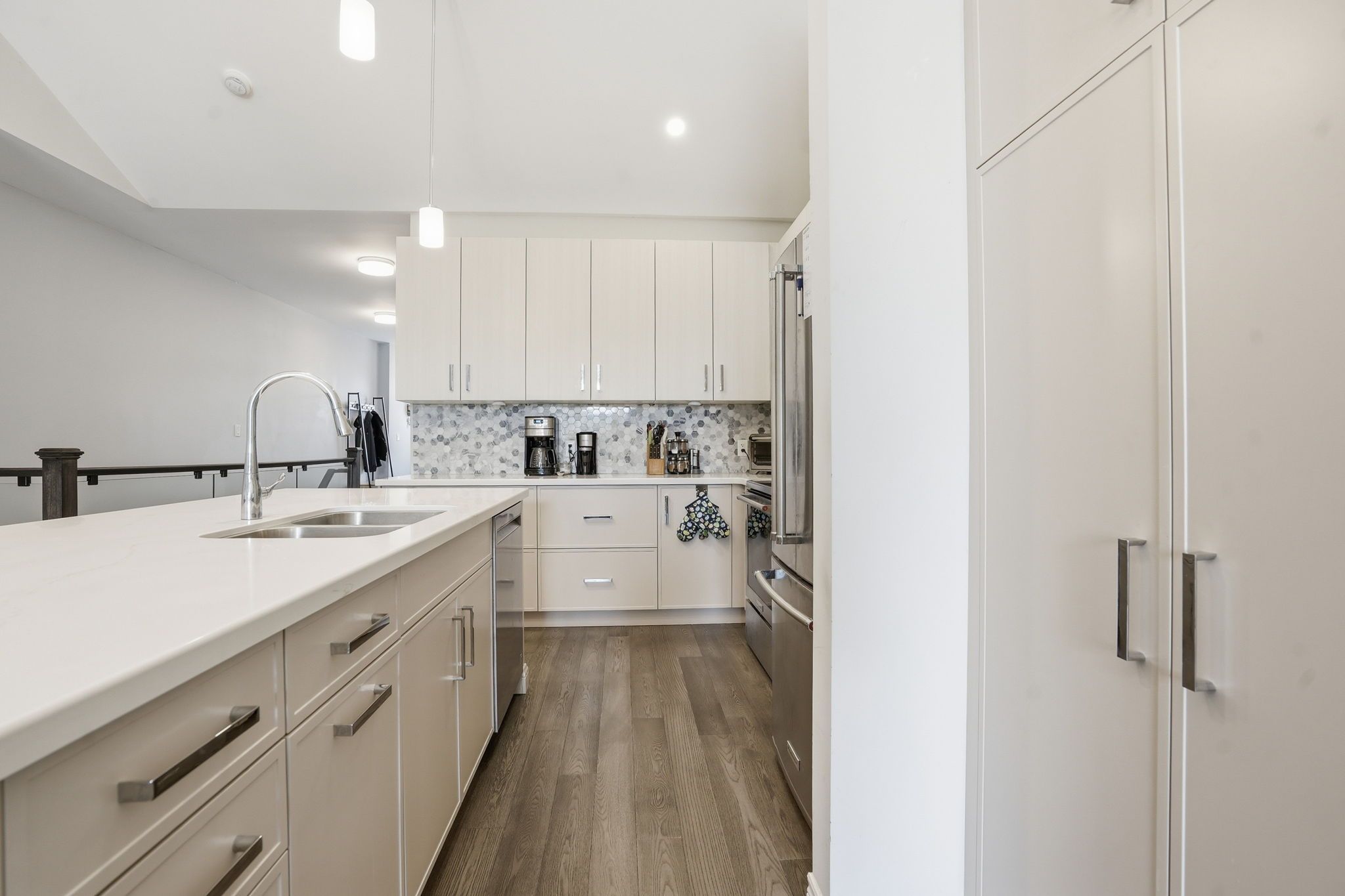 • Bright open-concept main level with upgraded flooring and modern kitchen.