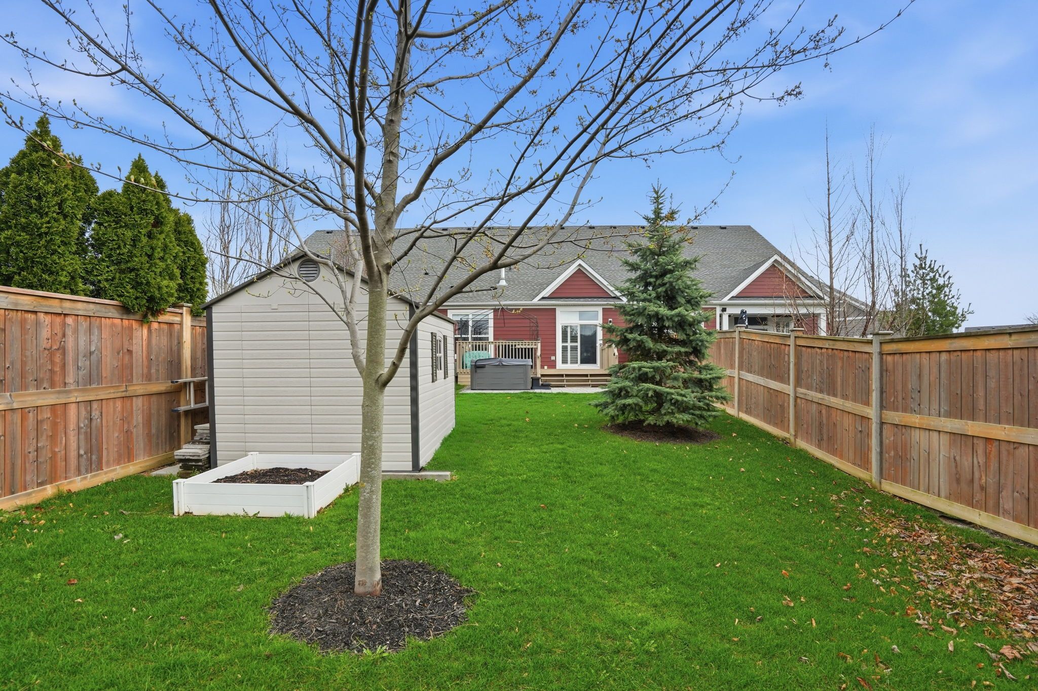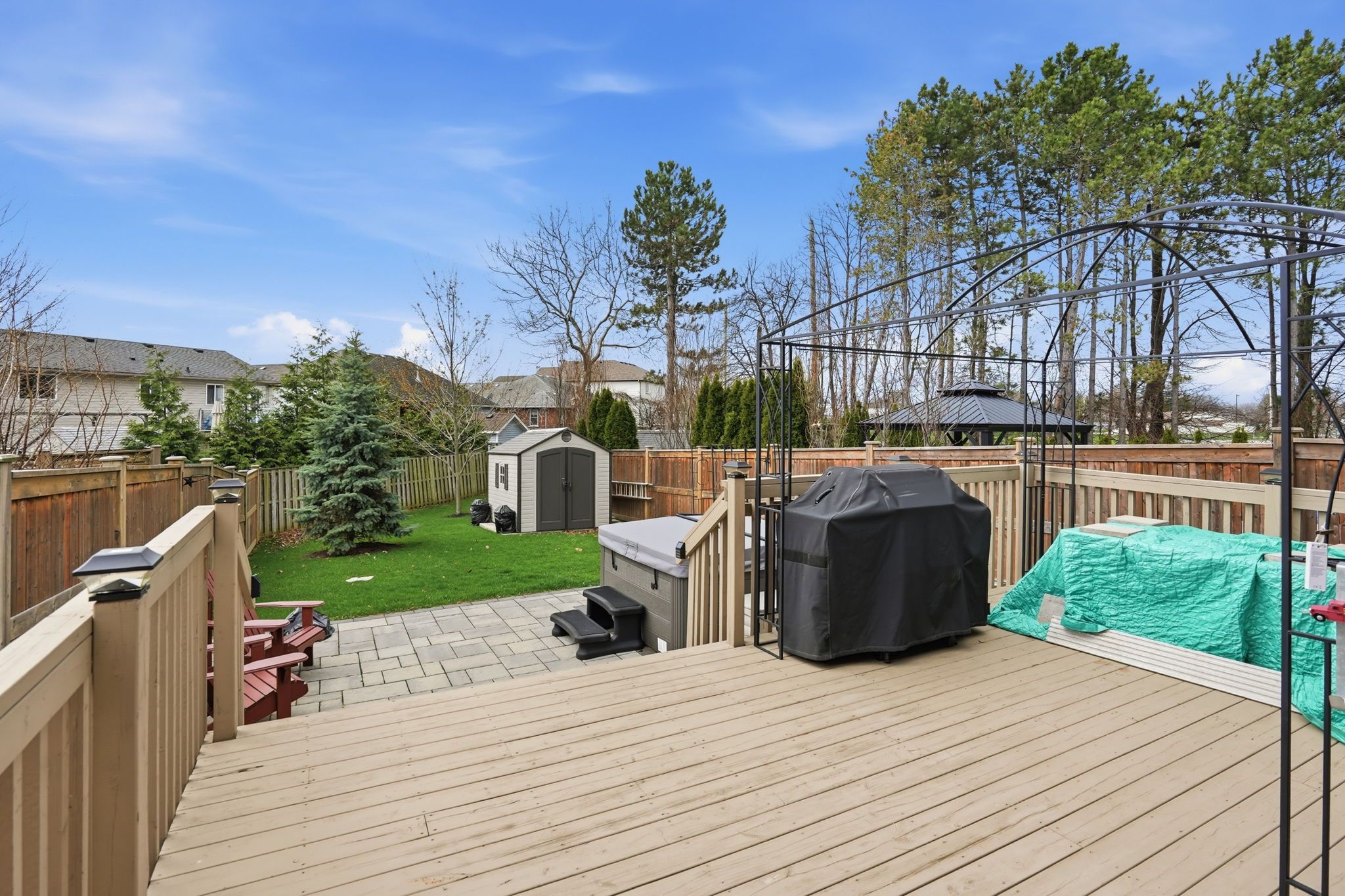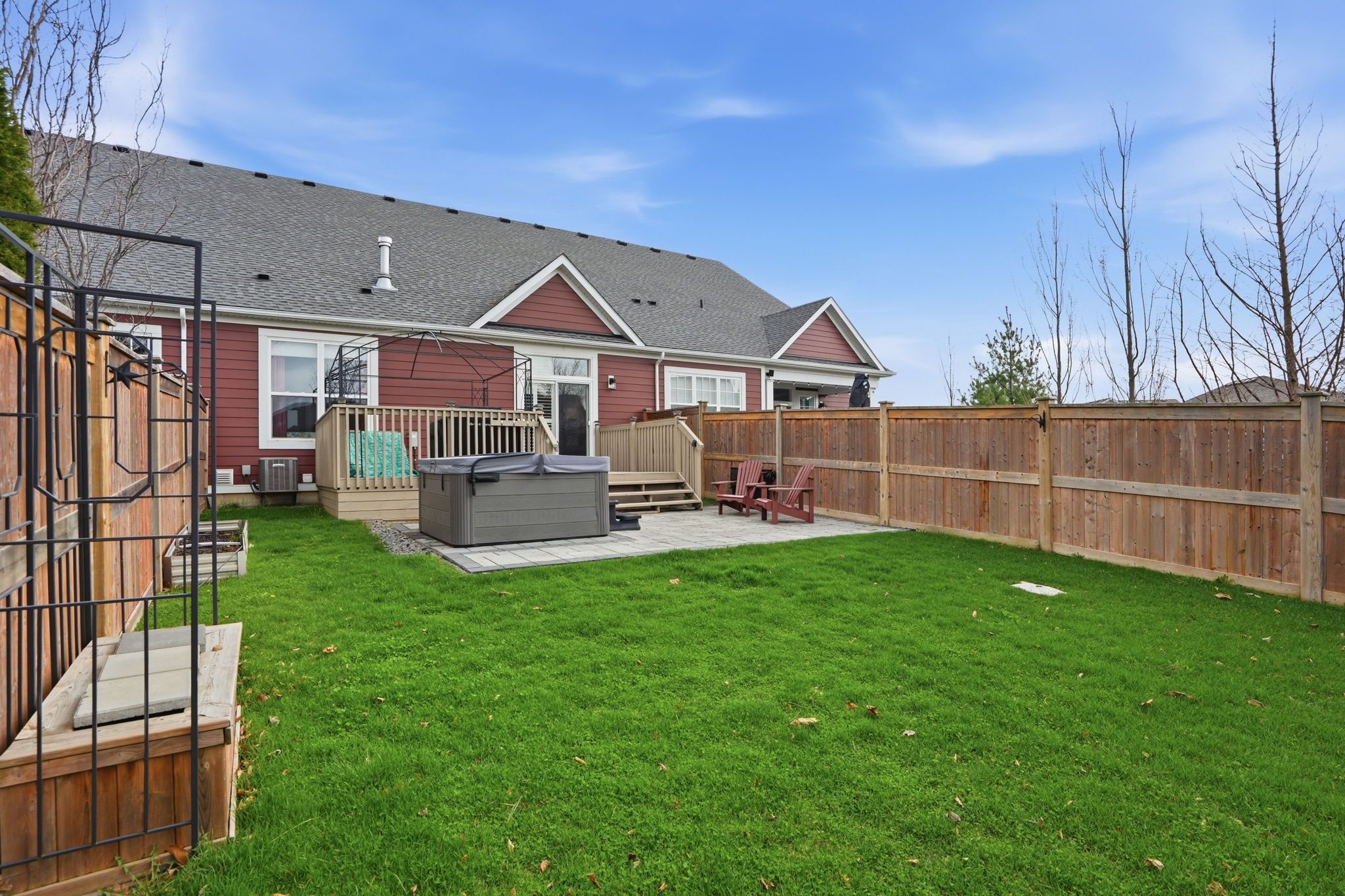 • Private backyard retreat with a deck and included hot tub.