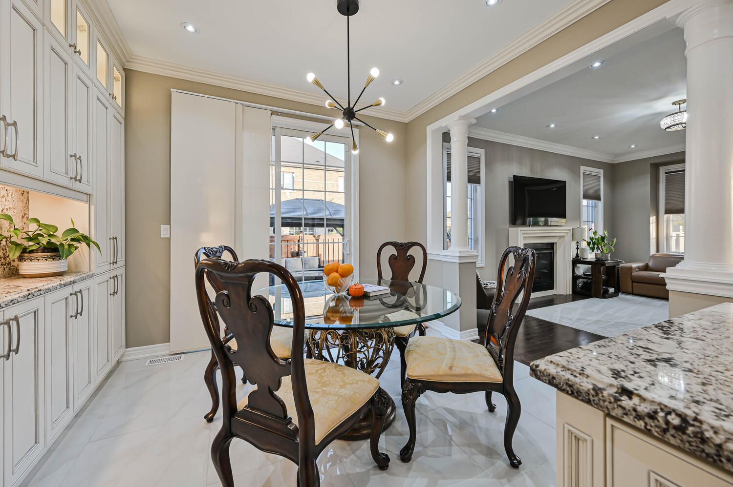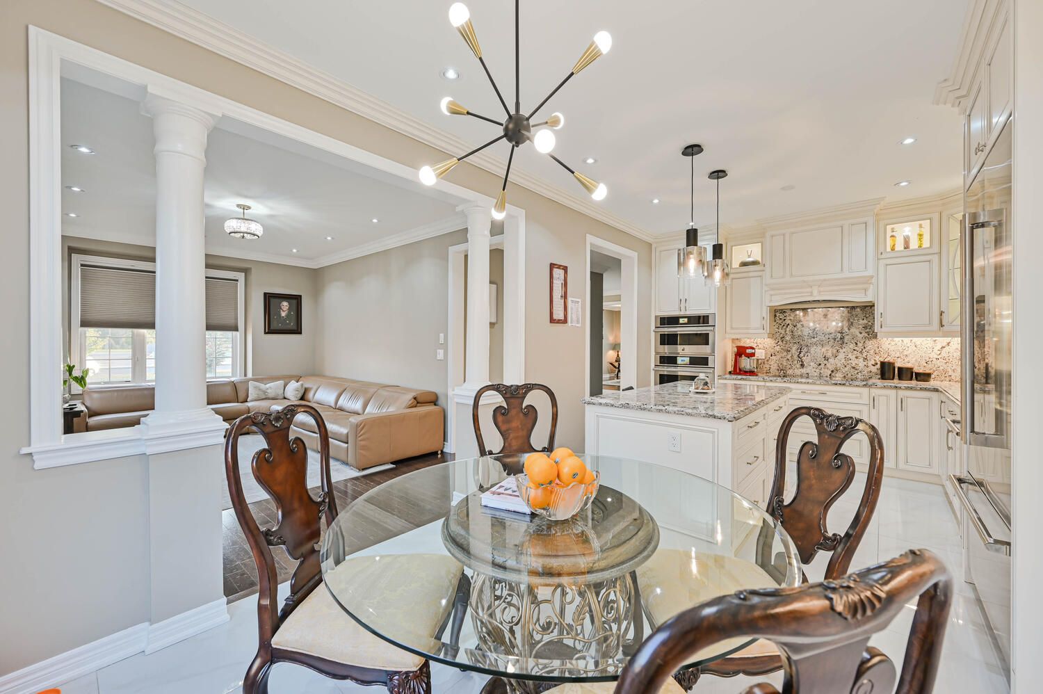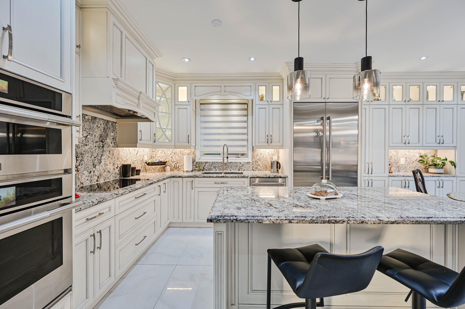 • Upgraded custom kitchen with high-end built-in appliances.