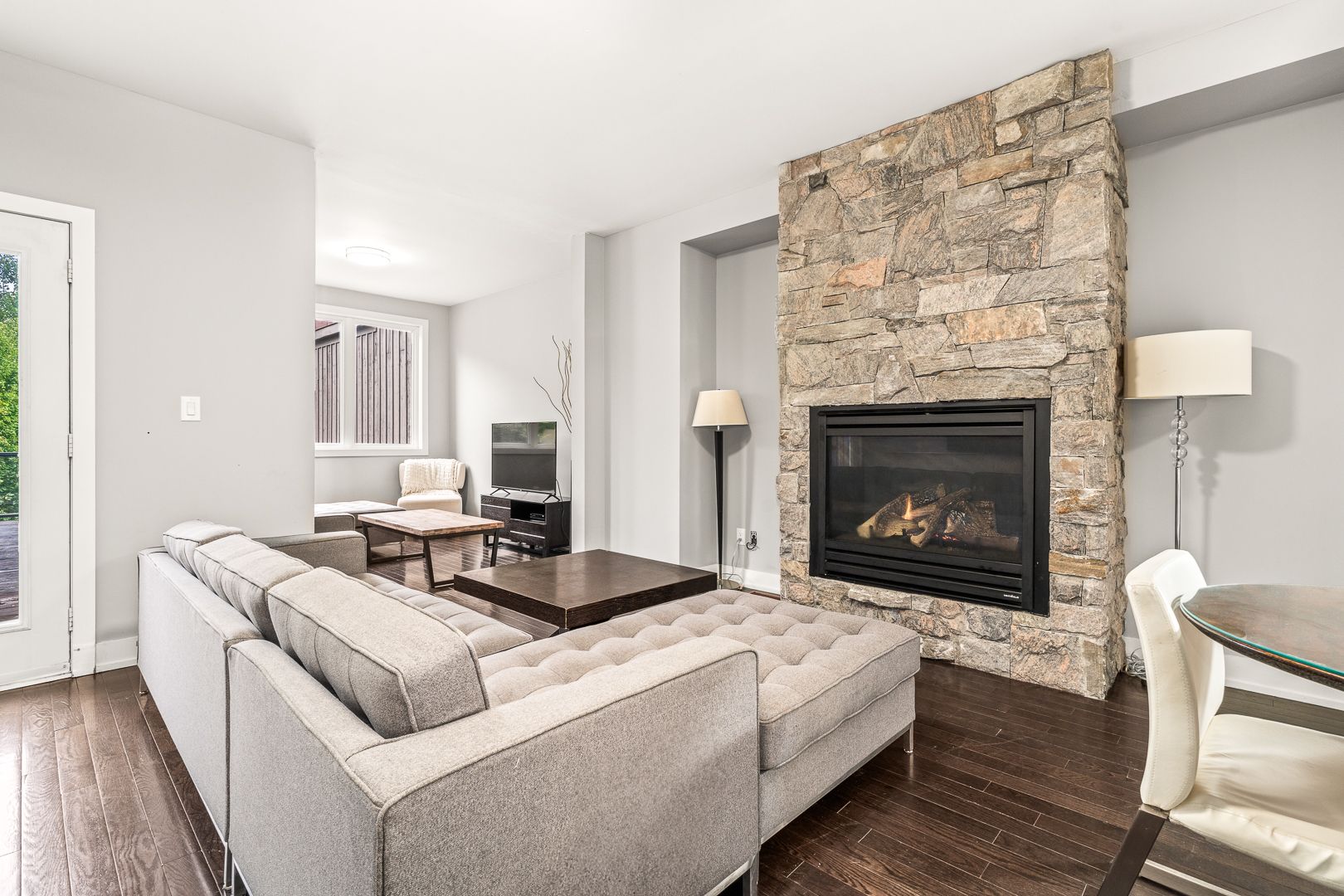 Discover refined living at muskoka bay resort with this stunning 4 bedroom, 3. 5 bathroom townhouse. Blending modern comfort with resort style amenities , this 1573 square foot home is perfect for year round living, investment or a luxury retreat. The main floor features an open concept kitchen with central island, a bright dining area, and a welcoming living room with gas fireplace. A beautiful four season room extends your living space and a walkout deck overlooks the natural ravine below. Upstairs the primary bedroom offers a private balcony and a three piece ensuite. Two additional bedrooms and a four piece washroom provide ample space for family or guests. The fully furnished lower level includes a spacious living room with walk out access to green space, a full four piece washroom, laundry and direct access to the one car garage. Take advantage of the fully managed resort rental program to help generate revenue when you are not using your unit. As part of muskoka bay resort this property includes the initiation fee for a golf or social membership, granting access to world class amenities such as the award winning championship golf course, clifftop clubhouse with restaurant and patio, infinity pool, kids pool and sauna and a variety of year round activities such as skiing, snowshoeing, skating and more. Whether you are entertaining, relaxing or enjoying muskoka's four season, this home offers the perfect balance of comfort and lifestyle.