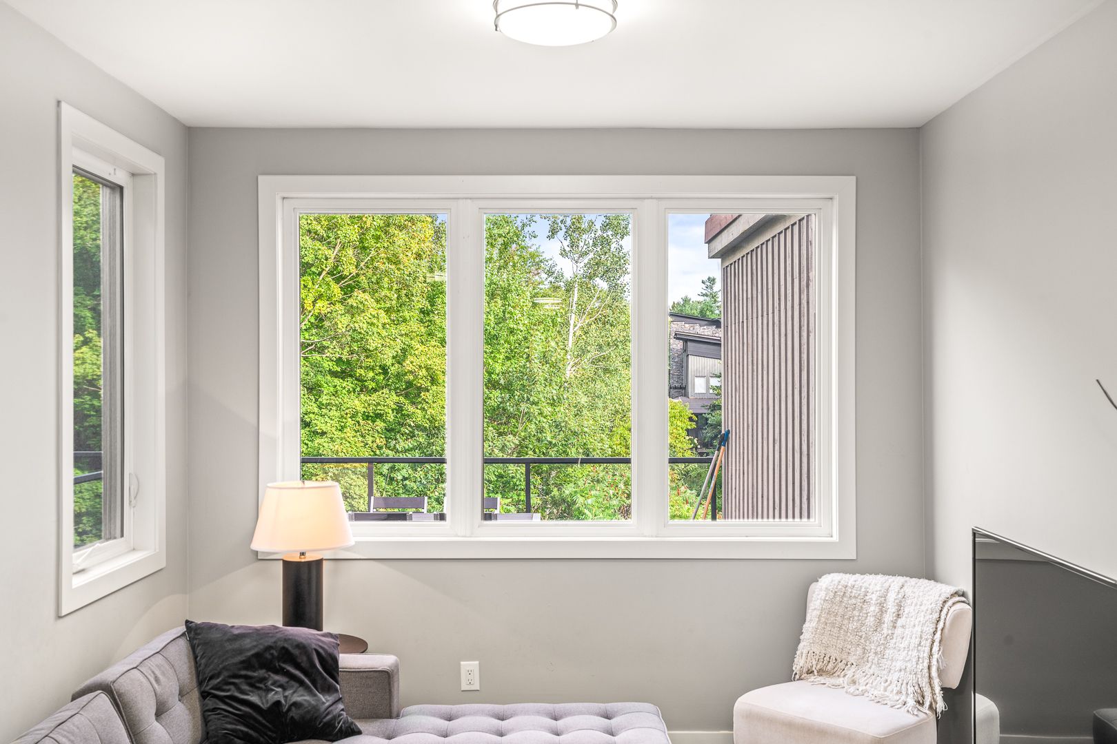 • Four season room and walkout deck overlooking a natural ravine.