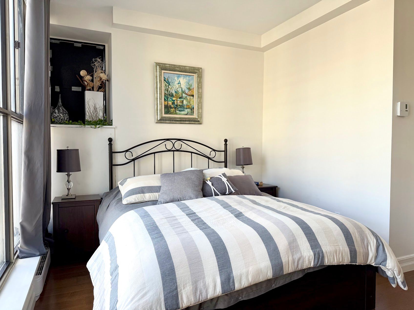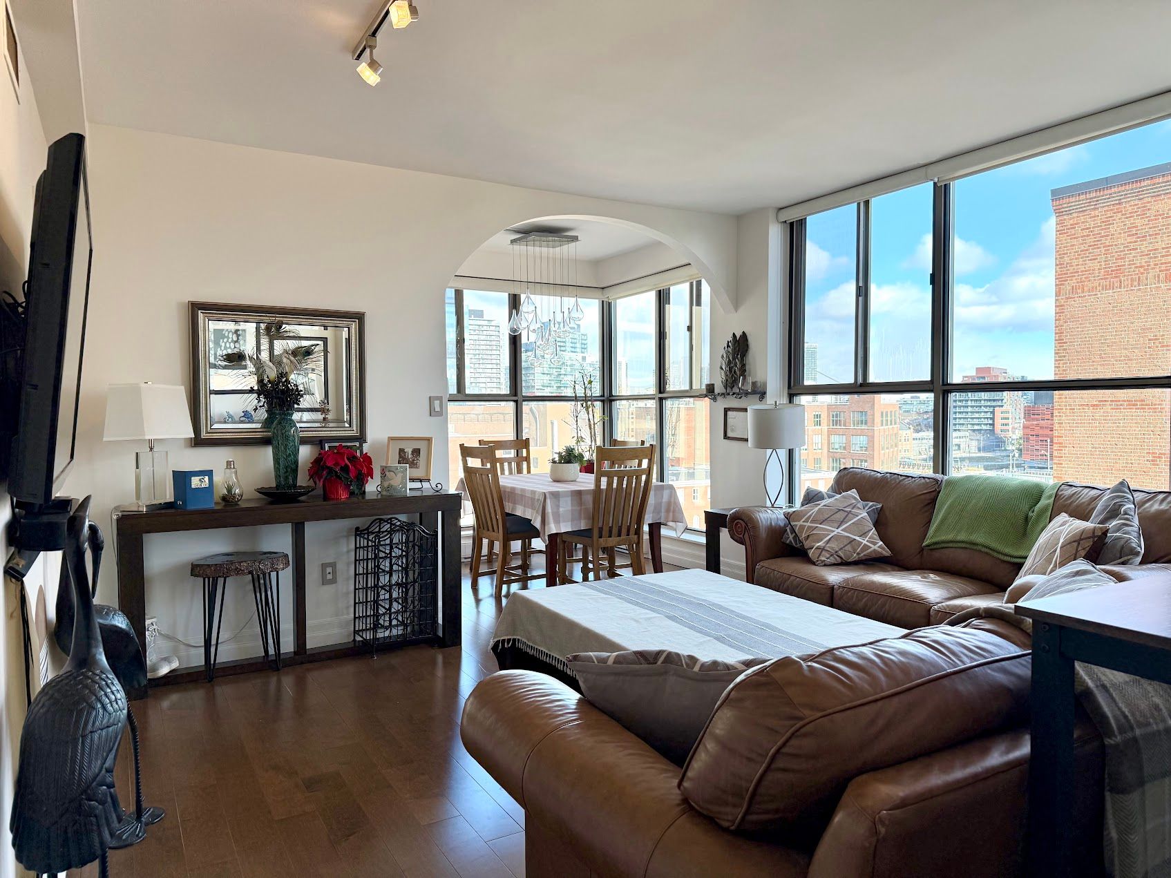 Absolutely gorgeous and large corner 1 bedroom plus den suite. This light filled unit features floor to ceiling windows throughout with incredible north and east city views, including a glimpse of the lake. The layout is open and airy. The primary bedroom comfortably fits a king size bed and has large windows bringing in natural light all day. The den is perfect for a home office or dining room. Walk in closet, and additional storage room allows for ample amount of space to store all your belongings. Amazing location in the heart of the st lawrence market area. Steps from the action, yet tucked away enough to enjoy peace and quiet with views of the park. Walk to st lawrence market, the distillery district, sugar beach, grocery stores, shops, restaurants, and the financial district. Ttc at your door. Easy access to the gardiner and dvp. Fantastic community centre next door. The building is well managed with great amenities including an indoor pool, 24 hour concierge, and a rooftop terrace. This is a must see suite. Parking and locker included.