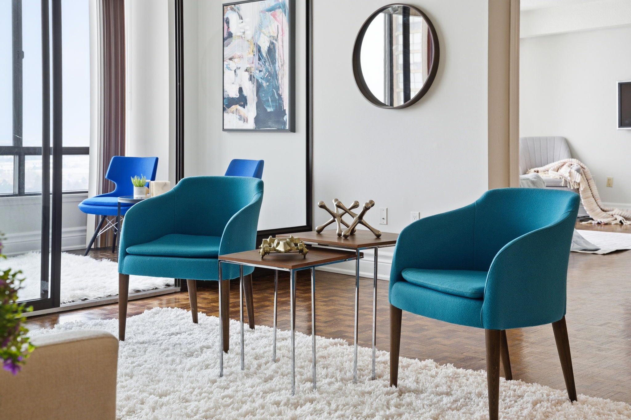 • Luxurious amenities include indoor/outdoor pools, gym, and party room.