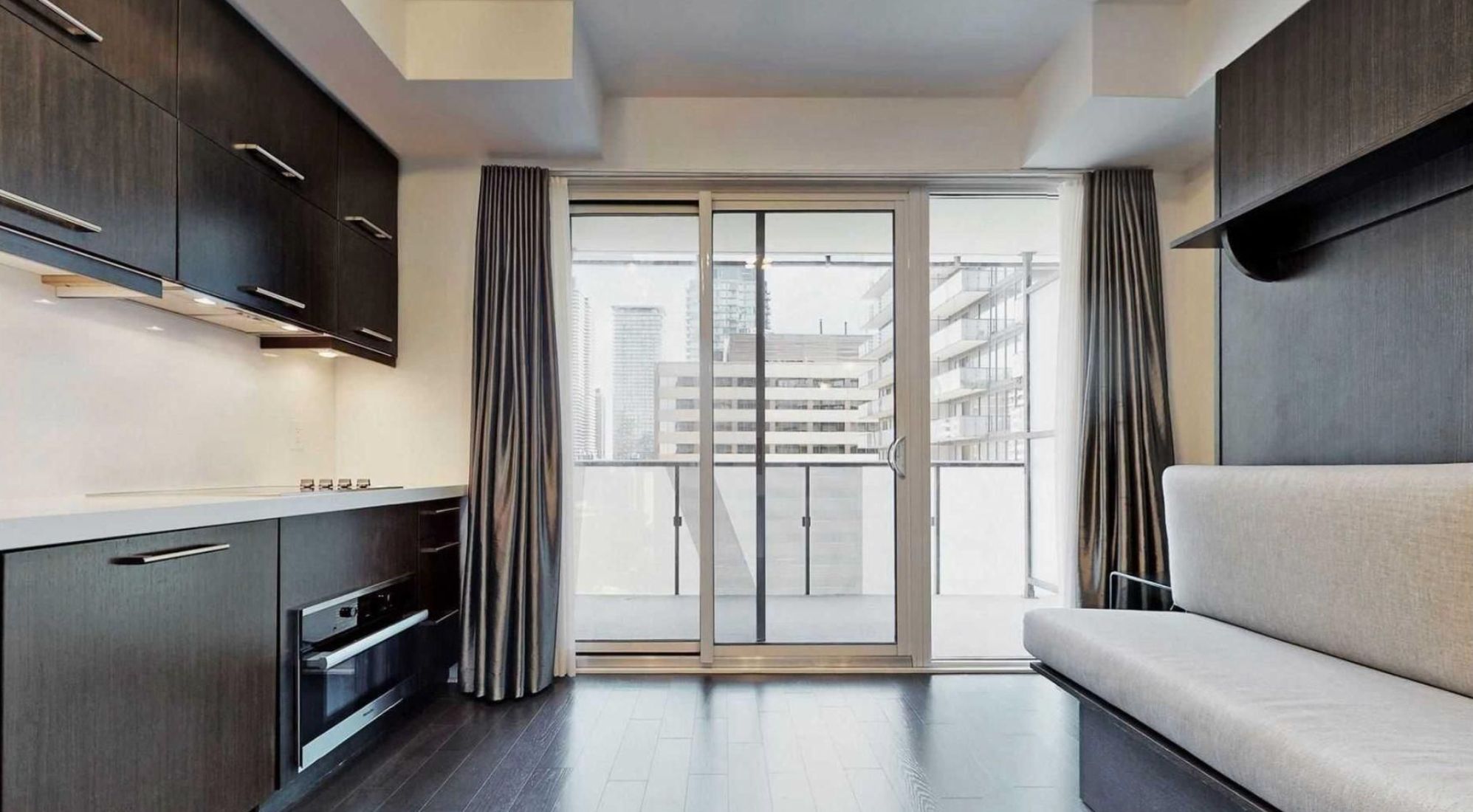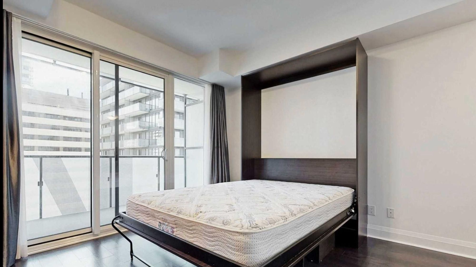 Welcome to the gorgeous u condo building! Upscale living at its finest. Partially furnished spacious studio with built-in murphy bed & walk-out to balcony with absolutely fabulous views. This is a bachelor unit with a walkout balcony & unreal views. This unit will be professionally cleaned prior to tenant possession fully upgraded throughout with gourmet kitchen & hardwood floors. Steps to the "good life" at bay and bloor with fabulous restaurants, shops, art galleries.