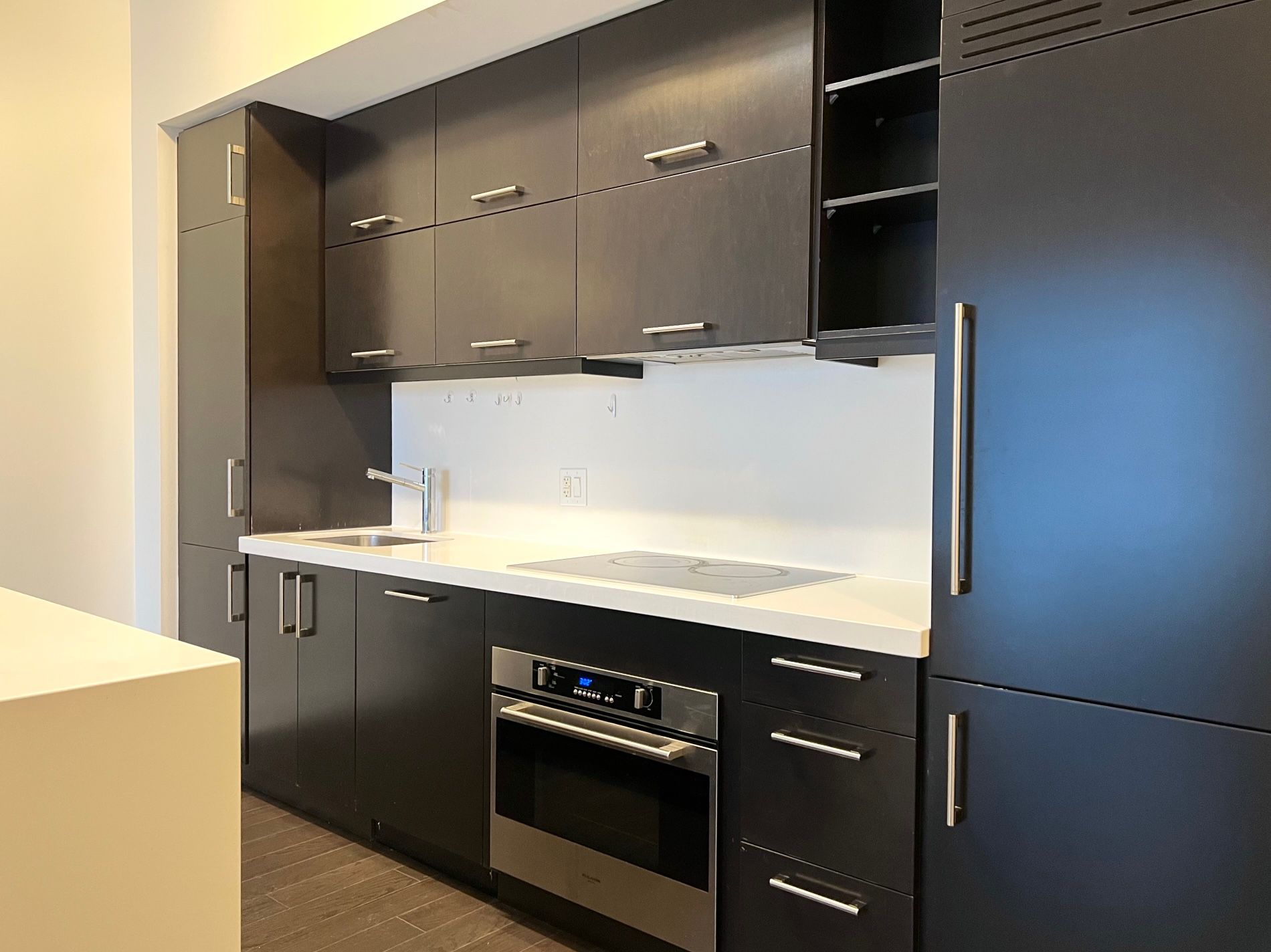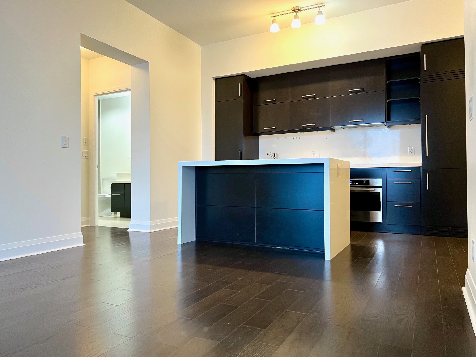 • Open-concept living area with a large kitchen island and premium appliances.
