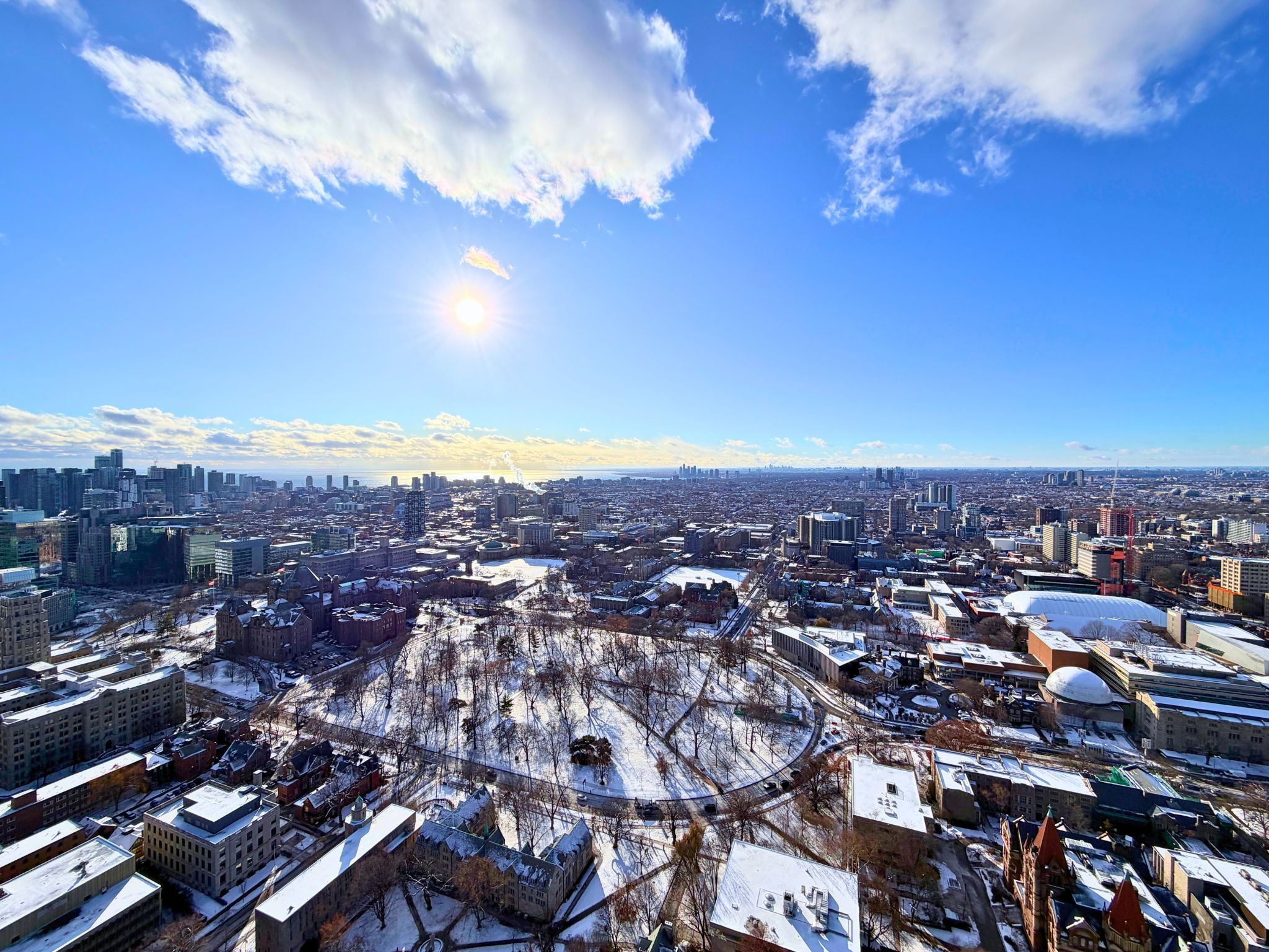Bright, refined penthouse living in the heart of the bay corridor. This thoughtfully designed 2+1 bedroom suite offers two full bathrooms, two balconies, two parking spaces, and a locker, an increasingly rare find downtown. The open-concept living and dining area is flooded with natural light and framed by unobstructed views that span the university of toronto and extend all the way to the lake. The kitchen overlooks the main living space and provides excellent flow for both daily living and entertaining, with ample room for a full-sized dining table and comfortable seating. The primary bedroom enjoys sweeping city views, a walk-in closet, and a well-appointed ensuite featuring a separate shower and soaker tub. The second bedroom is set apart near the entry for added privacy and convenient access to the second bathroom. A large, bright den offers outstanding flexibility and can easily function as a home office, guest room, family room, or additional dining area. Step onto the expansive balcony that runs the length of the suite and take in peaceful sunrise views over the city. Located steps from the university of toronto, the rom, yorkville, subway access, and everyday shopping. Exceptional walkability with a walk score of 99, ttc score of 93, and bike score of 95. A rare penthouse opportunity in one of downtown toronto's most walkable and established neighbourhoods.