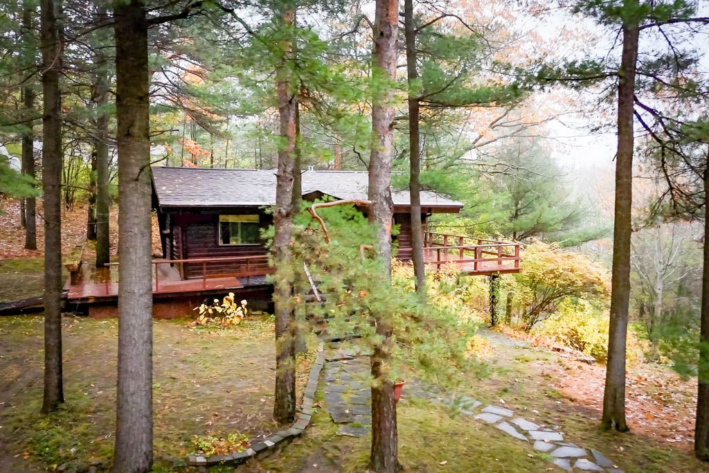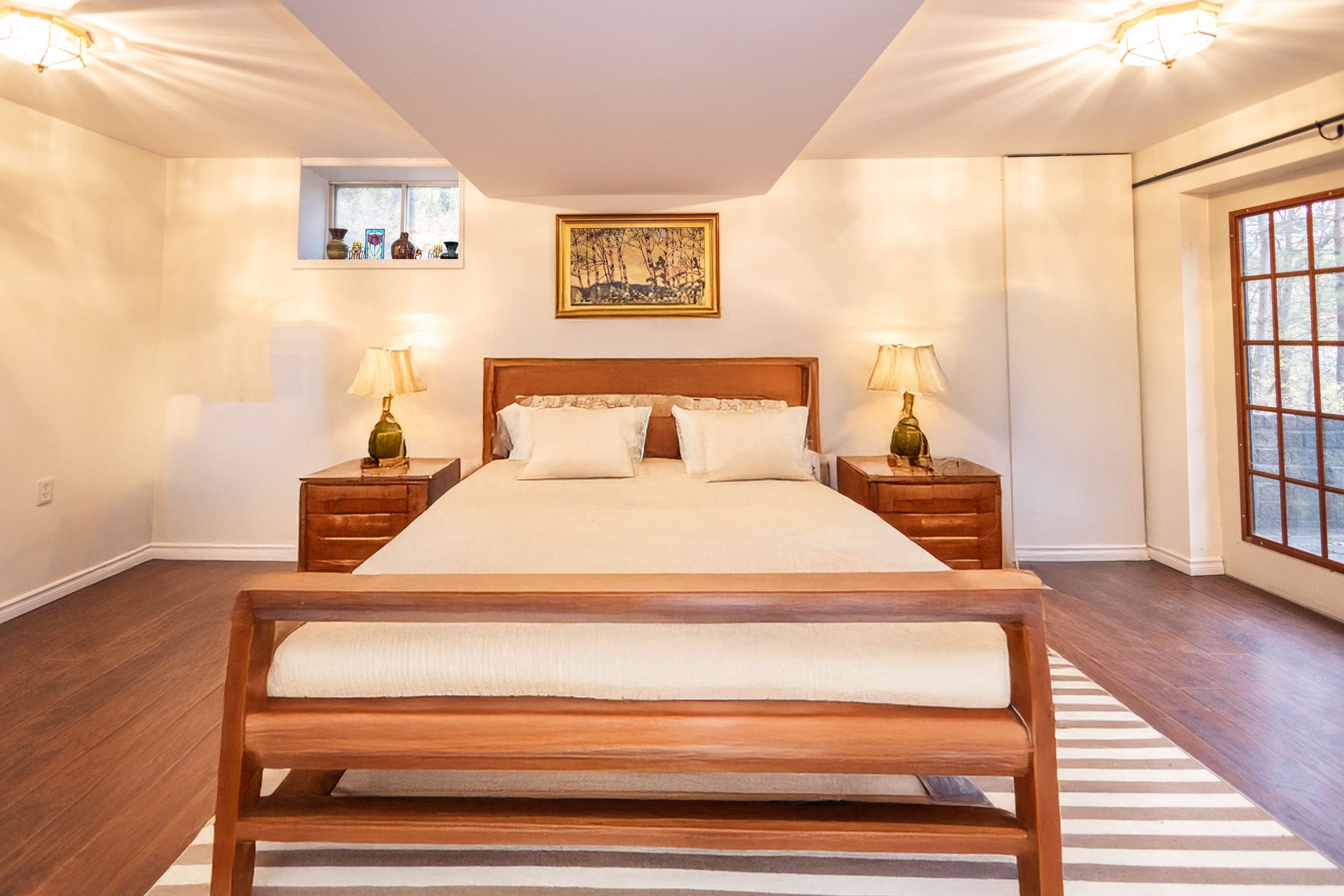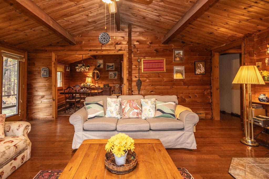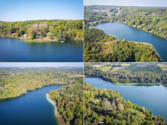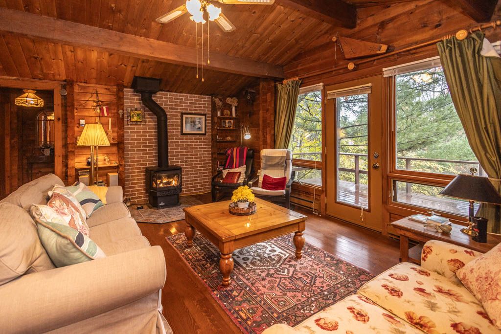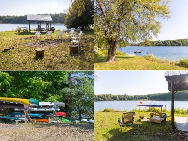 Escape the hustle & discover your perfect getaway at 65 sumac lane, a truly unique 3+1 bedroom, 2 full-bathroom residence nestled on nearly 1 acre of peaceful seclusion, yet just 40 minutes from midtown toronto. This charming 1976 pan abode cedar log bungalow offers 1,558 sqft of distinctive finished living space, blending rustic charm with modern convenience. The main floor welcomes you with a bright, open-concept layout featuring stunning vaulted ceilings throughout the living room, dining room, & updated kitchen. The living area is centred around a cozy, standalone propane fireplace & boasts hardwood floors & 2 convenient walkouts leading to a south-facing deck. The updated kitchen features an attractive picture window & the 2 main-floor bedrooms offer dedicated closets & vaulted ceilings. An updated 4-piece bathroom with a soaker tub & vaulted ceiling complete the main level. A beautiful wooden staircase descends to the walk-out basement, where the spacious rec room (which could serve as a primary bedroom) awaits, featuring laminate flooring, 8-ft ceilings, & triple doors opening to a stone patio. This lower level includes a large, updated 3-pc bathroom & a laundry room, along with a functional workshop storage area. One of the most valuable features is deeded access to a stunning, private, sandy beach on chalk lake, a 350m walk away. This exclusive, clear-water kettle lake is perfect for swimming, kayaking, & paddleboarding. You'll enjoy the best of both worlds with a private lakeside lifestyle & the convenience of being 5 minutes from hwy 407. With a quick 3-5 min drive to 2 ski resorts, endless trails for hiking & biking in uxbridge, the trail capital of canada. Close to top-tier golf courses, equestrian attractions & great restaurants like slabtown cider & nest, this isn't just a home; it's a new way of life. Don't miss this rare opportunity to own a captivating cedar log residence & embrace a new way of life in the woods with exclusive private lake access.