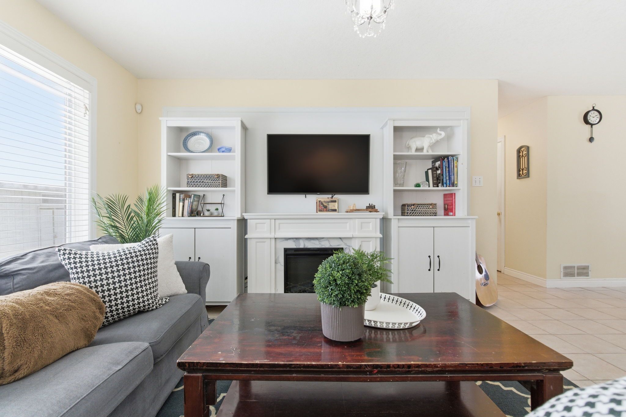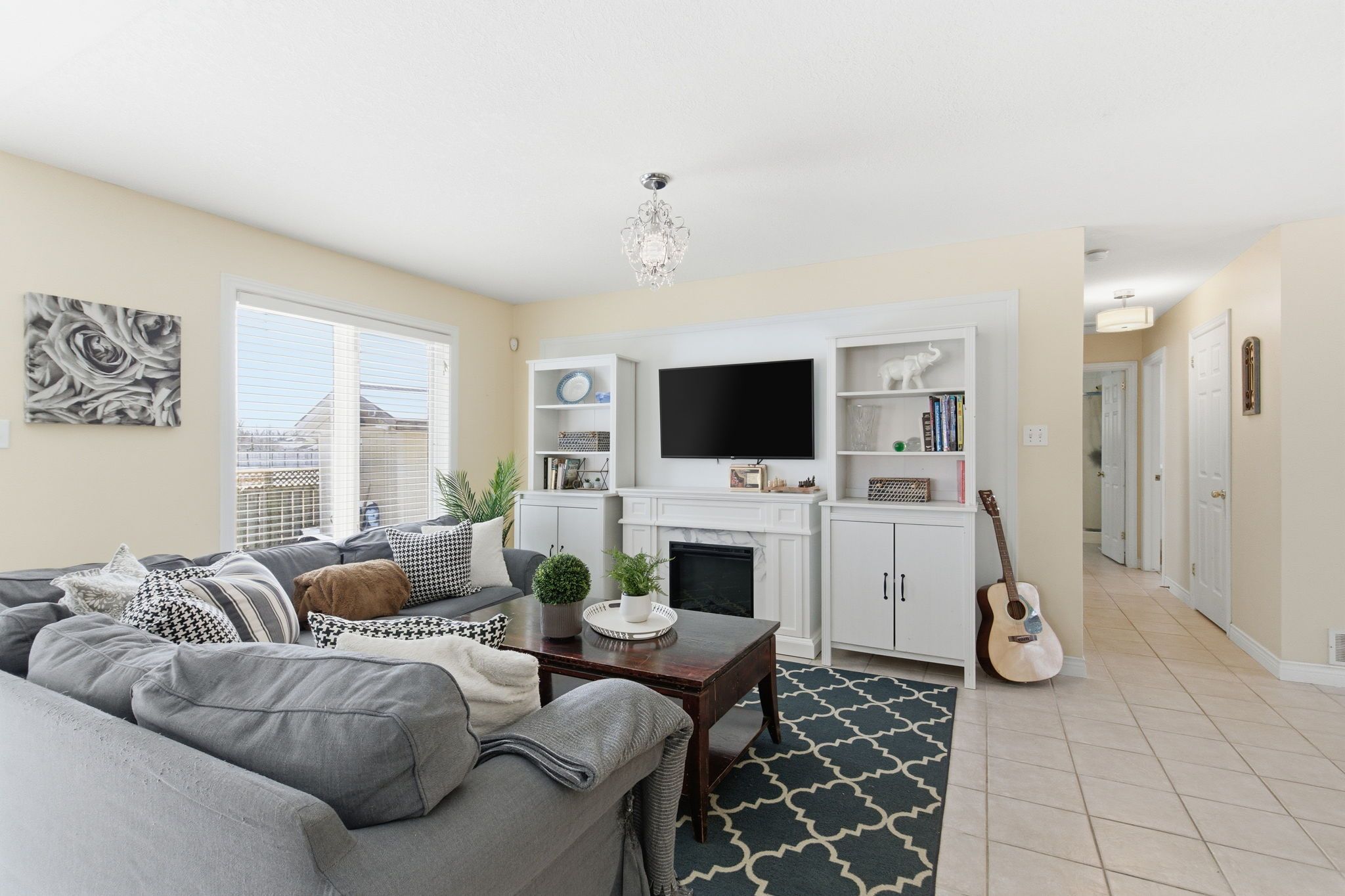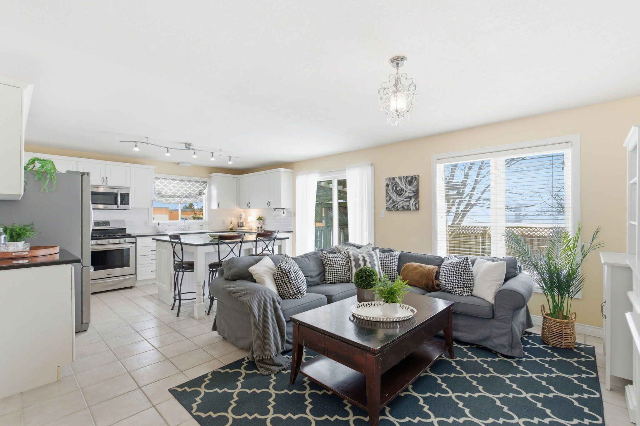 Welcome to this well-maintained 1,400 sq ft bungalow, built in 1998 and thoughtfully laid out for practical everyday living. A spacious foyer leads into a bright living room that sets the tone with warmth and natural flow, followed by a formal dining area well suited for family meals or hosting with ease. The updated kitchen impresses with white shaker cabinets, sleek black granite countertops and a breakfast bar island overlooking the family room, while sliding doors open to the backyard, making outdoor enjoyment feel like a natural extension of the home. The main floor offers a comfortable bedroom, a full bath with ensuite privilege, a generous primary suite with walk in closet and a convenient powder room for guests. Inside entry from the double car garage sits just off the front hall near storage and pantry space, keeping daily routines efficient. The finished lower level enhances the living area with a spacious recreation zone, two additional well sized bedrooms, a full four-piece bath and abundant storage, providing room for relaxation, extended family, play, fitness or quiet retreat. With a driveway accommodating two extra vehicles and a location just moments from an elementary school, parks, shopping and key amenities, this property blends comfort, function and location in a welcoming package that is easy to feel at home in. Rsa.