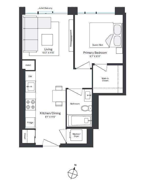 • In-suite washer and dryer along with stainless steel appliances included.