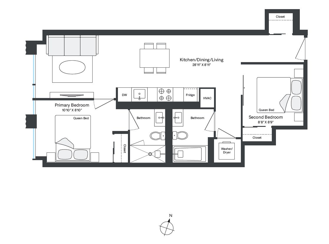 • Brand new 2 bed, 2 bath suite with premium finishes and appliances.