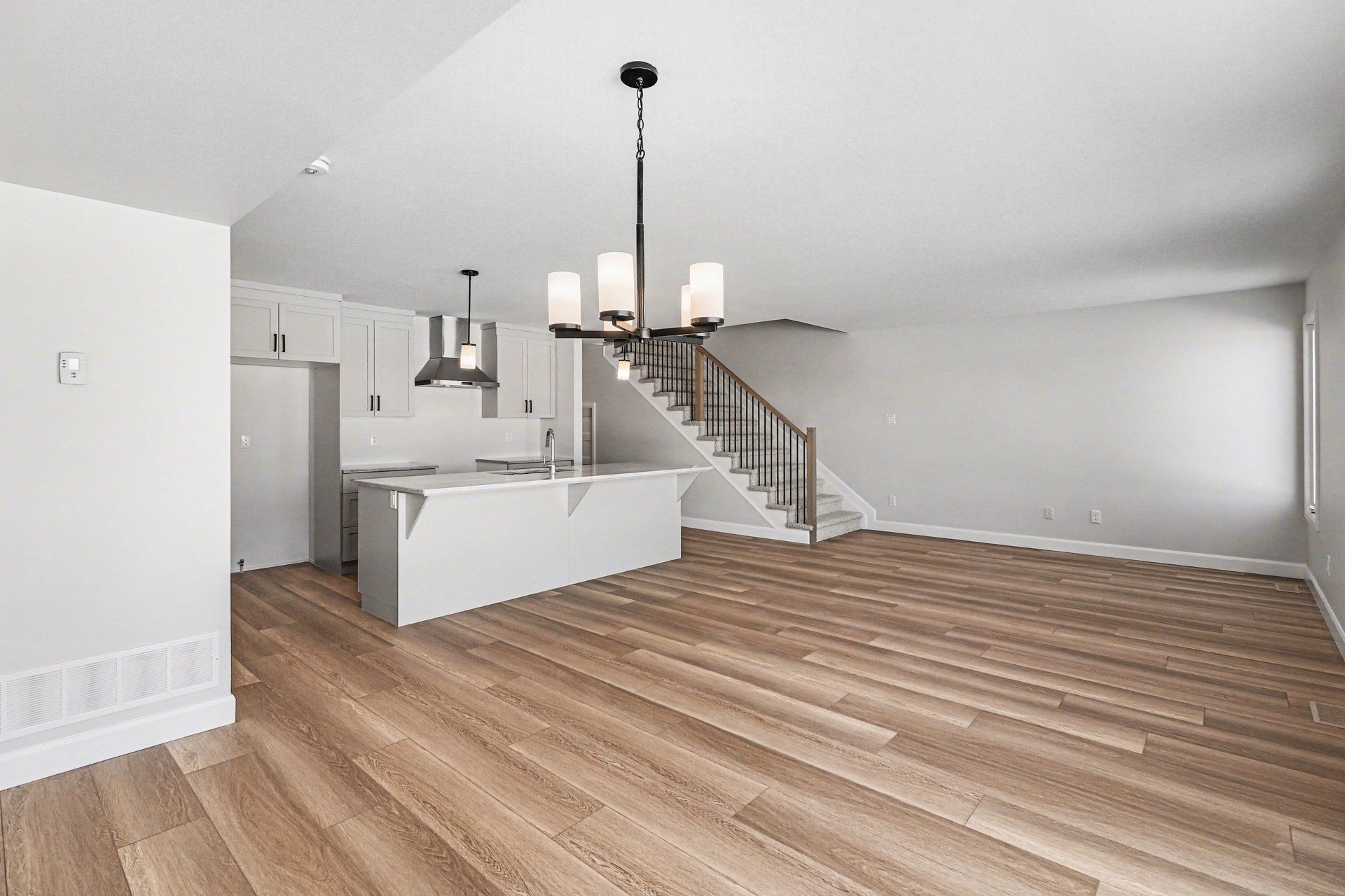 Beautiful modern property built by trusted local builder. Gorgeous semi detached 2 storey with approximately 1761sq/ft of living space, 3 beds & 3 baths and a massive double car garage to provide plenty of room for your vehicles and country toys. The main floor has an open concept layout with quartz counters in your spacious kitchen, a large 9ft island with breakfast bar, ample cabinets & a large kitchen walk-in pantry. Luxury vinyl floors throughout the entry way, living room, dining room, kitchen, bathroom & hallway. Plush carpeting leads you upstairs into the bedrooms. Primary bedroom offers a spacious walk-in closet & a 3pc ensuite bath. 2nd/3rdbedrooms are also spacious with ample closet space in each. Full bathroom & laundry room on second floor. No appliances or ac included. Site plan, floorplan, feat. & specs/upgrades attached!