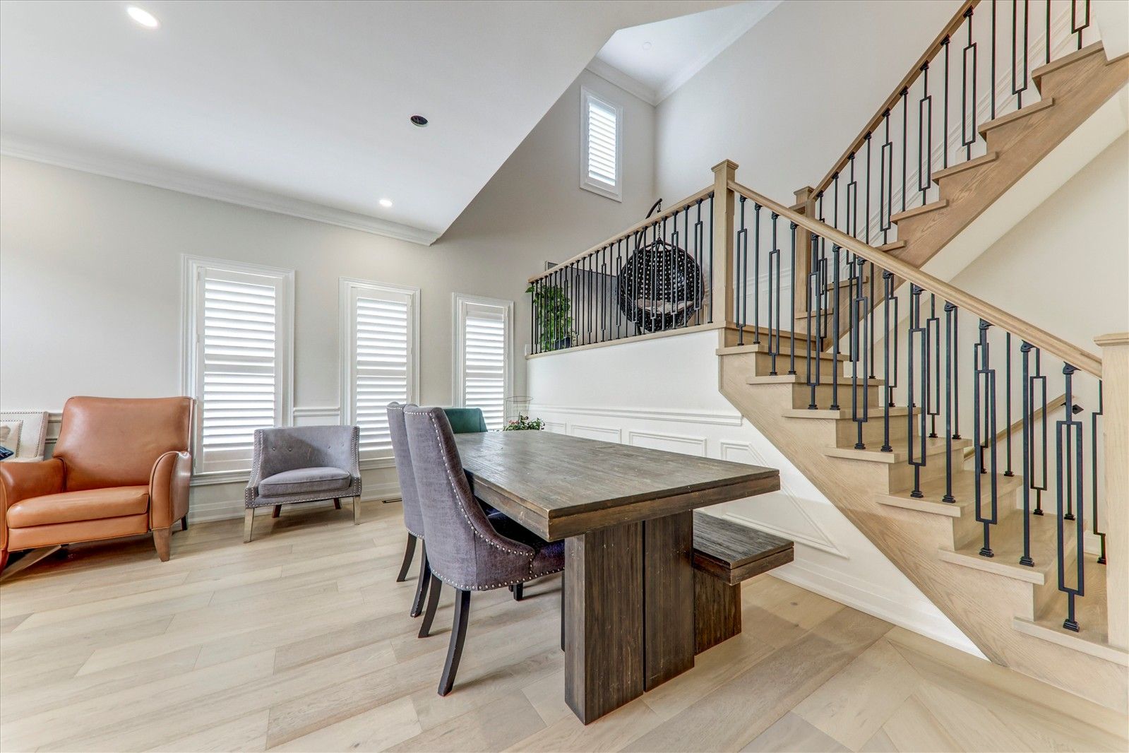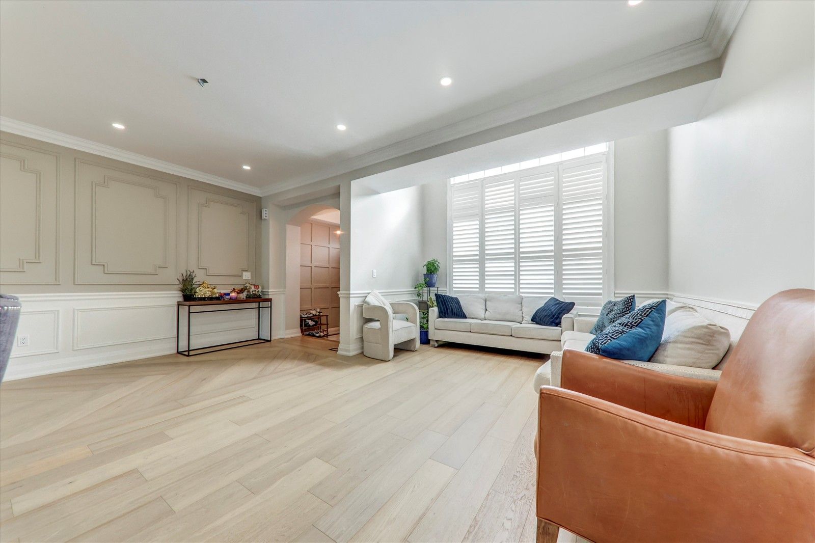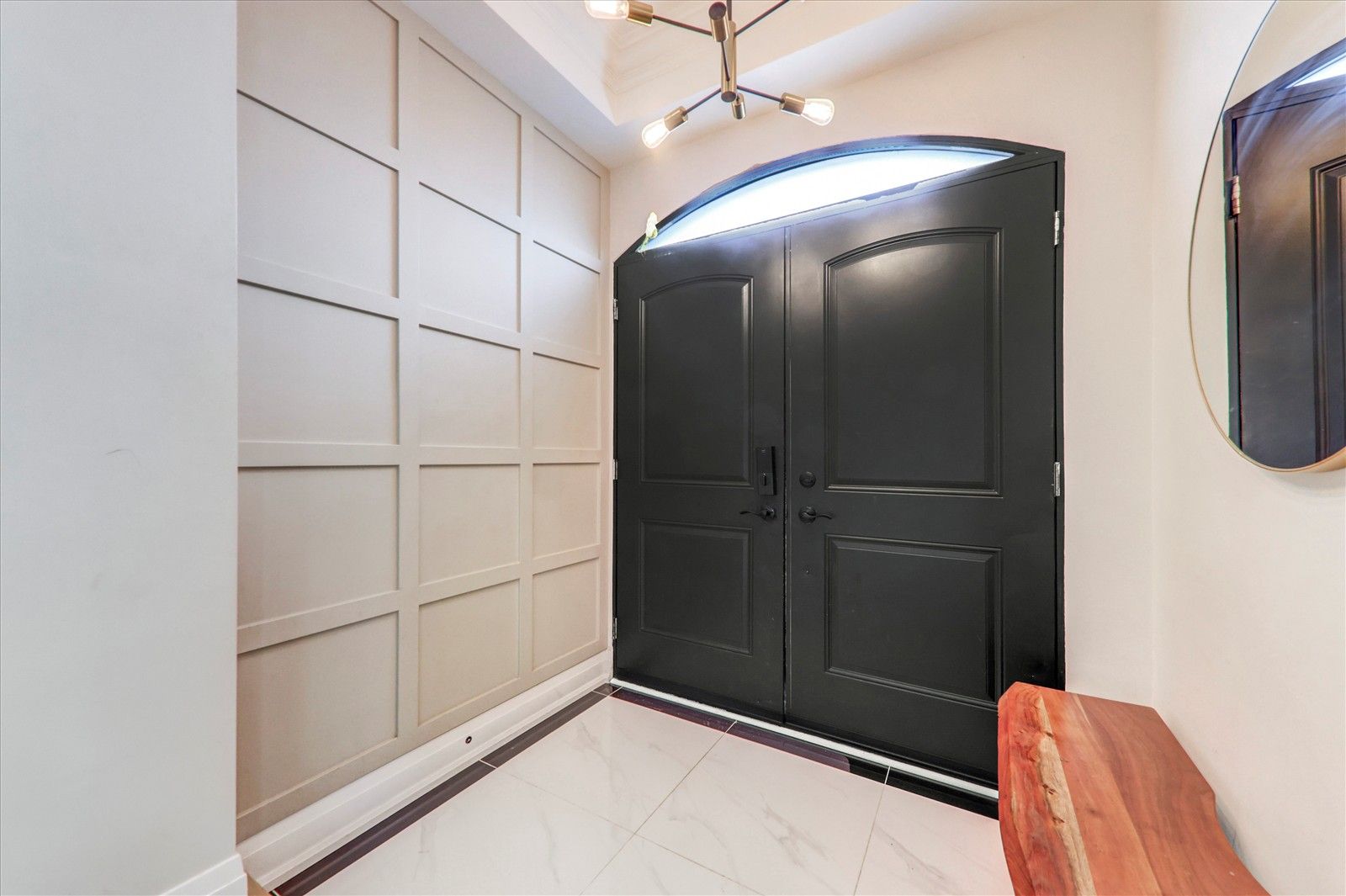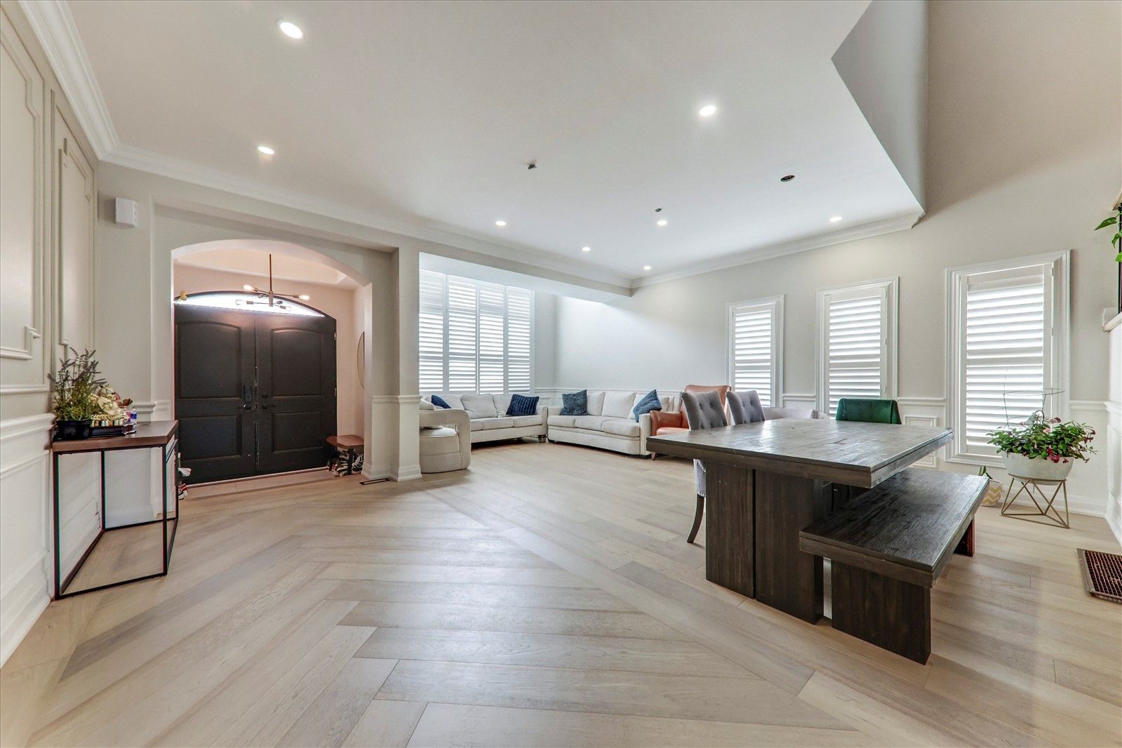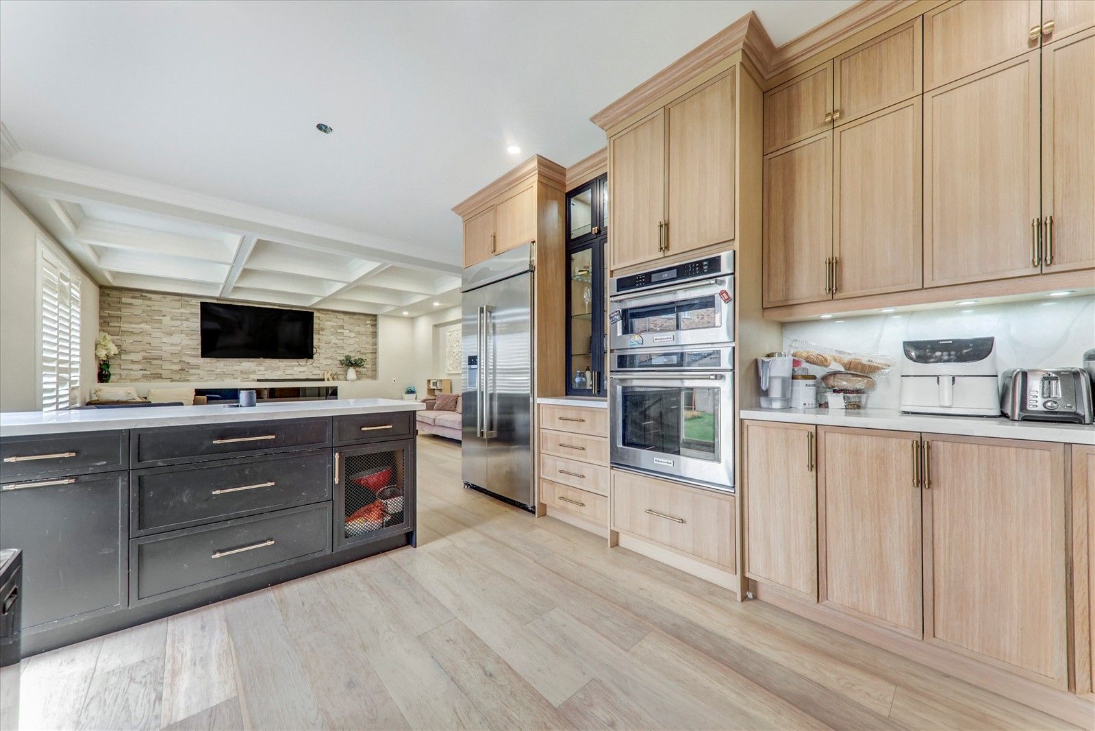 • Modern kitchen with custom cabinetry and stainless steel appliances.