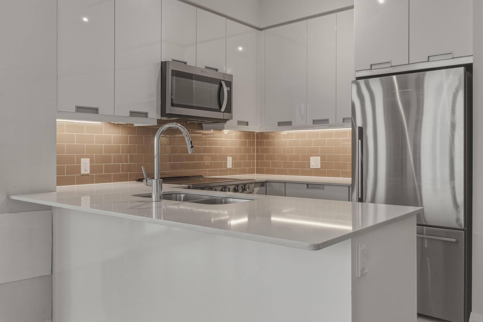 • Modern kitchen with stainless steel appliances and sleek cabinetry.