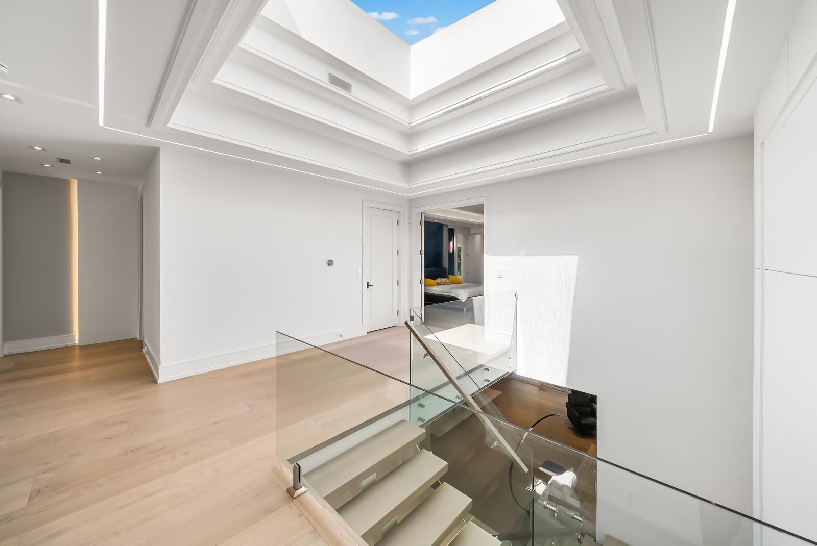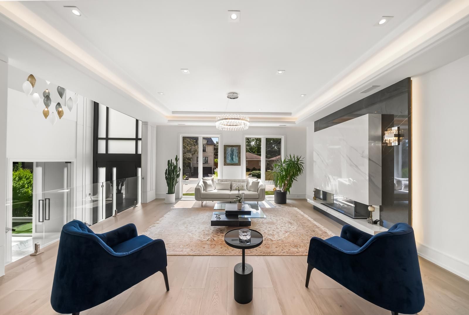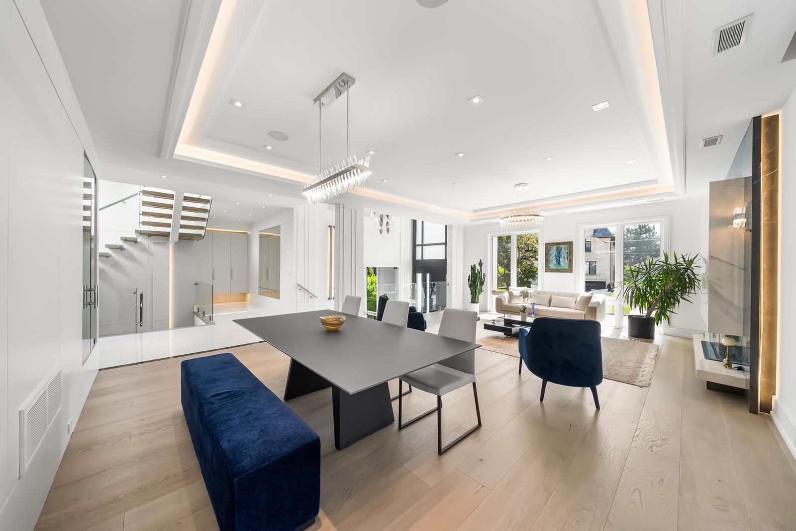 • Spacious foyer with Smart Privacy Glass and a stunning custom chandelier.