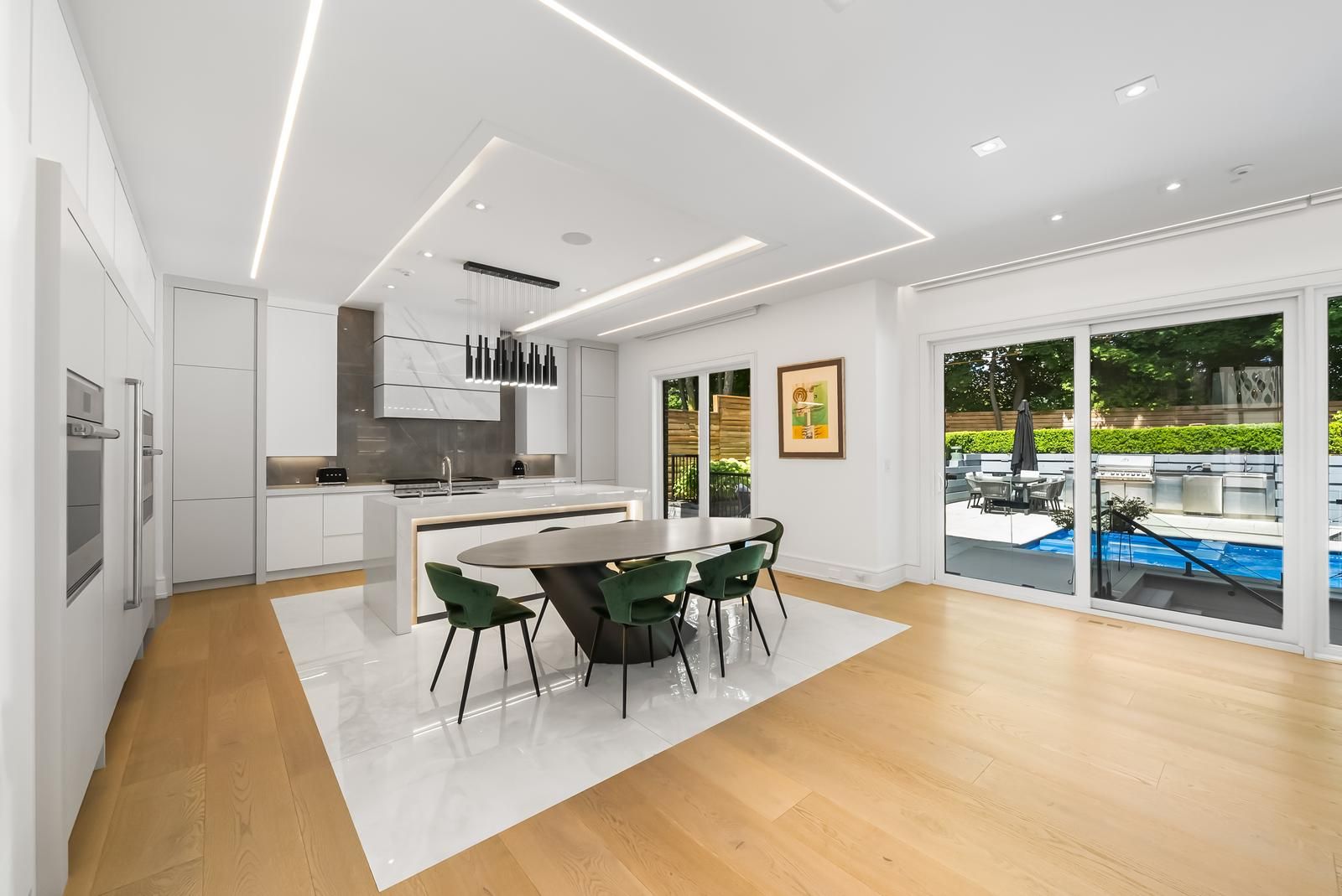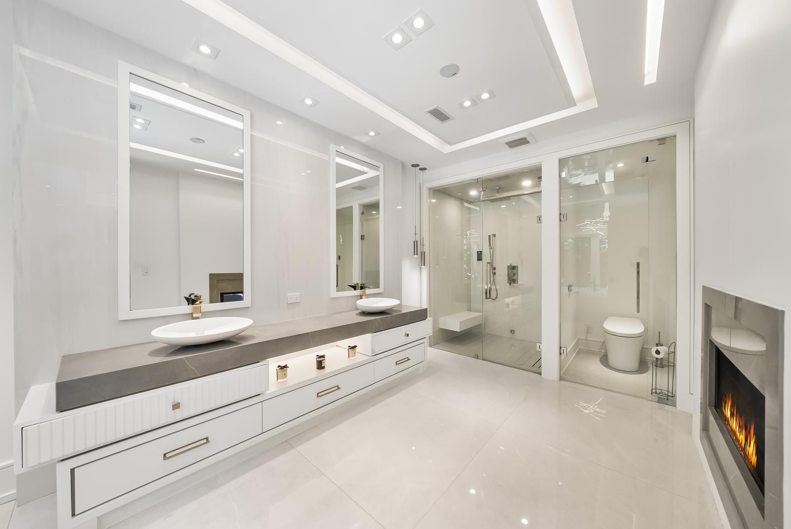 65 whittaker crescent - a striking architectural residence on one of bayview village's most prestigious crescents, defined by scale, advanced systems, and refined craftsmanship. A heated driveway leads to a bold contemporary façade. Inside, a 23-ft foyer showcases smart privacy glass and a custom designer chandelier. Soaring ceilings define the principal rooms, including a 14-ft paneled office and an 11-ft walk-out lower level. The chef's kitchen features sub-zero & wolf appliances with a fully enclosed secondary prep kitchen. Book-matched slab fireplaces anchor the living spaces with clean architectural precision. The saltwater pool with integrated hot tub and badu jet system delivers resort luxury and performance capability. A full outdoor kitchen and front and rear irrigation systems complete the landscaped grounds. A 4-stop elevator connects all levels. Each bedroom includes a private ensuite. The primary suite offers a 6-piece spa bath with steam sauna and skylit dressing room. The walk-out lower level features radiant heated basement floors, a professional gym, wet bar, recreation area, and private guest suite. Control4 automation, integrated speakers, dual laundry rooms, heated driveway, and premium mechanical infrastructure throughout. Earl haig ss and bayview ms catchment. Minutes to bayview village and north york general hospital. *walking distance to the subway station* walking distance to parks, ravines, shops, transit, bayview village mall, coffee, amenities, and much more