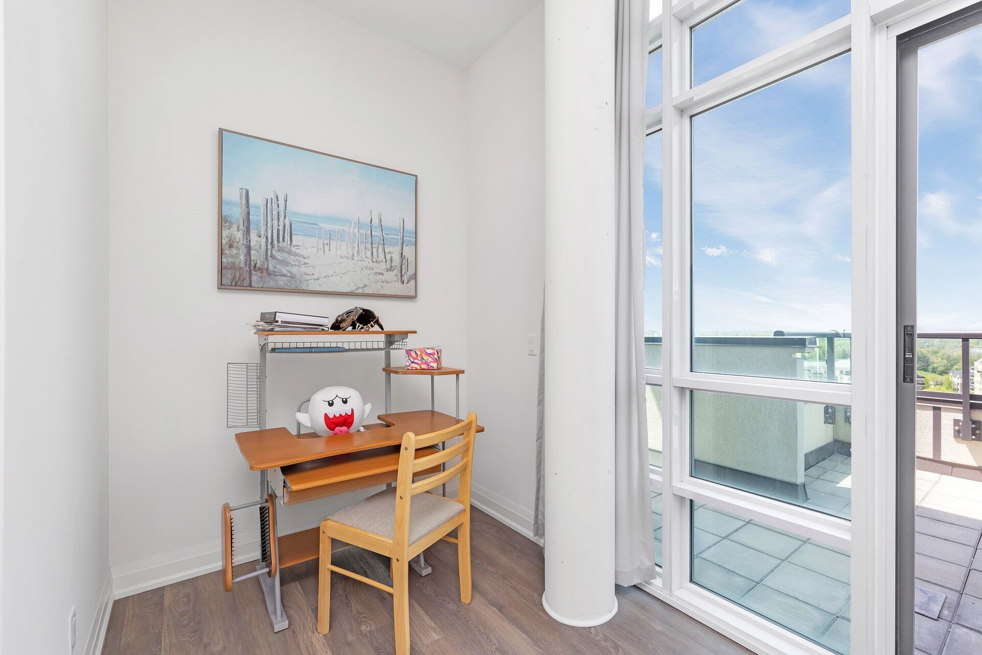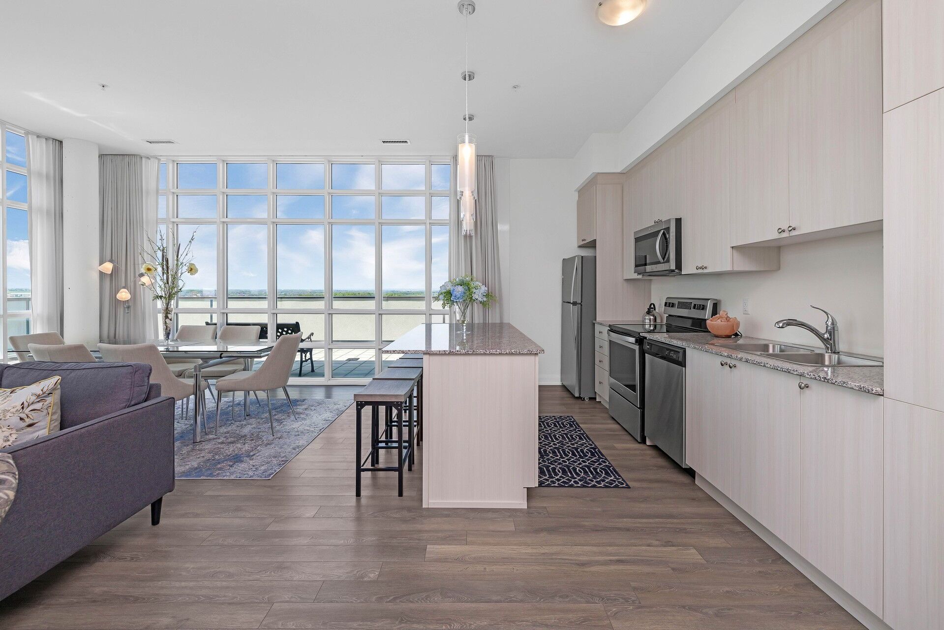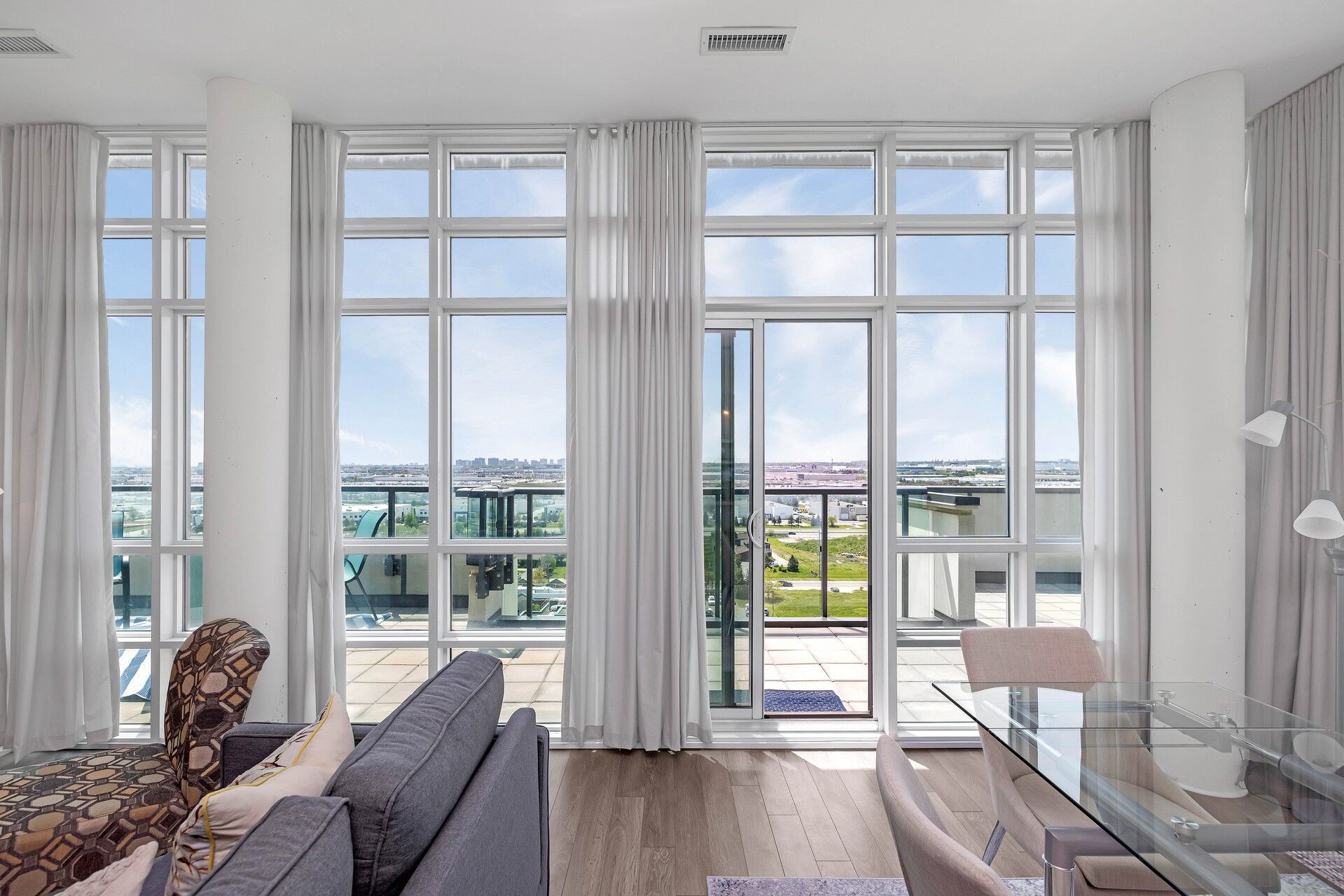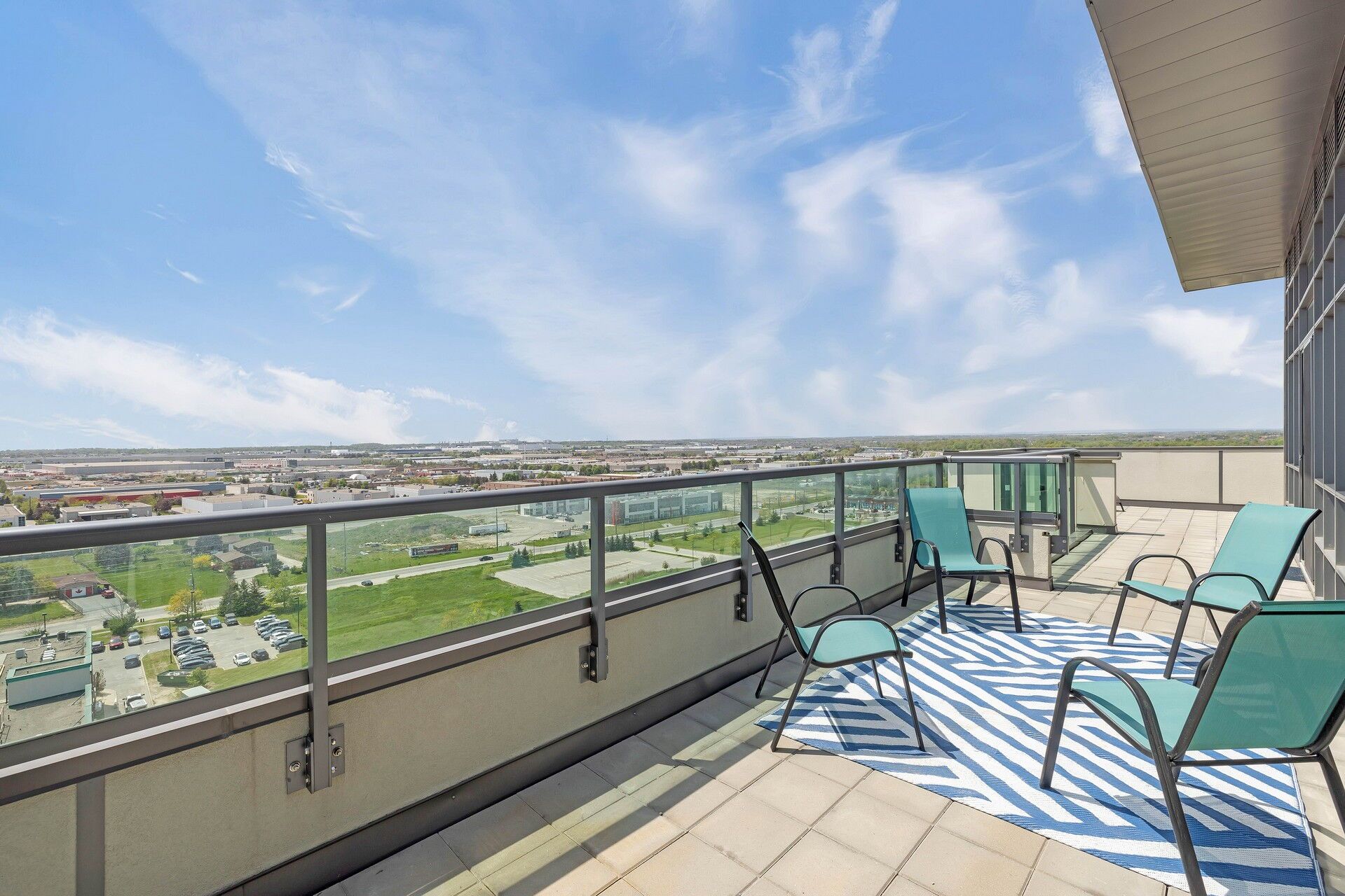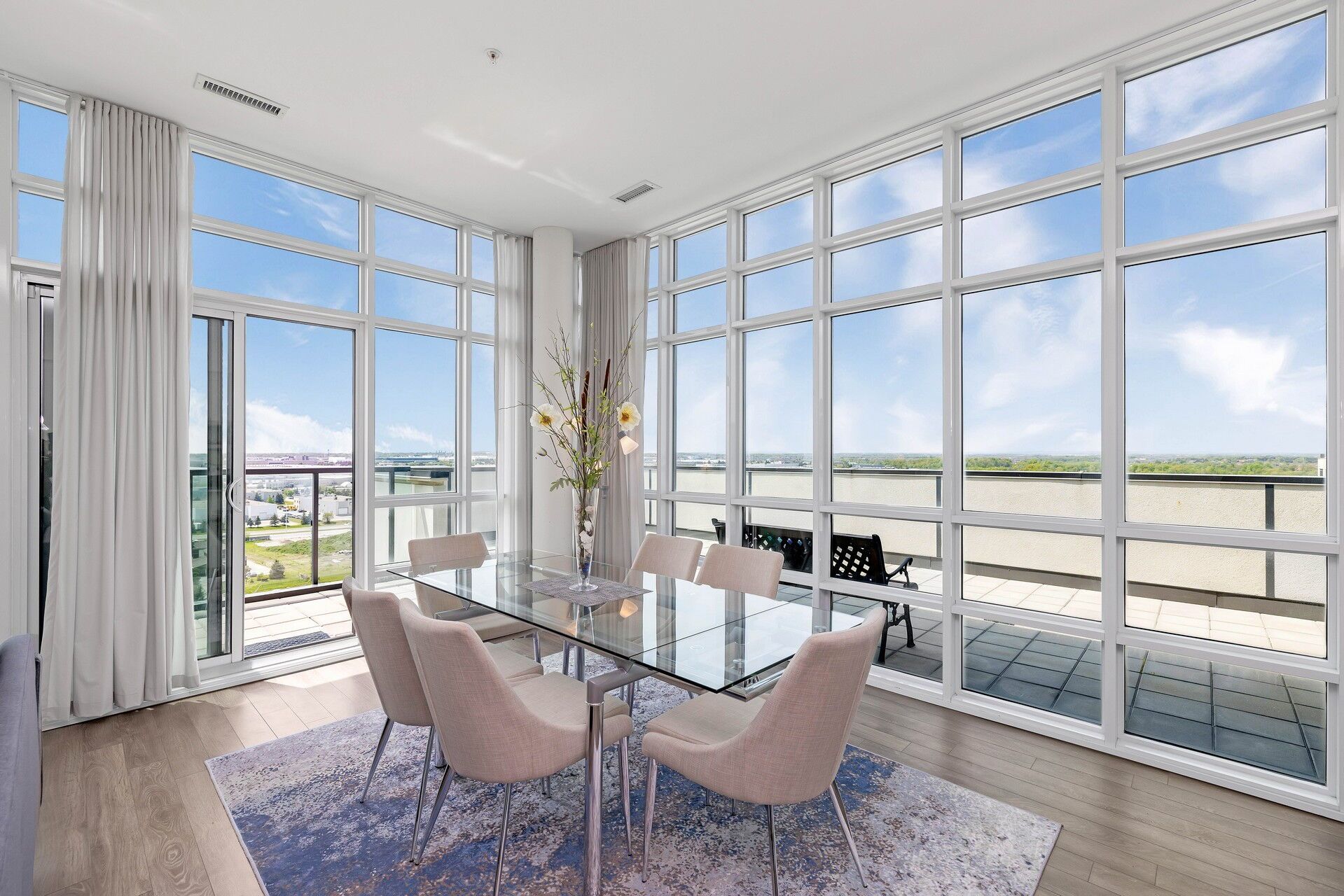 This residence is part of the vellore park development (often associated with the brampton/woodbridge border area) and is known for being one of the few buildings in the region to utilize advanced geothermal technology for its heating and cooling systems positioned on the topmost floor, it offers unobstructed panoramic views and is oriented to capture both sunrise and sunset. It provides direct access to over 800 acres of conservation area (clairville conservation area), which includes trails, a river, and camping spots where no future buildings are permitted. Geothermal technology: a futuristic heating and cooling system that is eco-friendly and rare in brampton. Terrace heating: equipped with a specialized snow-melting system for terrace heating: equipped with a specialized snow-melting system for the terrace, a feature not found in other units in the building. Smart integration: fiber internet and smart wiring throughout all rooms. 9-foot ceilings with a transitional style kitchen and lavish washrooms. Includes a separate 2-bedroom, 2-bathroom guest unit. Features a powder room and two heat pumps (one per split master section). Fascinating lush lobby with 24-hour security. Fitness center (gym), meeting room, and a luxury-style party room with a view. Comprehensive pet facilities, including a pet wash and grooming station. Two private, spacious parking spots allotted next to the elevators. Large storage locker located conveniently next to the elevator. Ample space for guest parking the listing notes the inclusion of a separate 2-bedroom, 2-bathroom guest unit (split master section), which is highly un usual for a standard condo this is one of a kind on the topmost floor and the one and, only building with the latest geothermal technology.