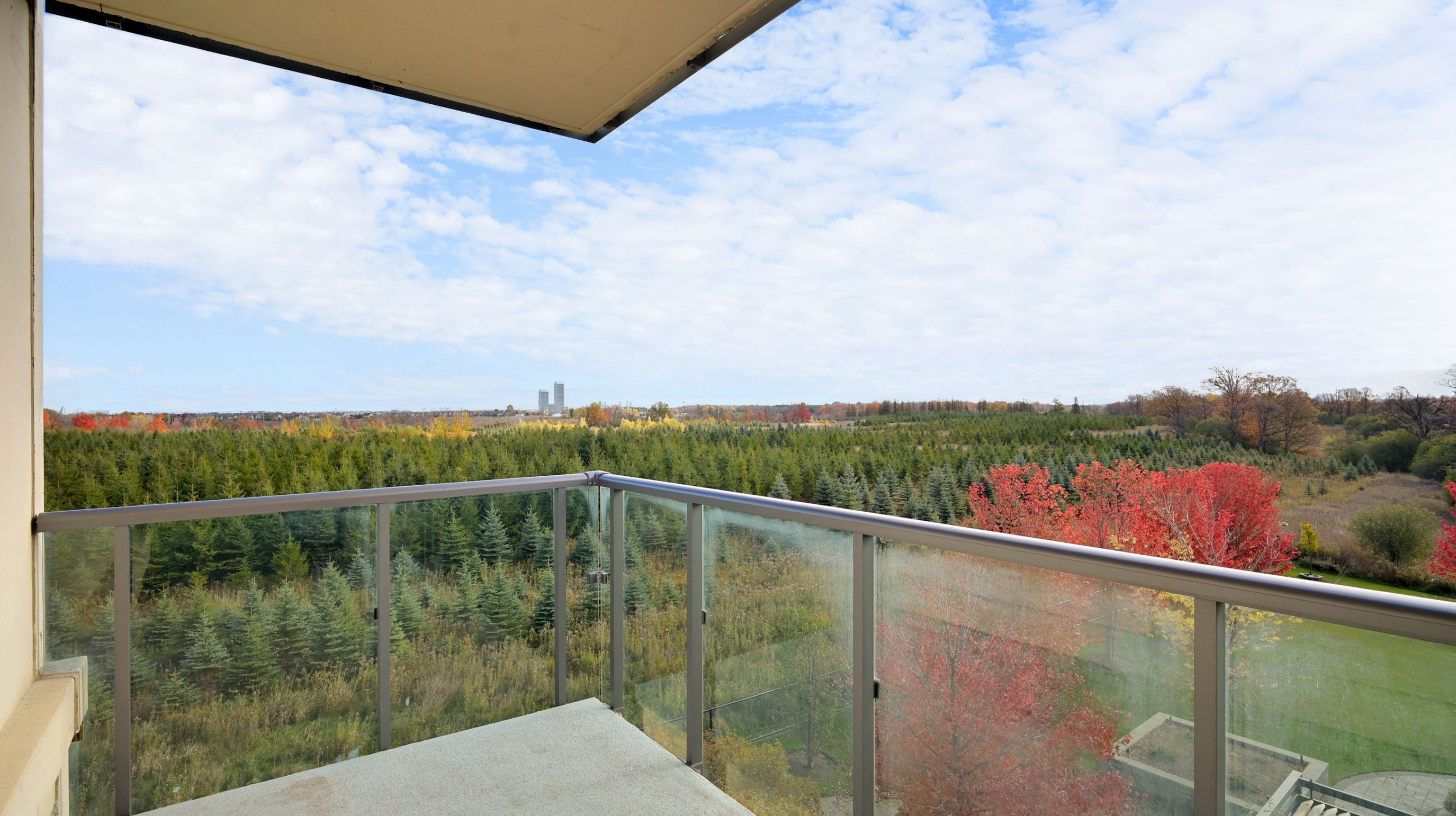 2 bedroom + den open concept corner unit with every window offering views of clairville conservation area. 540 hectares of wetlands, valleys, forests, grasslands, and the west branch of the humber river. The comforts of luxury condo living surrounded by nature. Spacious 1060 sqft condo, large corner terrace with stunning view, of nature, deer, birds and more! Upgraded kitchen with quartz counters and island with bar seating, stainless steel appliances and ceramic backsplash. 9 foot ceilings and lots of light from the expansive windows. Primary bedroom suite offers double his and hers closets and ensuite bath with glass shower. 2nd bedroom is spacious with lots of closet space, and a great view! Ensuite laundry room with storage, and a locker down by the underground parking space. The building is located close to bramalea go station, with easy access to highways 7,407,410 and 427 and near parks, trails, transit, major highways, and all essential amenities. Walk to bus stop and school bus pick up and drop off. Building offers 2 fitness centres, 2 party rooms, pet spa, visitor parking and outdoor bbq area