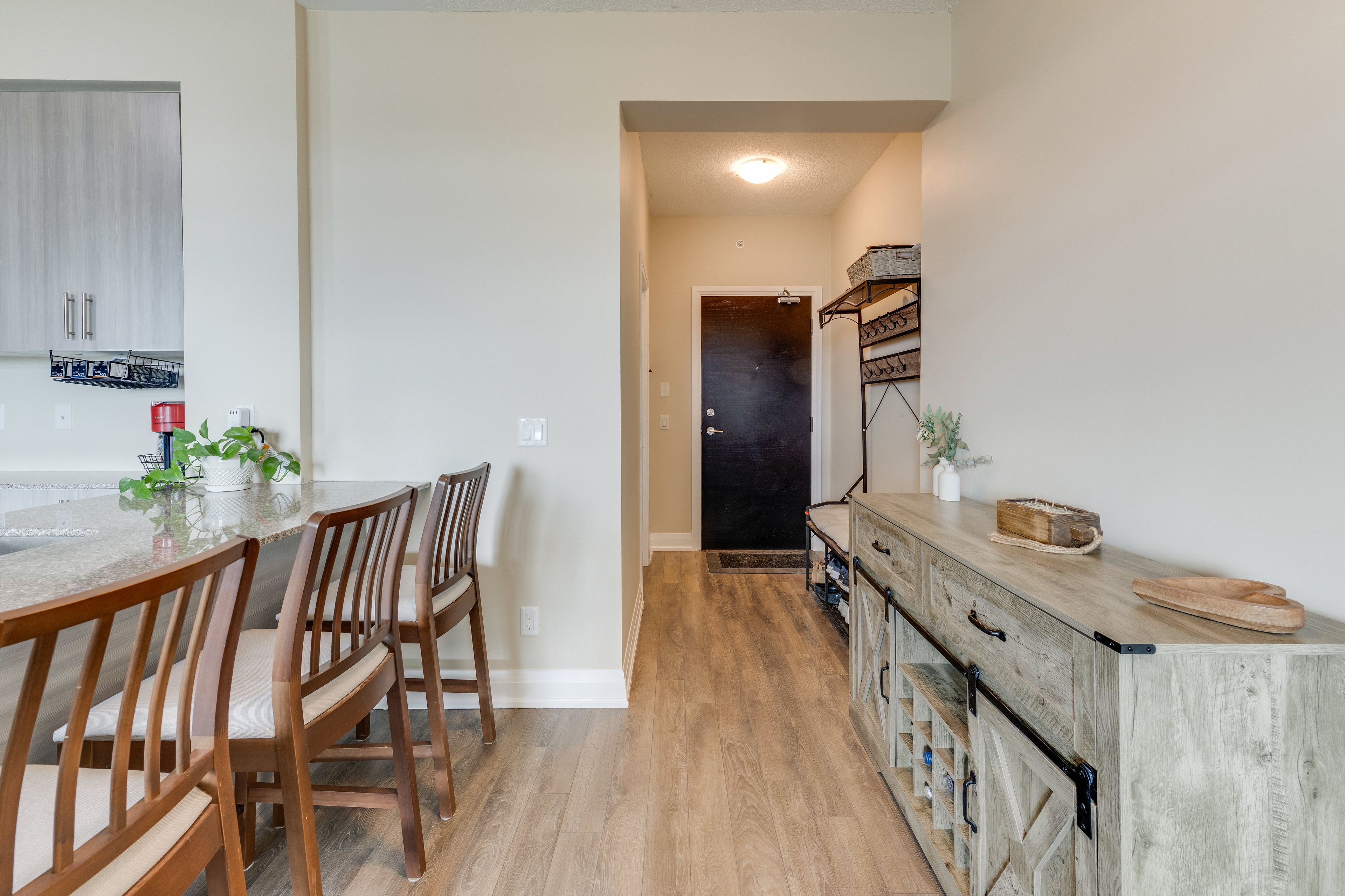 If you're looking for a condo that checks all the boxes, this is it! Bright, spacious, and thoughtfully designed, this 2-bed, 2-bath unit offers an open-concept layout with features you don't often find all in one place. Overlooking the living space, the impressive kitchen features quartz counters, full-size appliances, ample storage, and a 4-seat peninsula perfect for weeknight meals. Both bedrooms are well-sized, the primary with an ensuite and the second with a walk-in closet. Enjoy beautiful views of claireville conservation area from every room. Not to mention the oversized balcony, large enough for a full 4-person dining table and separate lounge. The generous walk-in laundry room, two underground parking spaces and two lockers (a rarity in the building) provide added everyday convenience. With a seamless blend of space, storage and serene views, this is condo living done right.