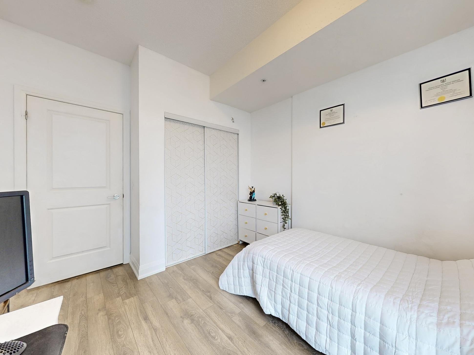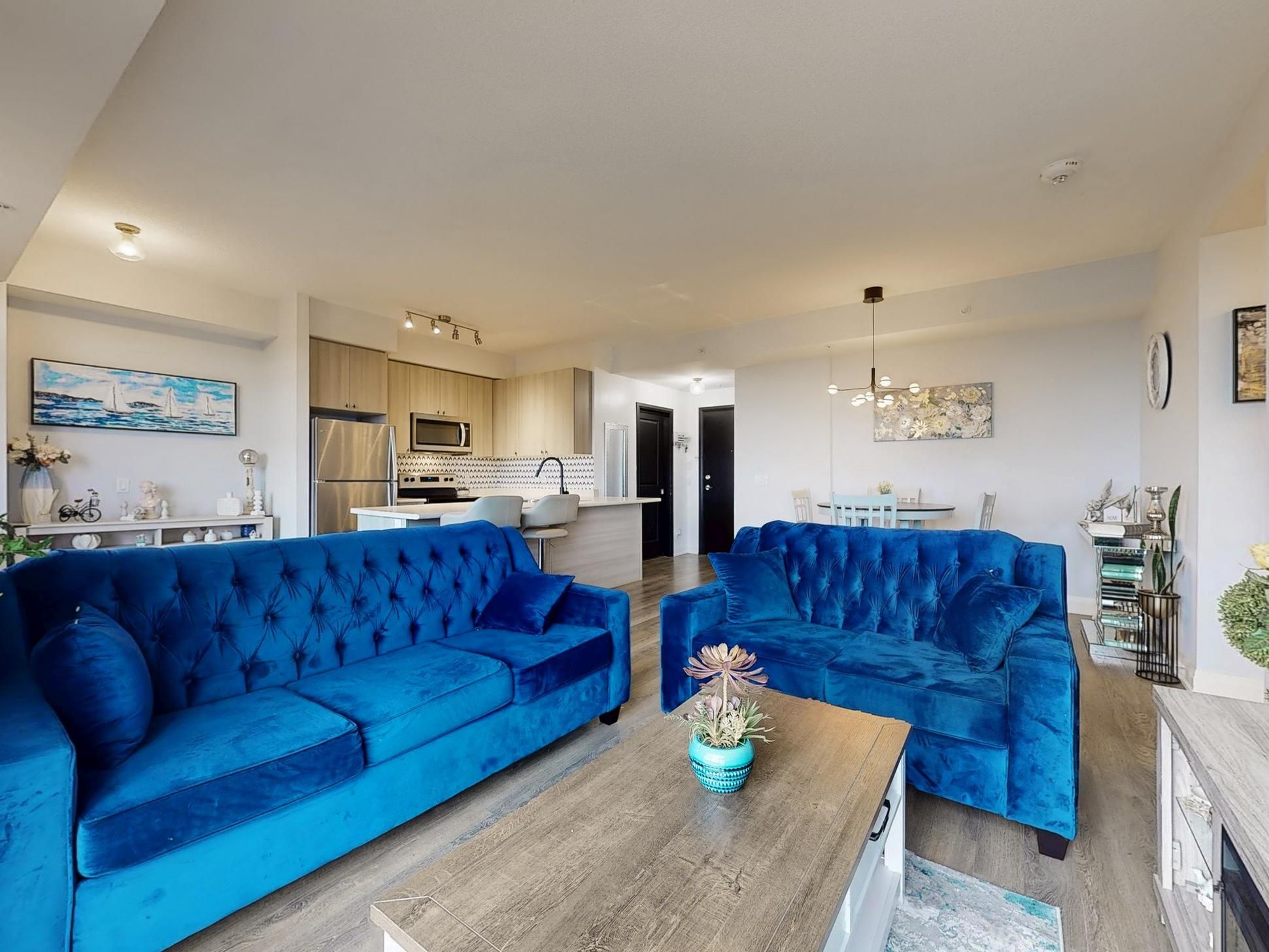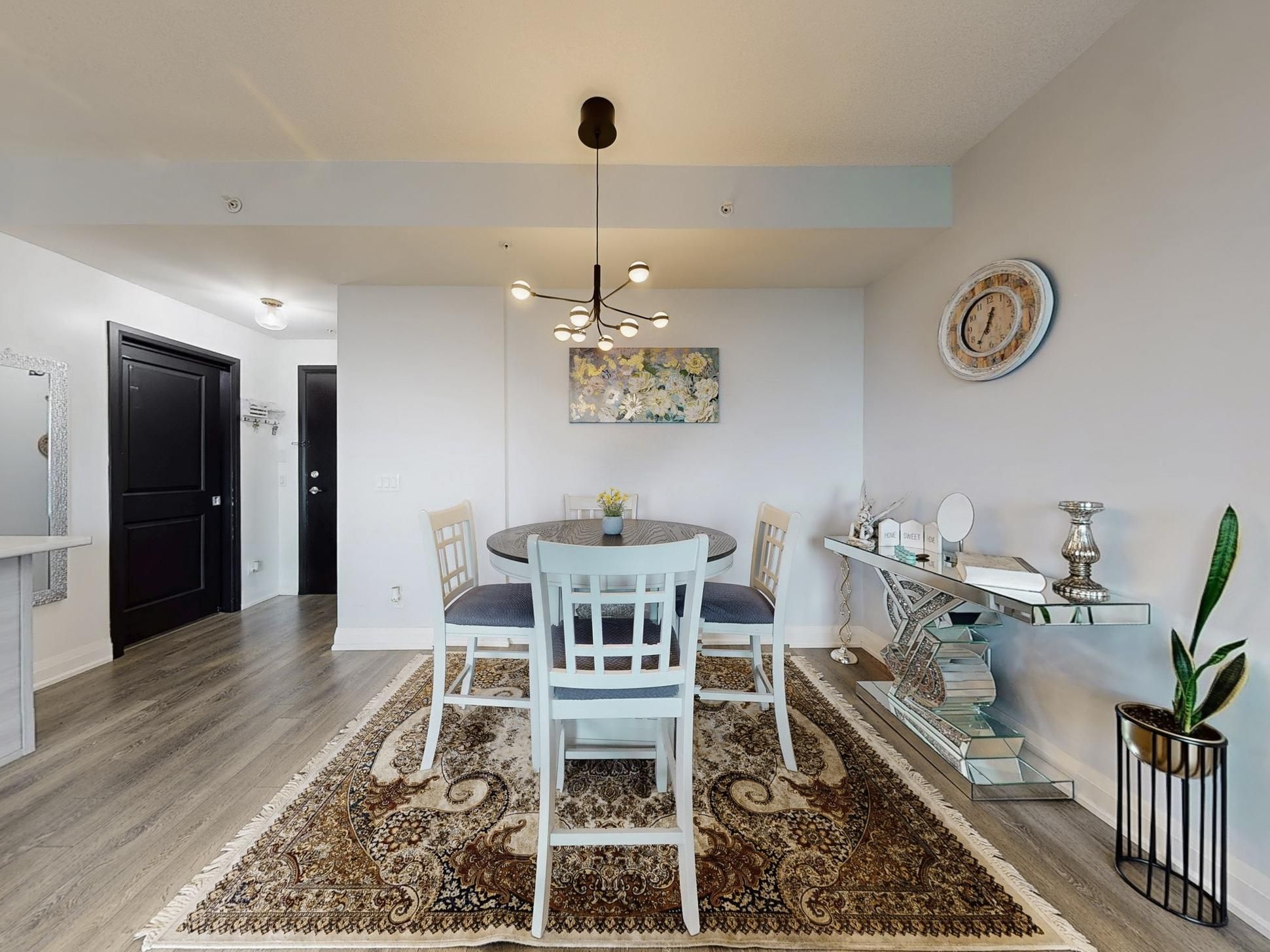 This modern 2 bedroom plus den, 2 bathroom condo offers a perfect blend of style, comfort, and convenience. Overlooking the claireville conservation greenbelt, it features a walk-out balcony with breath taking views of nature, creating a serene escape right at home. The open-concept living and dining area is enhanced by upgraded light fixtures, high ceilings, and floor-to-ceiling windows that bring in an abundance of natural light. The versatile den is ideal for a home office or cozy reading nook, while the contemporary finishes throughout add tothe homes sophistication. Situated close to major amenities and transit, this location ensures everyday convenience. Residents also enjoy access to impressive building amenities, including two party rooms, two fitness centres, a guest suite, a pet grooming station, and ample outdoor visitor parking.