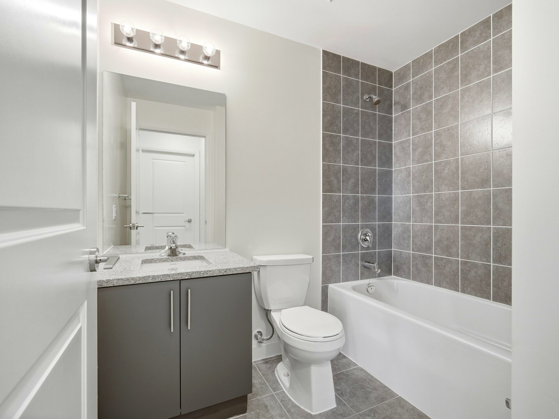 • Upgraded finishes include quartz countertops and upgraded kitchen cabinets.