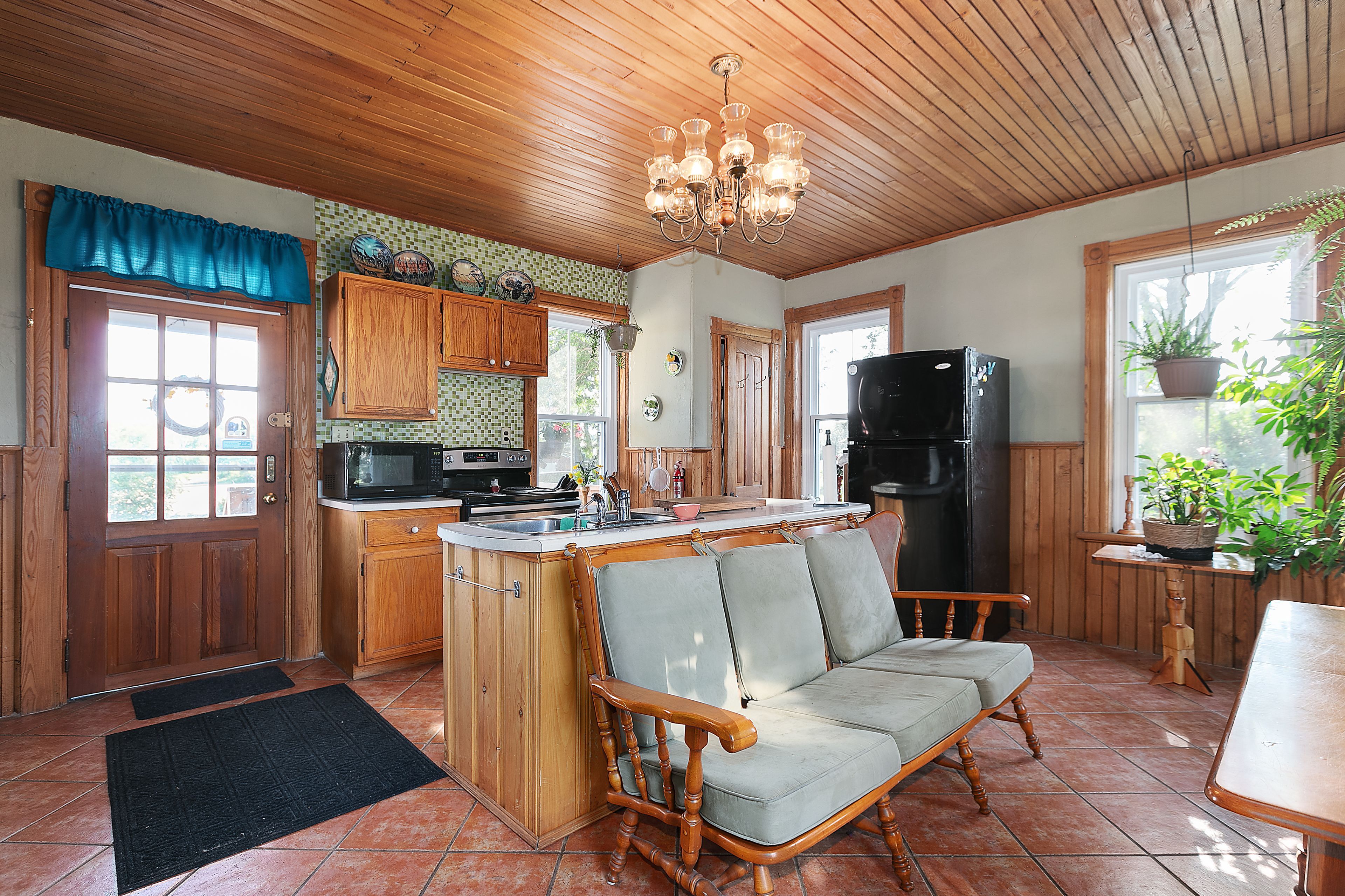 • Four bedrooms and three newly redone baths with pine finishes.