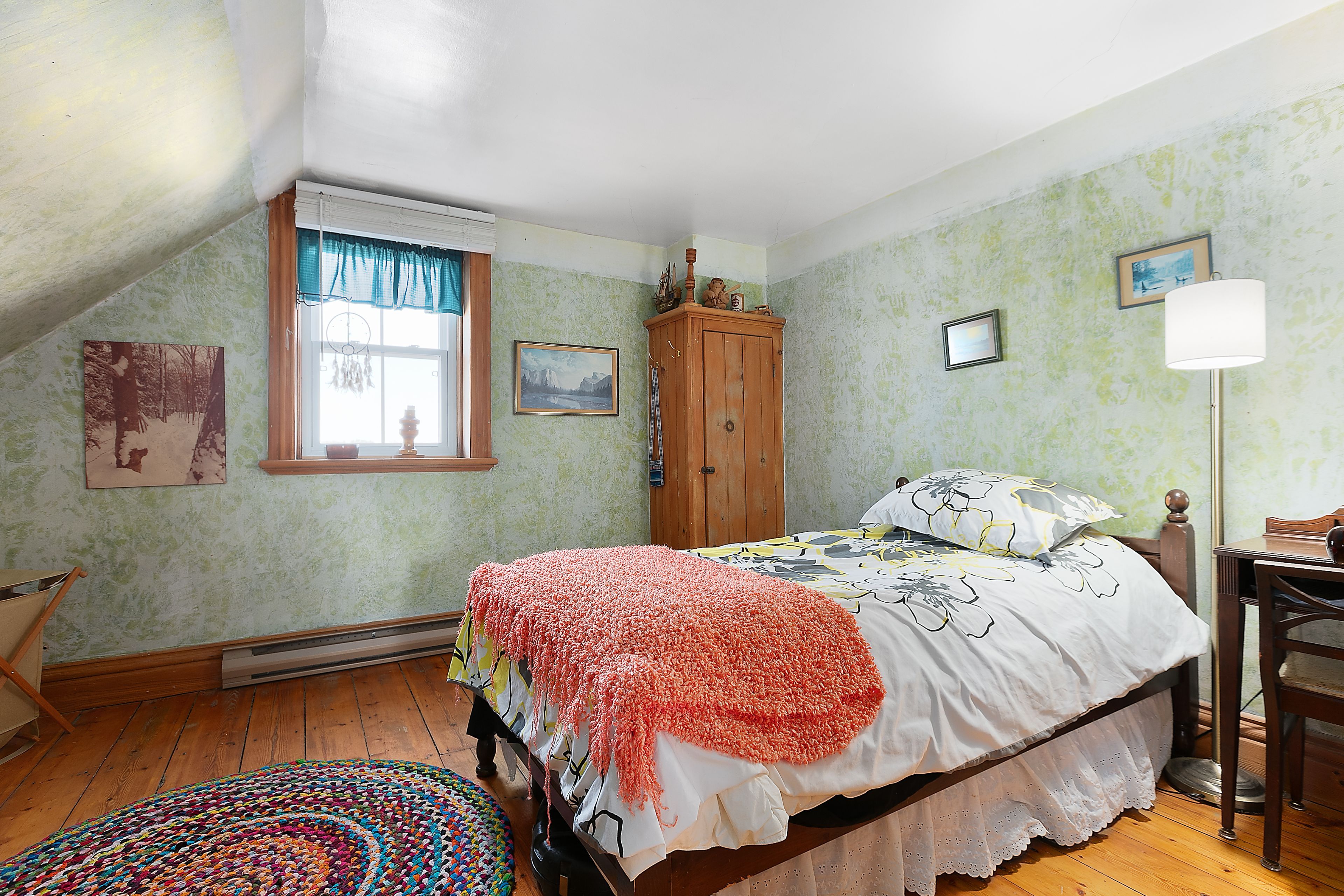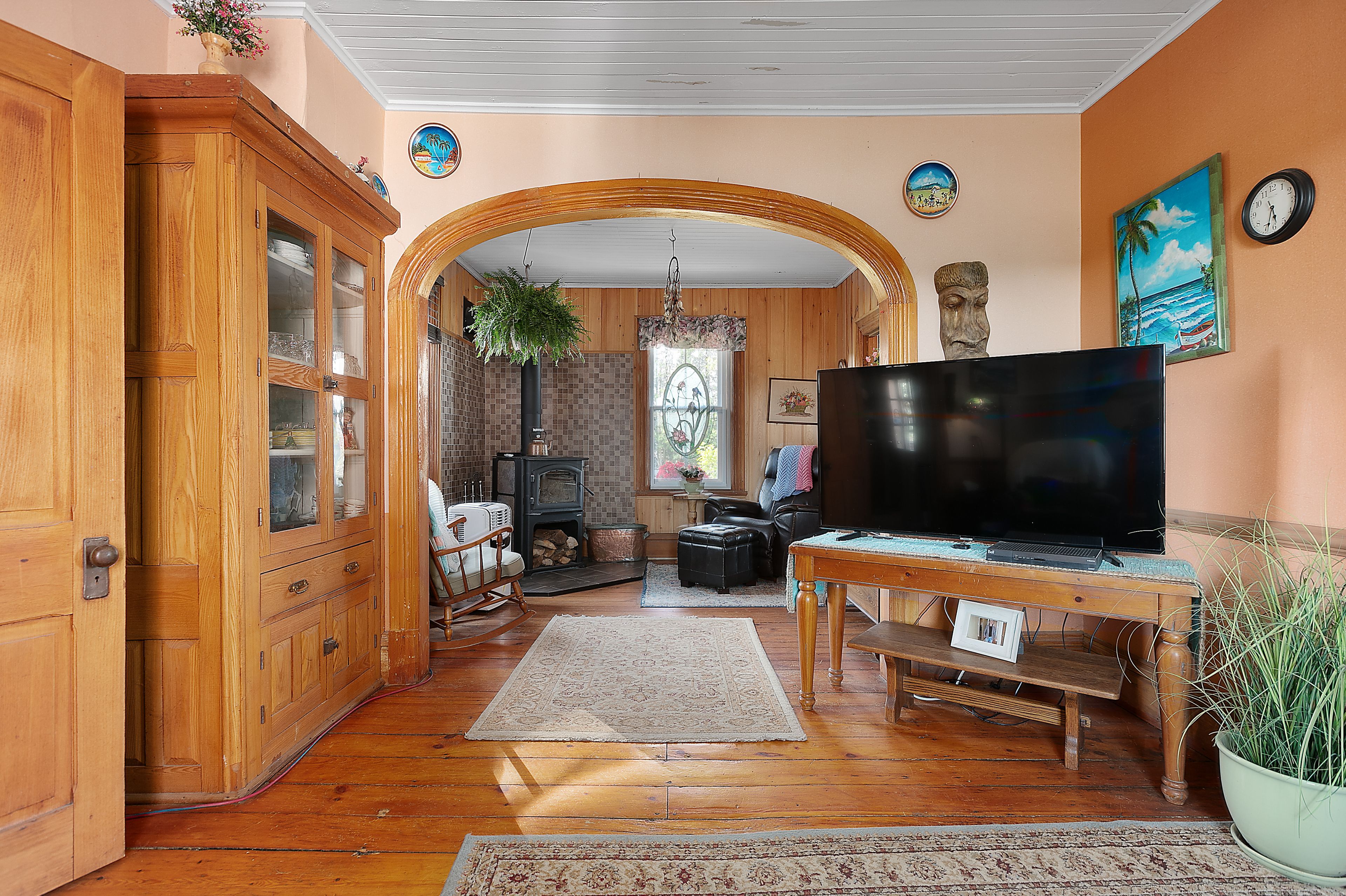 • Charming wood-burning stove and beautiful original pine floors.