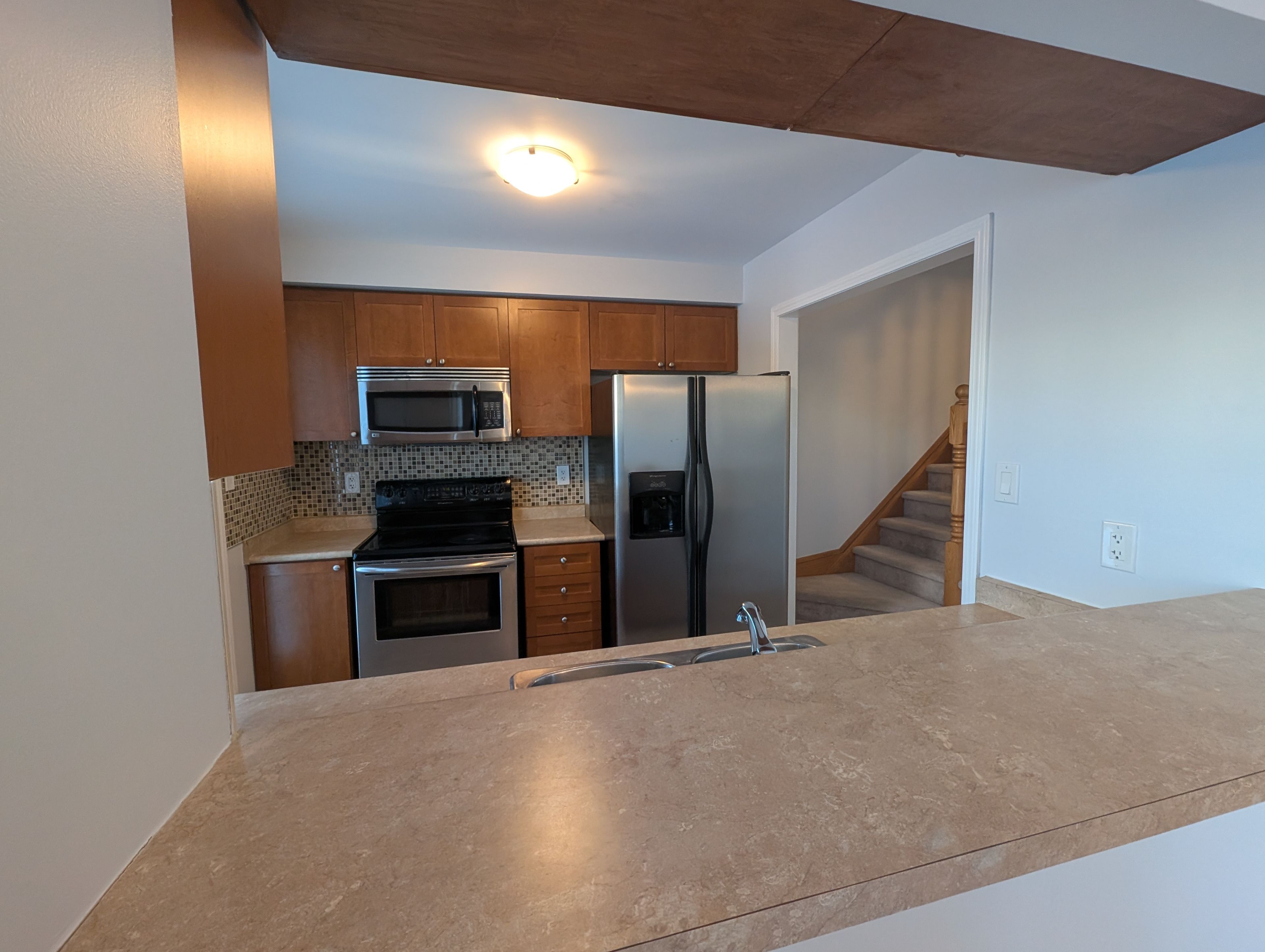 • Well-designed townhome with modern decor and upgraded light fixtures.