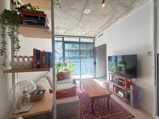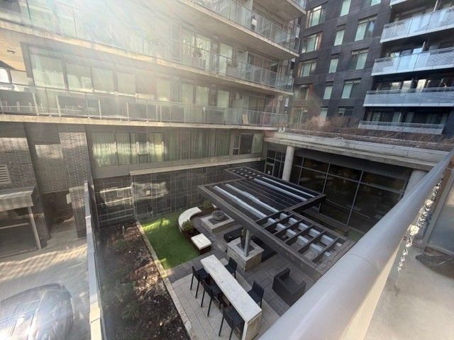 "six50 king west" - a boutique condo-loft by freed developments in the heart of the trendy king west entertainment district. This well-designed 1-bedroom suite offers an efficient layout with excellent use of space, plus a full-length walk-out balcony overlooking the tranquil zen courtyard. Featuring hardwood flooring throughout, 9' exposed concrete ceilings, and floor-to-ceiling, wall-to-wall windows that fill the unit with natural light. The modern kitchen includes stainless steel appliances, granite countertops, an under-mount sink, and glass backsplash, along with a convenient stacked washer & dryer. Steps to the entertainment and fashion districts, with 24-hour streetcar access at your doorstep. An ideal urban retreat for a downtown professional.