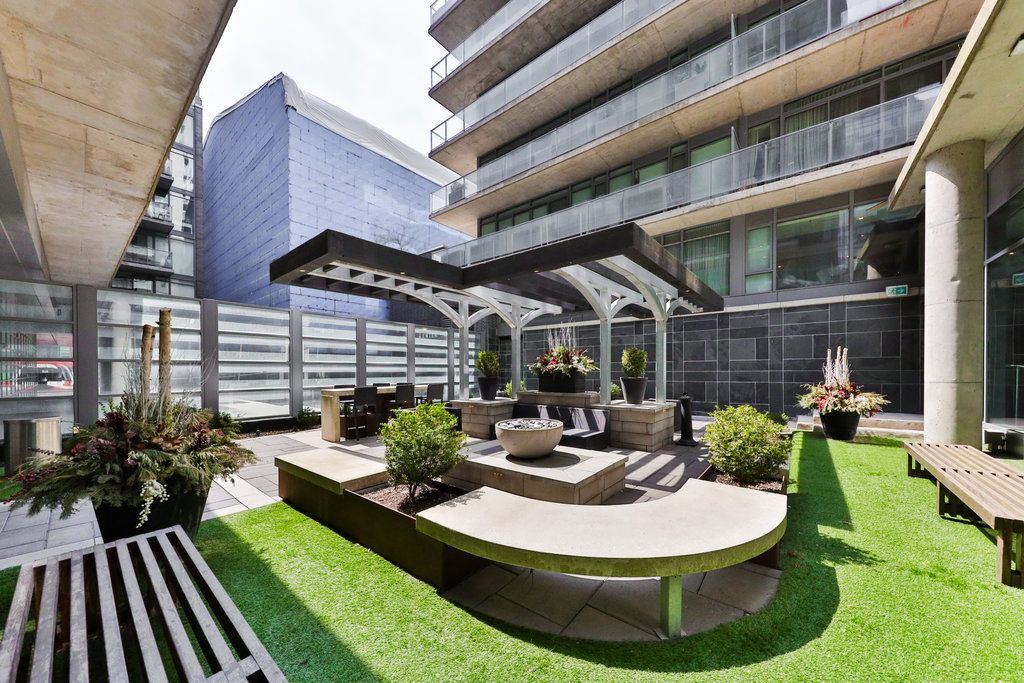 Fully furnished. Welcome to sophisticated city living in this spacious, modern loft-style condo. Thoughtfully designed with an open-concept layout, exposed concrete ceilings, and floor-to-ceiling windows, this residence offers an airy, light-filled atmosphere. The sleek kitchen complete with stainless steel appliances is perfect for all your culinary adventures. The private bedroom provides a tranquil retreat. A stylish 4-piece bathroom and an expansive balcony, ideal for outdoor dining or unwinding with a good book, complete the space. Located in one of toronto's most sought-after neighborhoods, you'll enjoy immediate access to top-tier dining, shopping, entertainment, and cultural destinations. With the king streetcar, renowned restaurants, cafes, art galleries, and theatres all just steps away, convenience and luxury go hand in hand. The boutique building offers a fully-equipped gym, and a serene inner courtyard a rare green oasis in the heart of the city.