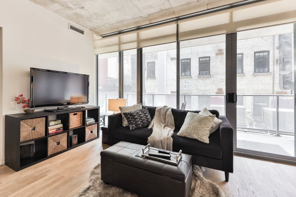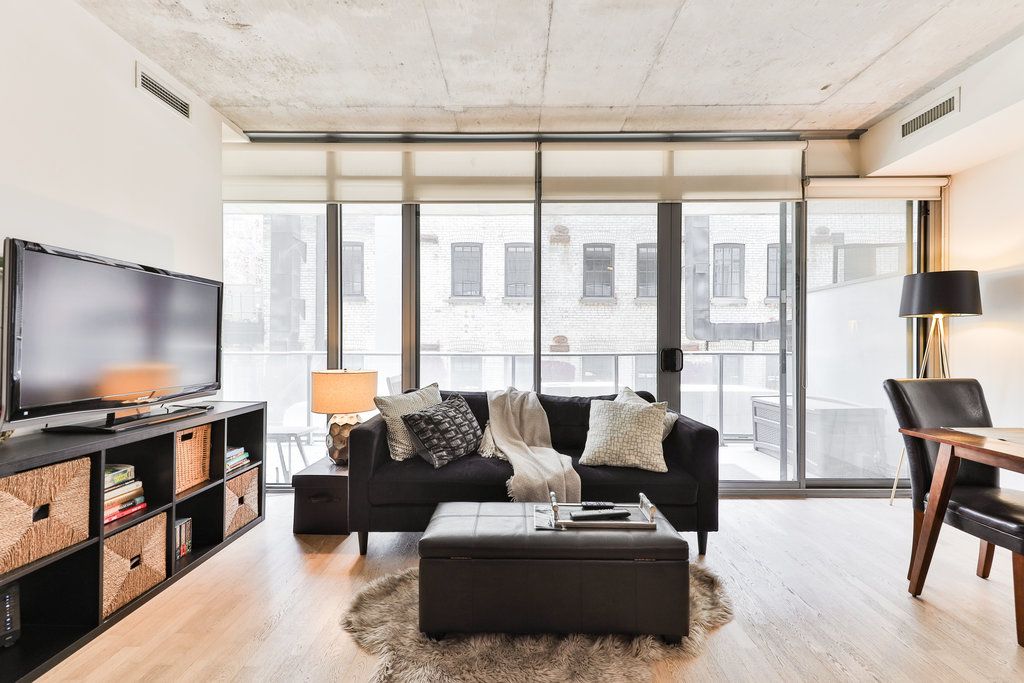 • Fully furnished modern loft-style condo with an open-concept design.