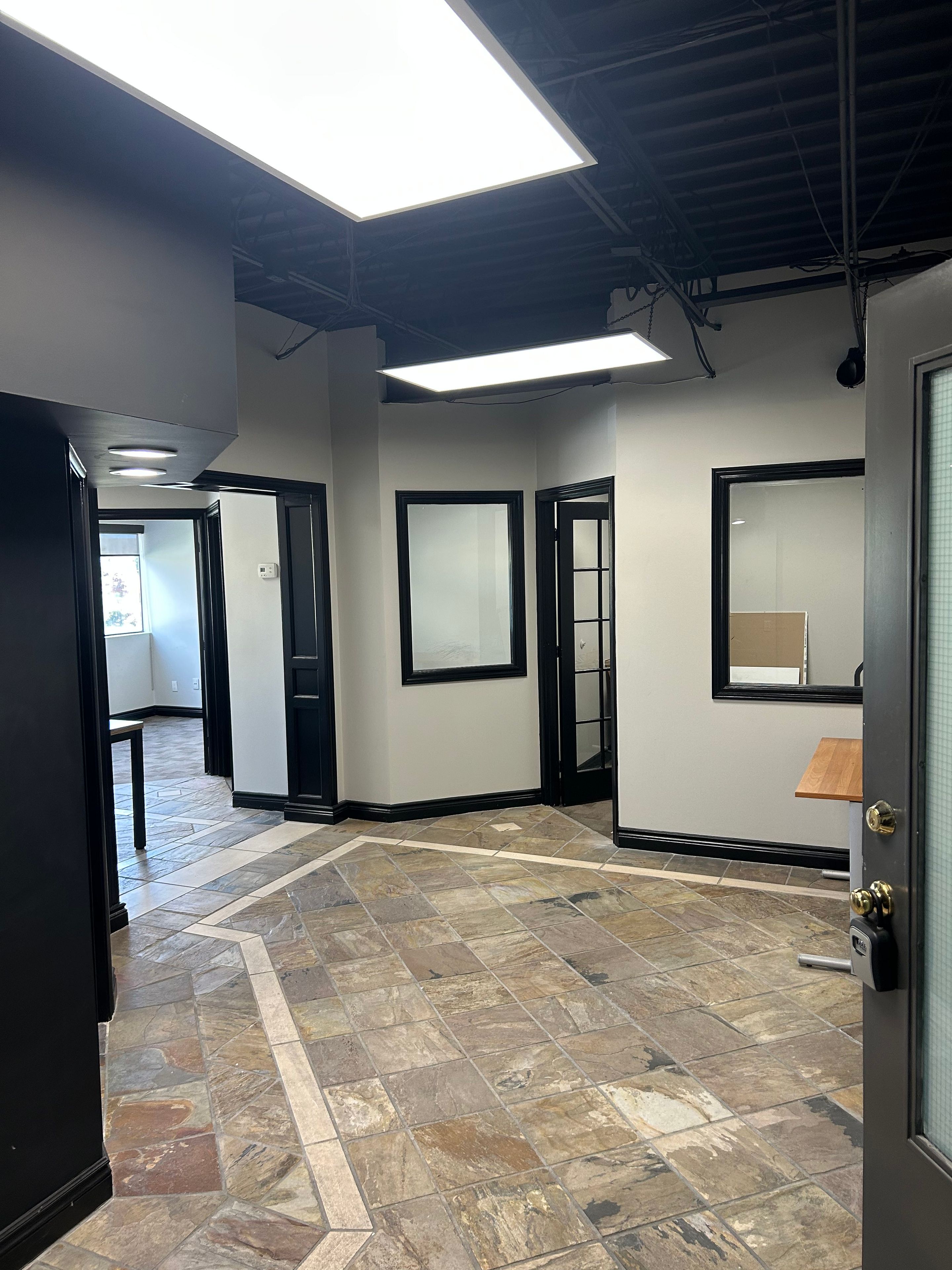 • Well-designed office suite with three private offices and a reception area.