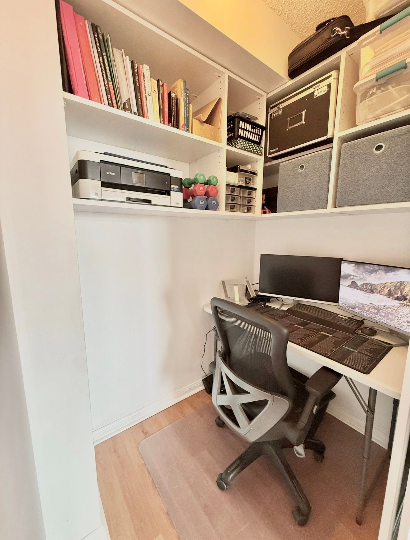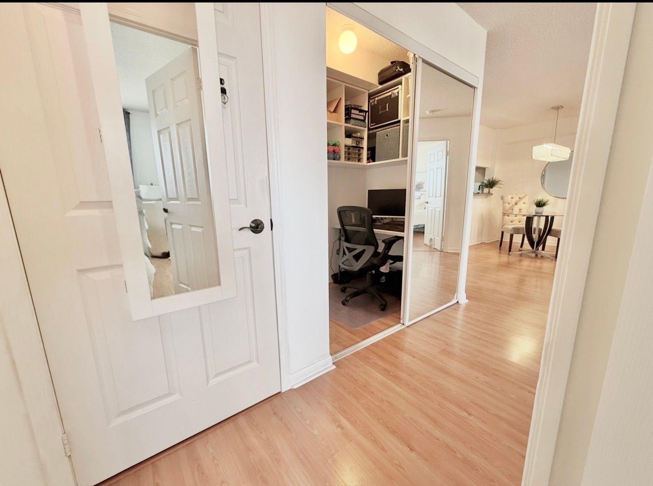 Welcome to 650 lawrence ave w, suite 622, a well-maintained, spacious 2+1-bedroom split-layout condo offering comfortable living space with unobstructed views and private balcony featuring custom tiles. Freshly painted and carpet-free, this bright unit features new lighting throughout, a new thermostat, and an updated hvac system for year-round comfort. The functional layout includes a generous primary bedroom with a large fully customized walk-in closet, a second bedroom with its own custom closet system, and a rare in-unit enclosed custom built workspace/den, perfect for working from home or added organization creating an optimized living space. The galley kitchen is equipped with a brand-new over-the-stove microwave and plenty of cupboard space. Enjoy the convenience of owned parking and locker, along with all utilities included in the maintenance fees; heat, hydro, water, building maintenance and a/c. The quiet, well-managed community offers optional ev chargers and building improvements, including newly and beautifully renovated lobby and hallway. Unbeatable location: 3-minute walk to ttc lawrence west station, 1-minute drive to allen road, quick access to highway 401, and just minutes to world class shopping at the yorkdale shopping centre and lawrence allen centre, with plazas, shopping, and groceries steps away. Only a 15-minute subway ride to downtown and only two stops away from the newly opened line 5 eglinton crosstown. Only 21 minute transit ride to york university. This is an excellent opportunity for first-time buyers, downsizers, or investors seeking space, value, and exceptional connectivity in a prime toronto location -schedule your private showing today.