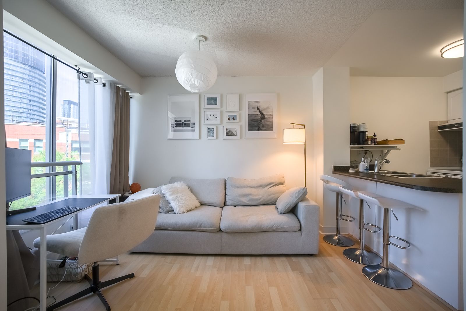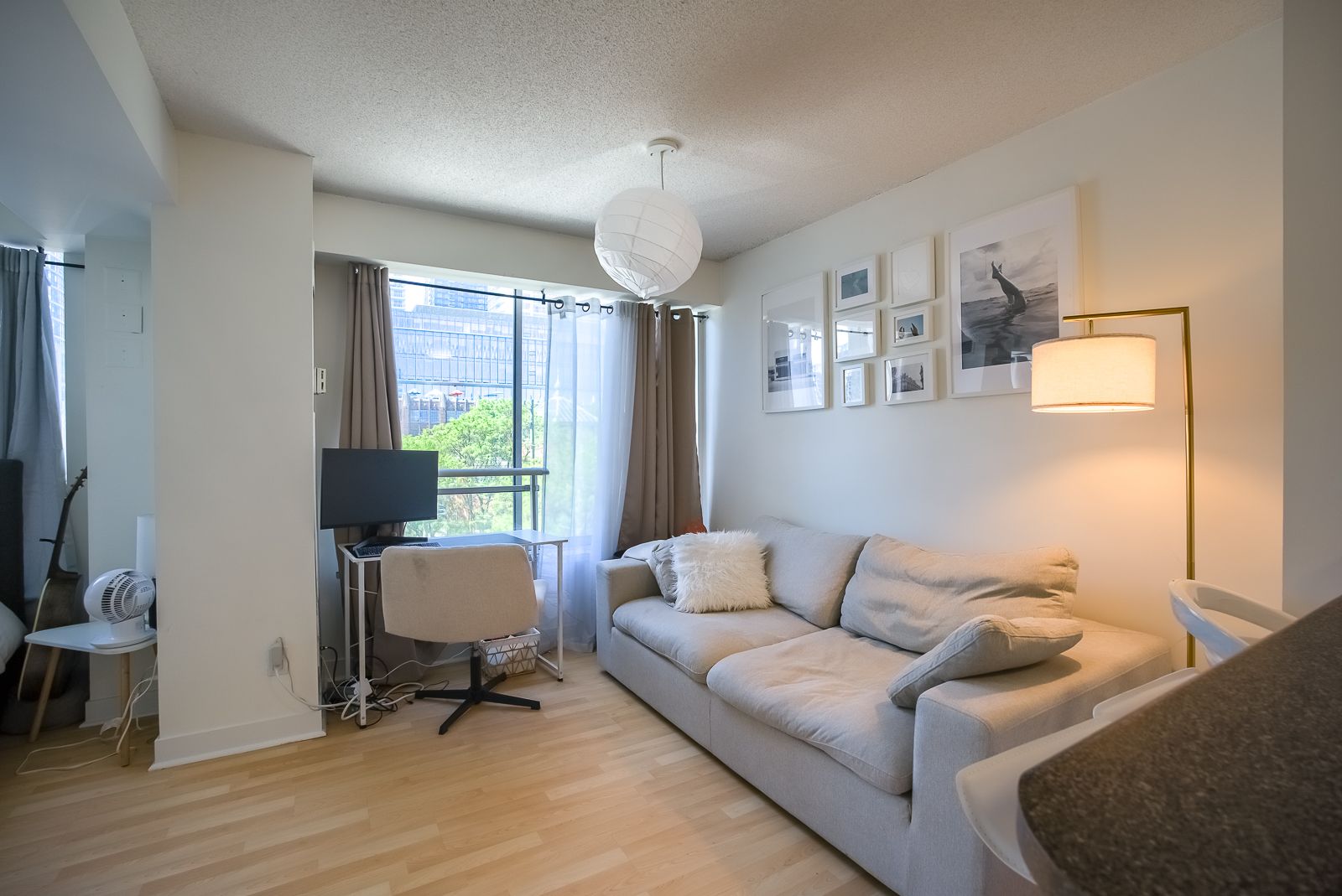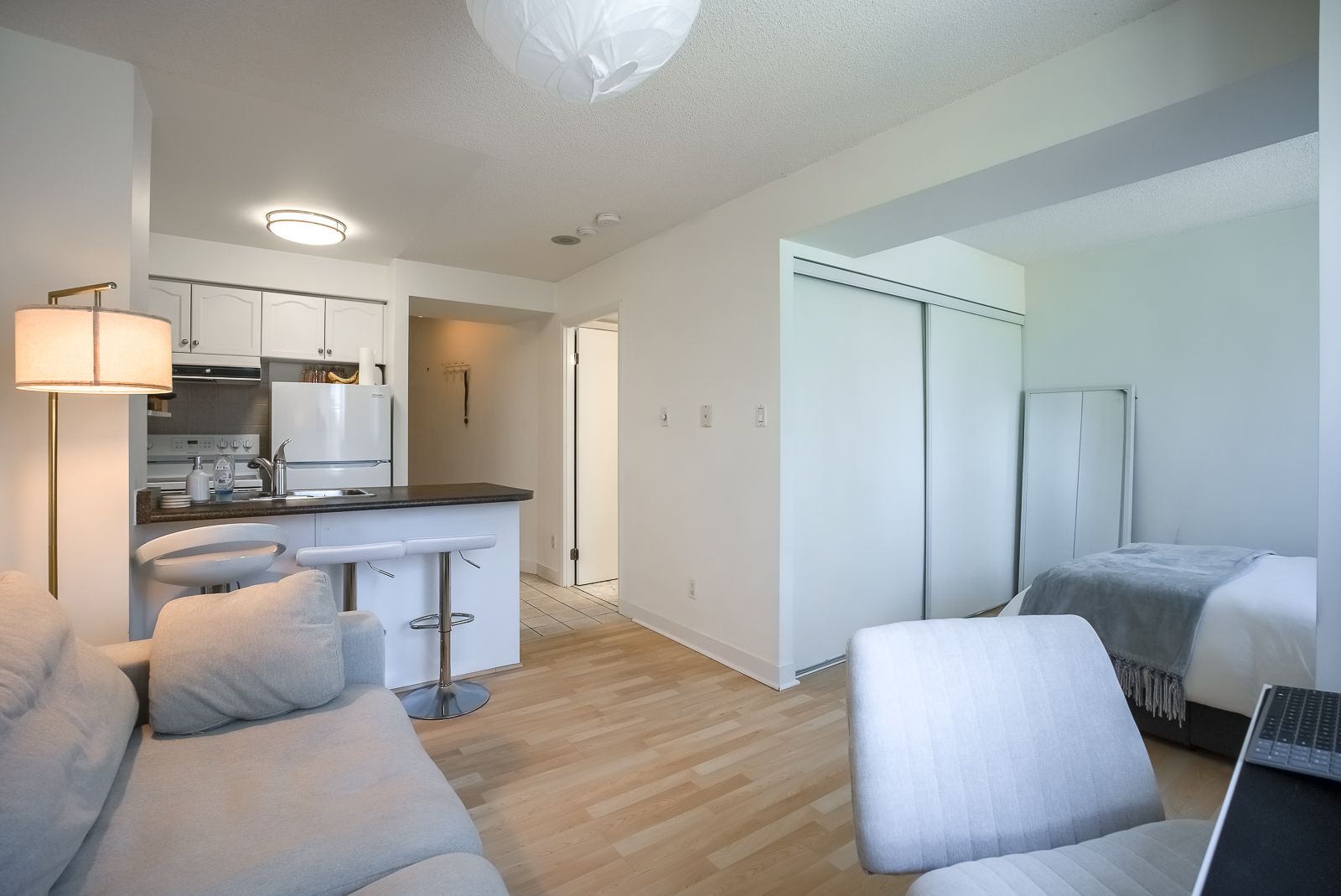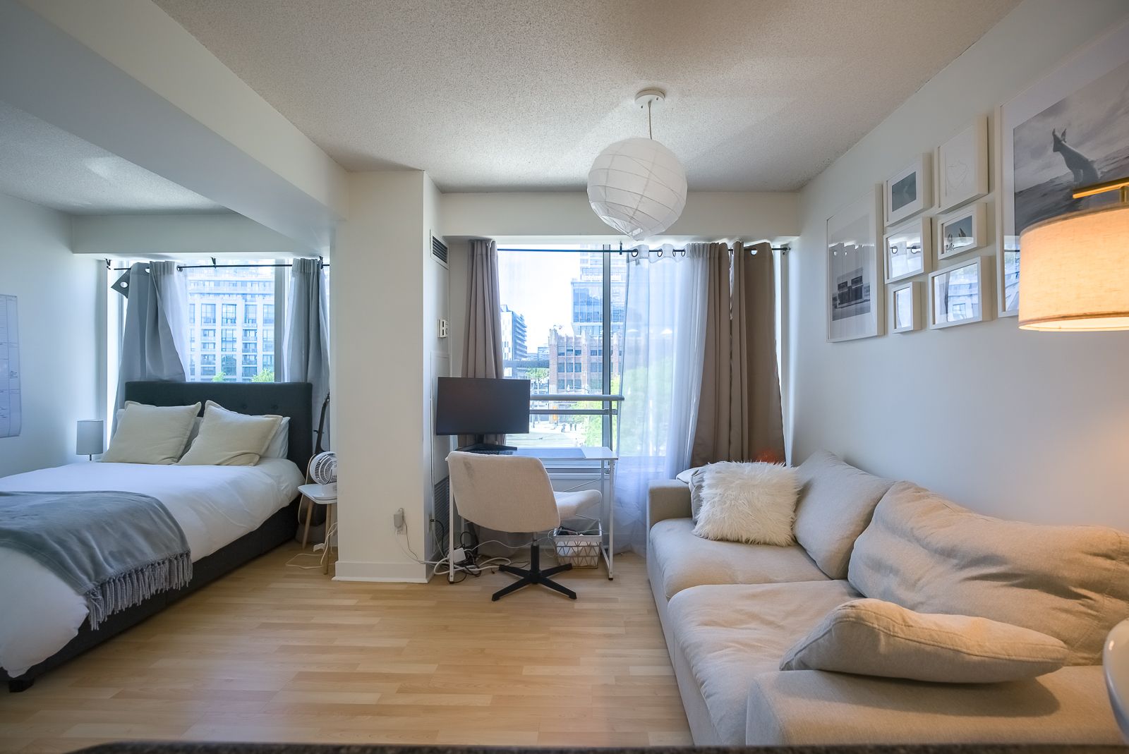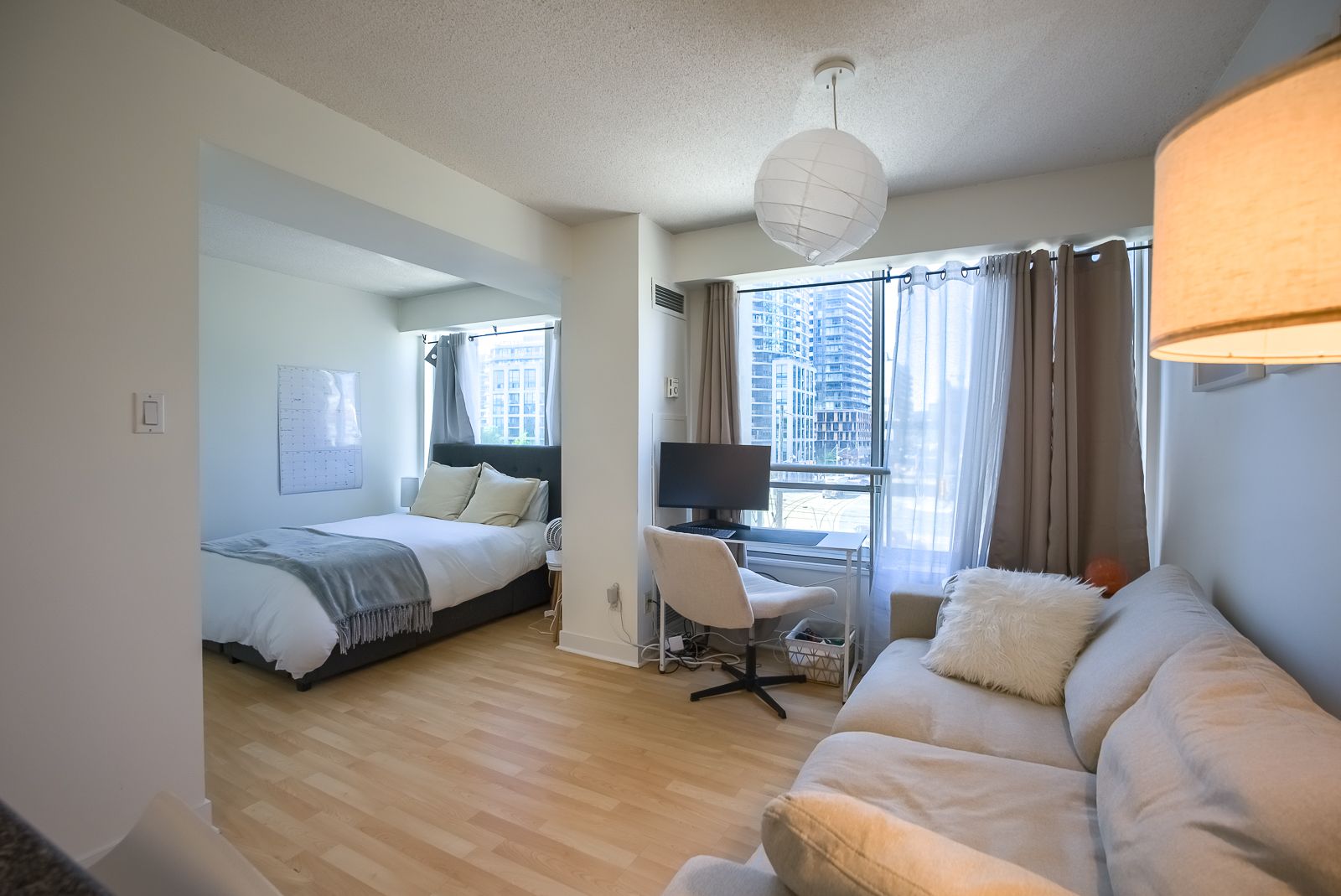 City convenience with chill waterfront vibes. Enjoy the best of both worlds! Vibrant downtown living paired with the serenity of the lake ontario parks and pathes. This bright, thoughtfully designed suite offers an easy, low-maintenance lifestyle with all utilities included for added value and convenience. The smart layout features laminate flooring throughout, a spacious bathroom with an extra closet for storage and en-suite laundry, a large front hall closet, and an oversized bedroom closet, offering more storage than many larger units. Bring your full wardrobe, no seasonal switch-outs required. Head up to the stunning rooftop bbq terrace to take in panoramic lake and skyline views, perfect for relaxing, entertaining, or catching the summer air show and fireworks. Located in the sought-after atrium on queens quay, residents enjoy 24-hour concierge service, a fully equipped fitness centre, party room, and visitor parking. Step outside to waterfront parks, the martin goodman trail, and harbourfront's cafés, patios, and cultural attractions. Loblaws is around the corner, with shoppers drug mart and an lcbo just a short walk away, making daily errands effortless. Ttc is at your doorstep and billy bishop airport is steps away for quick getaways. Ideal for young professionals looking to enjoy the energy of downtown while staying connected to nature and the waterfront.