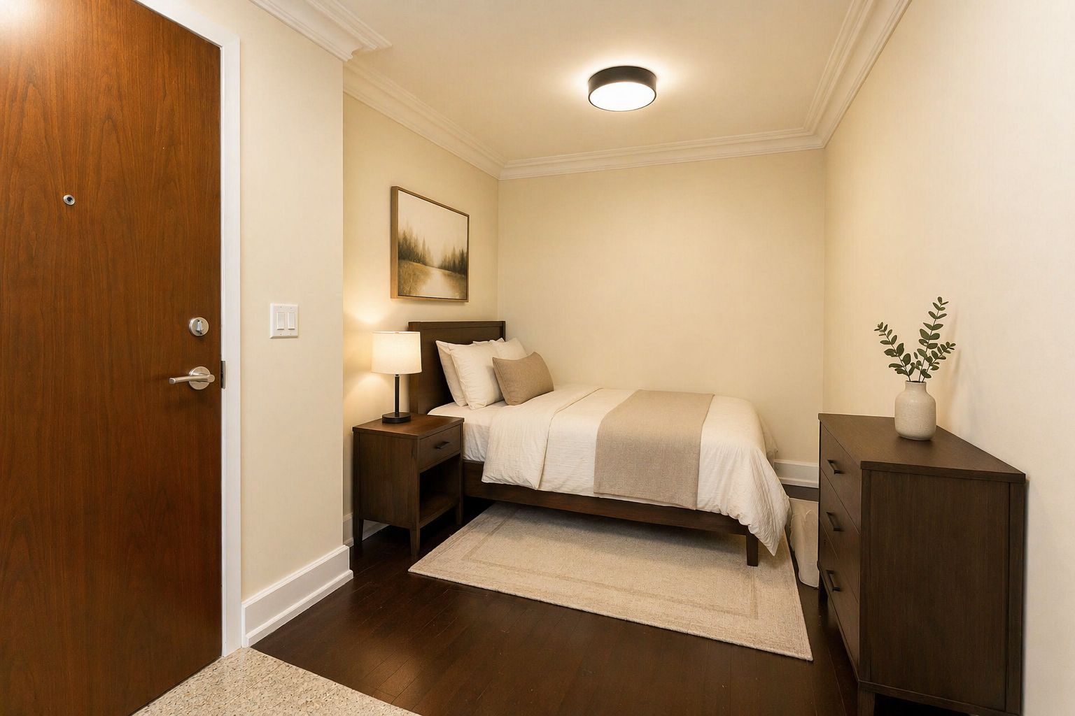 • Access to amenities like a gym, rooftop deck, and sauna.