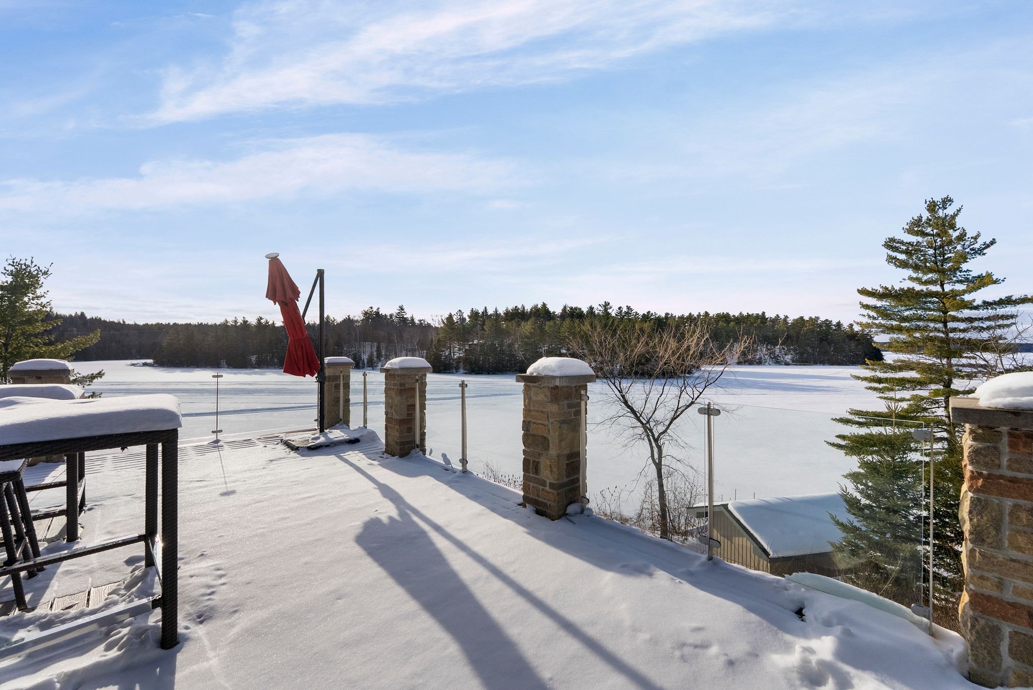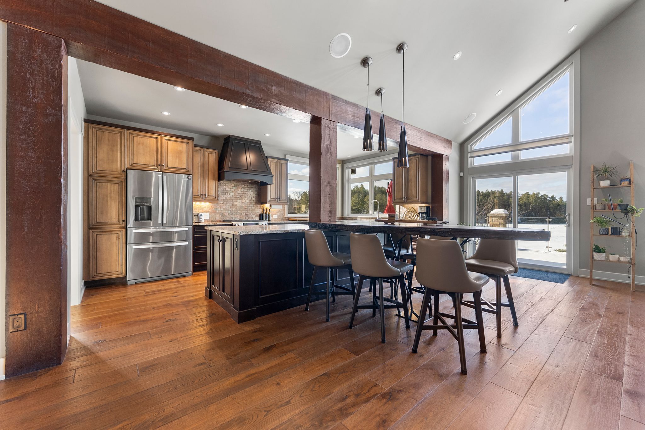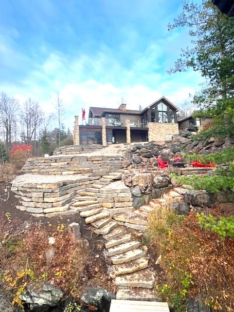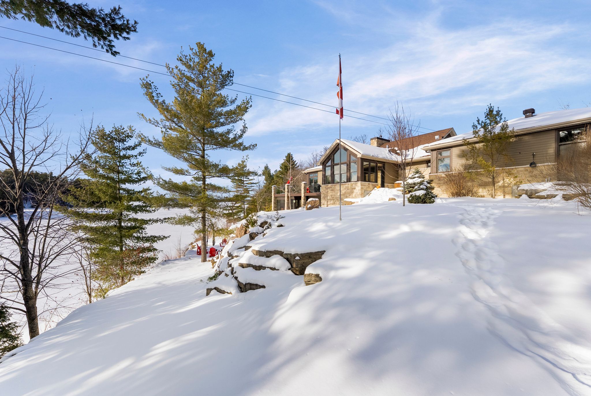 Welcome to 6505 k & p trail, an extraordinary 5 bedroom, 3 bathroom waterfront dream home on calabogie lake, boasting an incredible 1,400+ feet of pristine shoreline- a truly rare offering. Designed with both luxury and functionality in mind, this property delivers high-end finishes, thoughtful craftmanship, and unmatched lakefront living. The main level features a breathtaking wood burning stove, creating a warm and inviting focal point. Comfort is ensured year round with in-floor heating on the lower level, and a forced air boiler system. Triple pane windows with uv film, a smart thermostat and premium mechanicals provide exceptional energy efficiency and peace of mind. A chefs dream kitchen with propane gas stove, custom high powered hood fan, bar fridge, endless counter and storage space, views of the lake and jaw dropping island with live edge top and custom iron base, a must see! The primary suite is a private retreat, complete with two walk in closets, a private deck overlooking the lake, and a luxurious spa-inspired ensuite. Dinning room with three walls of floor to ceiling windows and propane fireplace. Good sized bedroom, laundry and mudroom with access to oversized two car garage complete the main floor. Floating stairs lead to the finished lower level with three additional bedrooms, two with walk in closets, full bath, generous recreation room, large storage area, cold storage and a screened room with hot tub-perfect for year-round relaxation. Outside the property continues to impress with two fully insulated and heated 30x40 garages/workshops, ideal for hobbies, storage or toys. Stone steps lead down to the water where a u-shaped dock awaits. Enjoy evenings by the firepit or soak in the views from the wrap around deck, this setting is truly unforgettable. Yard and gardens easily maintained with irrigation system. A rare combination of luxury, space, and waterfront privacy- this is calabogie lake living at its finest!