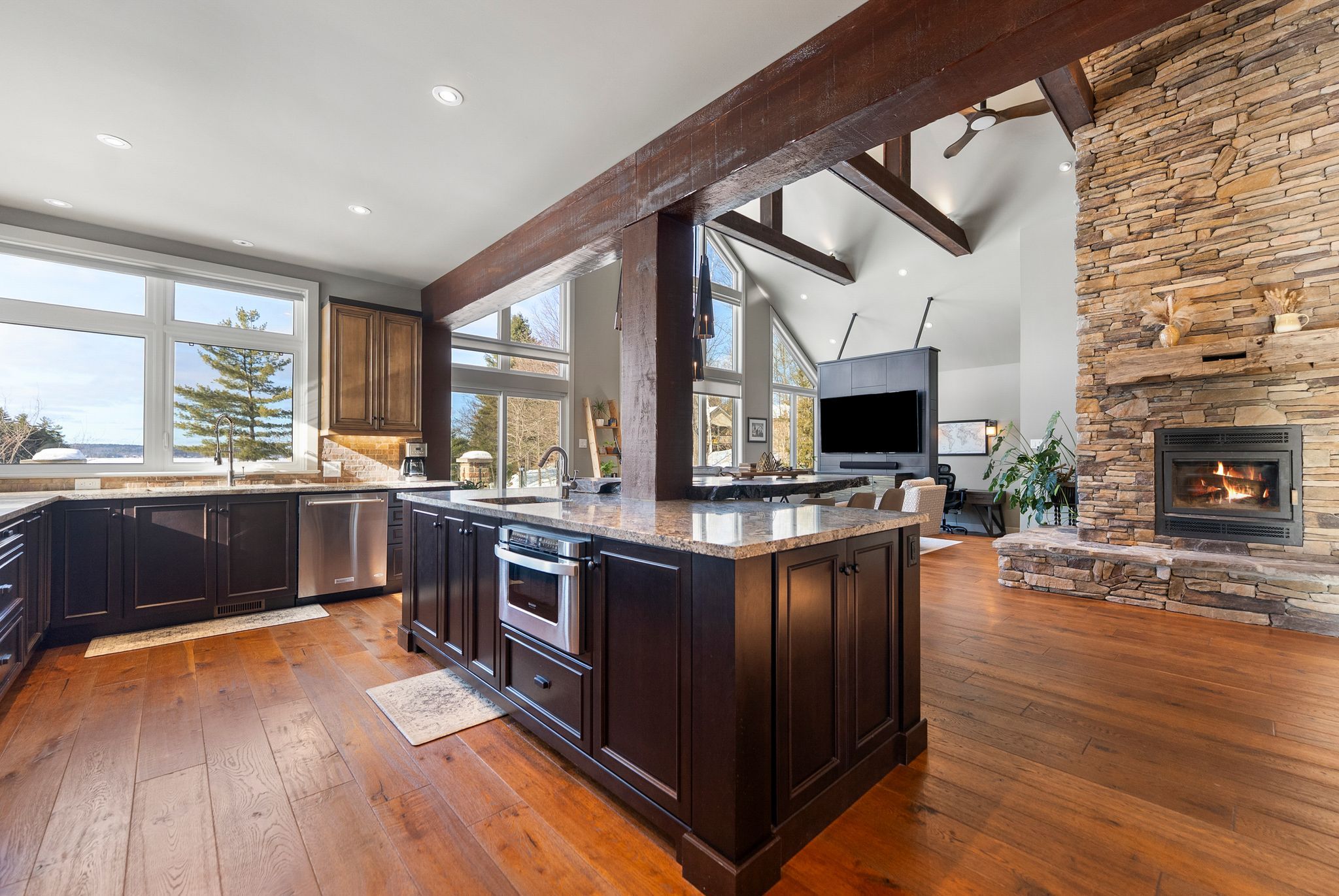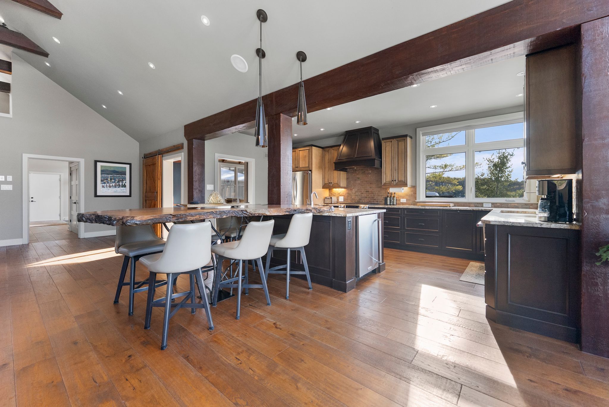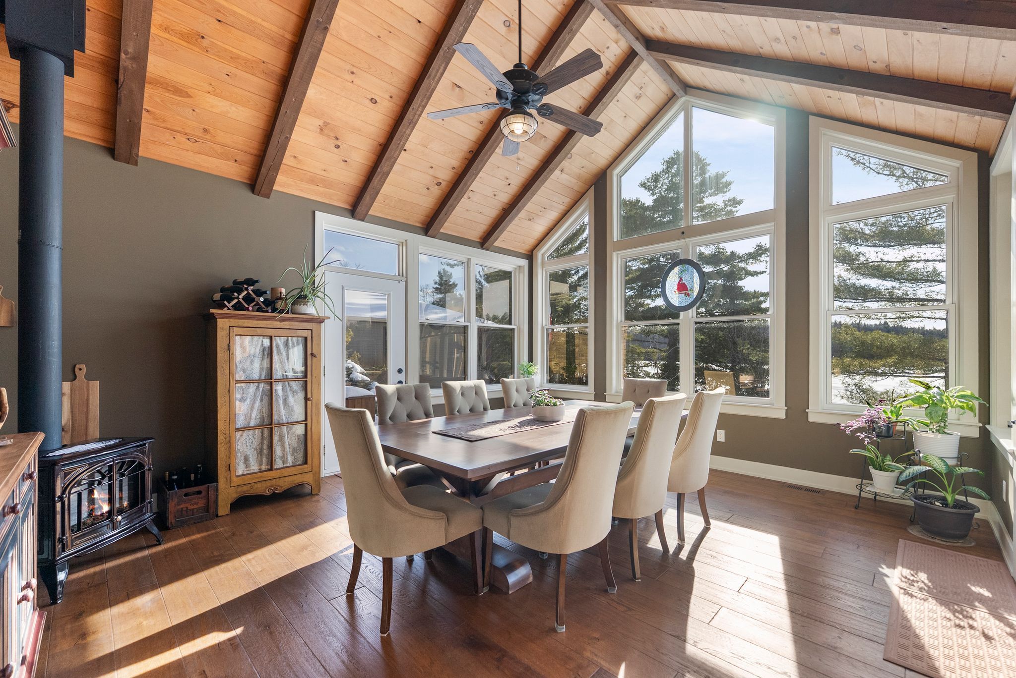 Welcome to 6505 k & p trail, an extraordinary 5 bedroom, 3 bathroom waterfront dream home on calabogie lake, boasting an incredible 1,400+ feet of pristine shoreline- a truly rare offering. Designed with both luxury and functionality in mind, this property delivers high-end finishes, thoughtful craftmanship, and unmatched lakefront living. The main level features a breathtaking wood burning stove, creating a warm and inviting focal point. Comfort is ensured year round with in-floor heating on the lower level, and a forced air boiler system. Triple pane windows with uv film, a smart thermostat and premium mechanicals provide exceptional energy efficiency and peace of mind. A chefs dream kitchen with propane gas stove, custom high powered hood fan, bar fridge, endless counter and storage space, views of the lake and jaw dropping island with live edge top and custom iron base, a must see! The primary suite is a private retreat, complete with two walk in closets, a private deck overlooking the lake, and a luxurious spa-inspired ensuite. Dinning room with three walls of floor to ceiling windows and propane fireplace. Good sized bedroom, laundry and mudroom with access to oversized two car garage complete the main floor. Floating stairs lead to the finished lower level with three additional bedrooms, two with walk in closets, full bath, generous recreation room, large storage area, cold storage and a screened room with hot tub-perfect for year-round relaxation. Outside the property continues to impress with two fully insulated and heated 30x40 garages/workshops, ideal for hobbies, storage or toys. Stone steps lead down to the water where a u-shaped dock awaits. Enjoy evenings by the firepit or soak in the views from the wrap around deck, this setting is truly unforgettable. Yard and gardens easily maintained with irrigation system. A rare combination of luxury, space, and waterfront privacy- this is calabogie lake living at its finest!