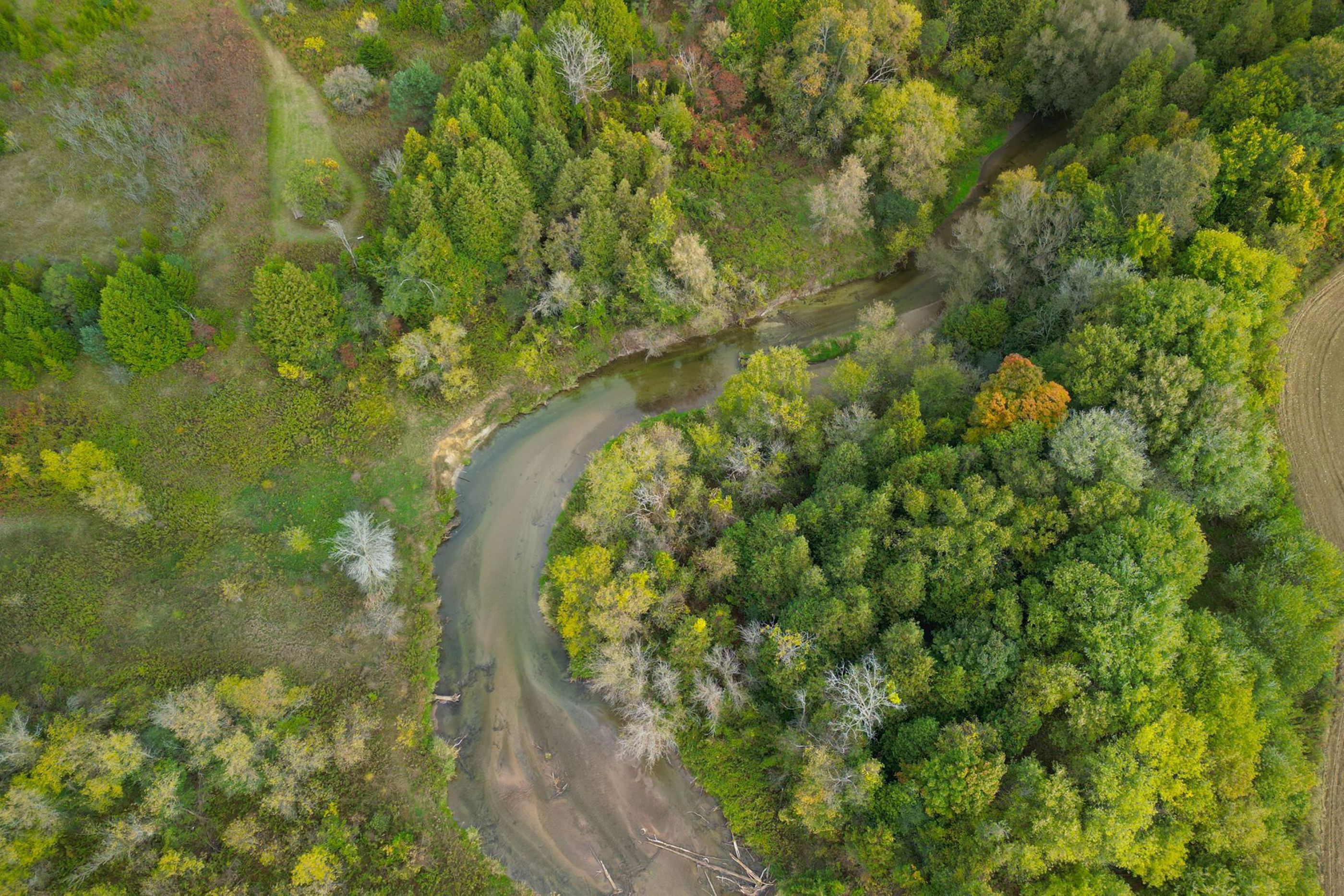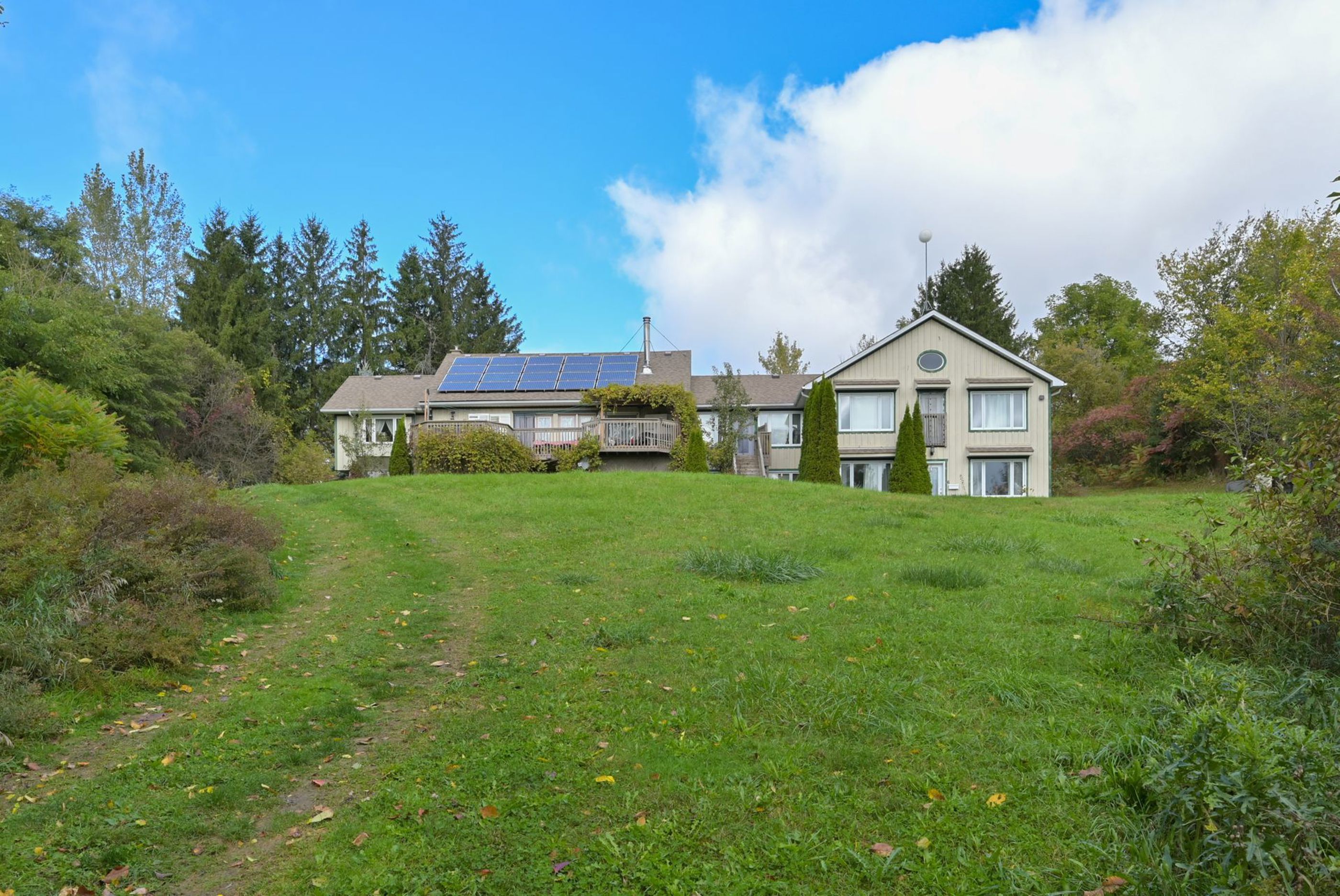 • Private 10-acre estate with river frontage and a beach area.