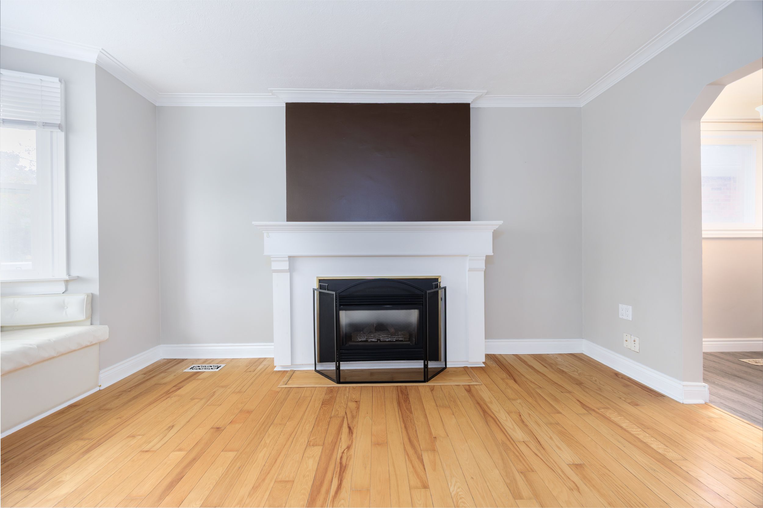 • Spacious great room with oversized fireplace and custom built-in bench seat.